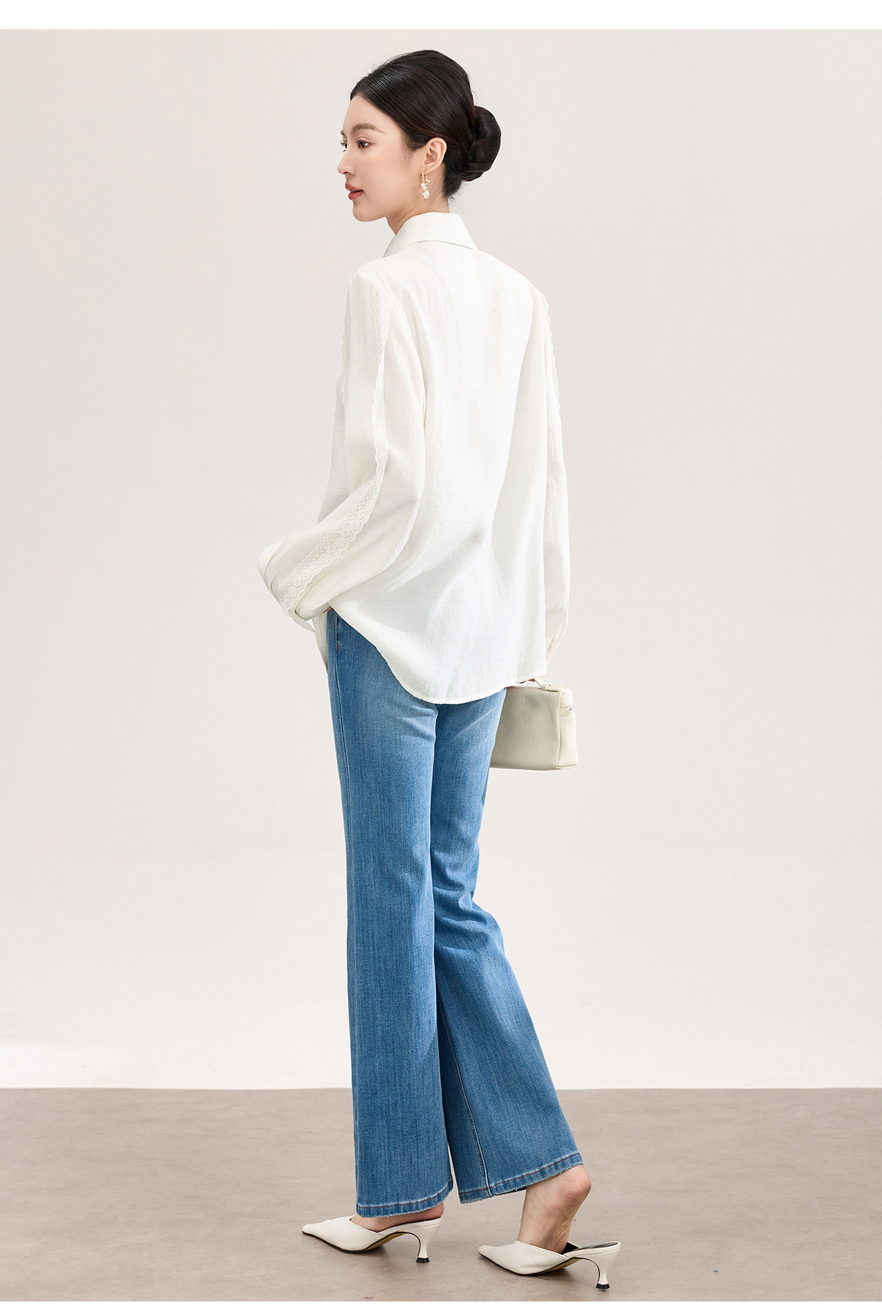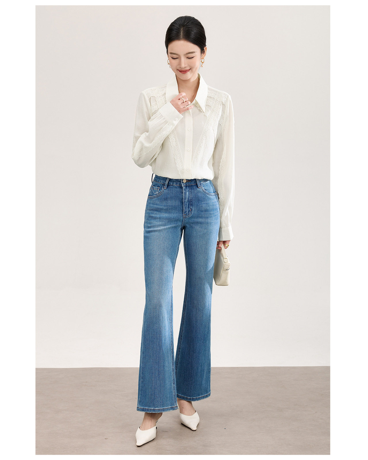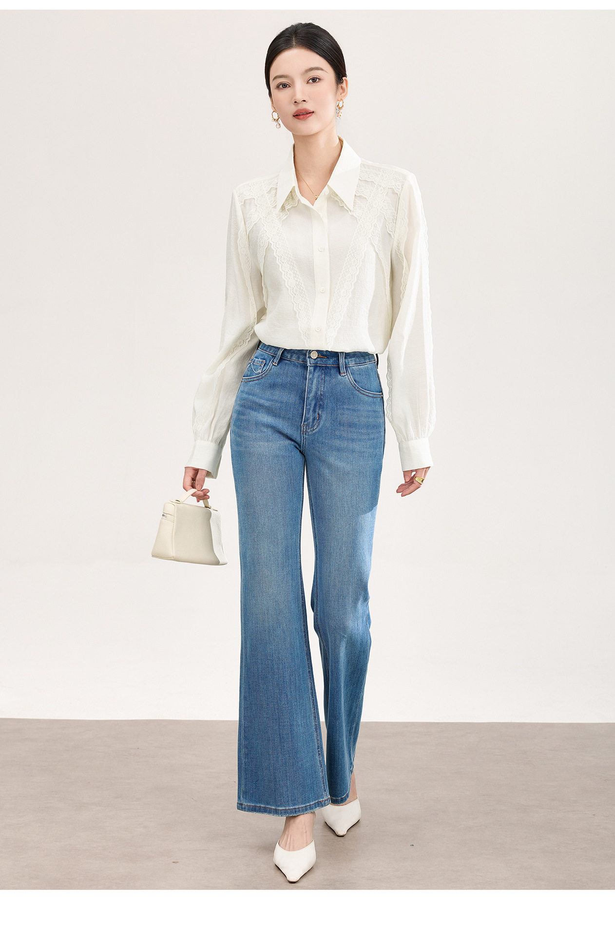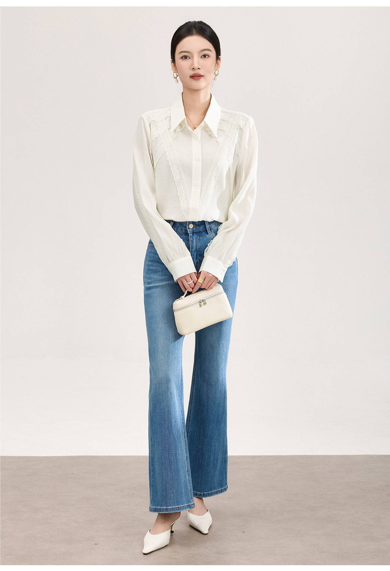 「高货wl」全新升级【铂金会员293/天猫389/差价96】(01638)洛诗琳法式气质翻领衬衫2026春季新款蕾丝边拼接长袖上衣