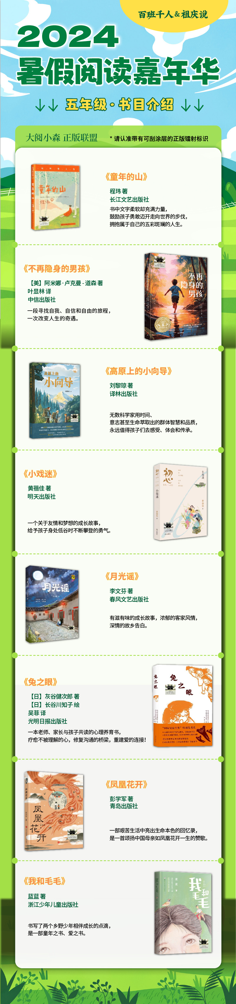 童年的山 不在隐身的男孩 高原上的小向导 初心 月光谣 兔之眼 凤凰花开 我和毛毛 2024年百班千人暑期书目5年级套装8本|祖庆说名师推荐正版现货速发小学生课外阅读