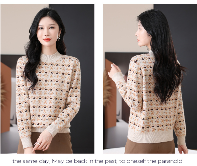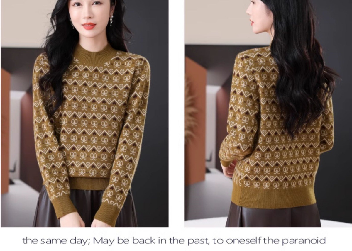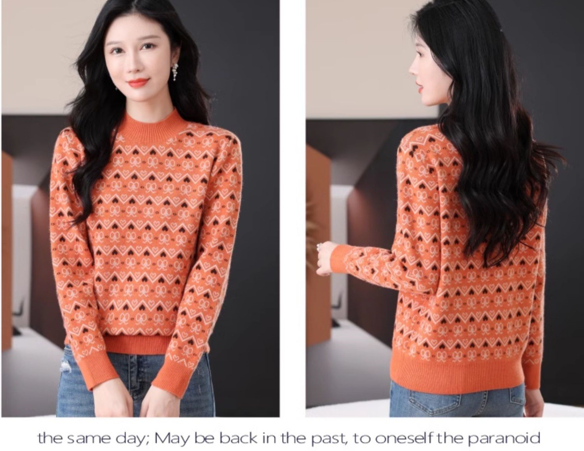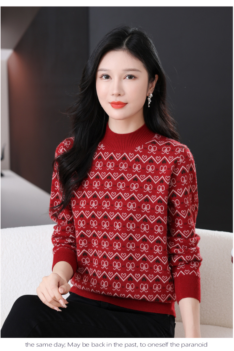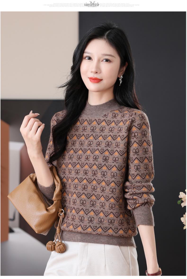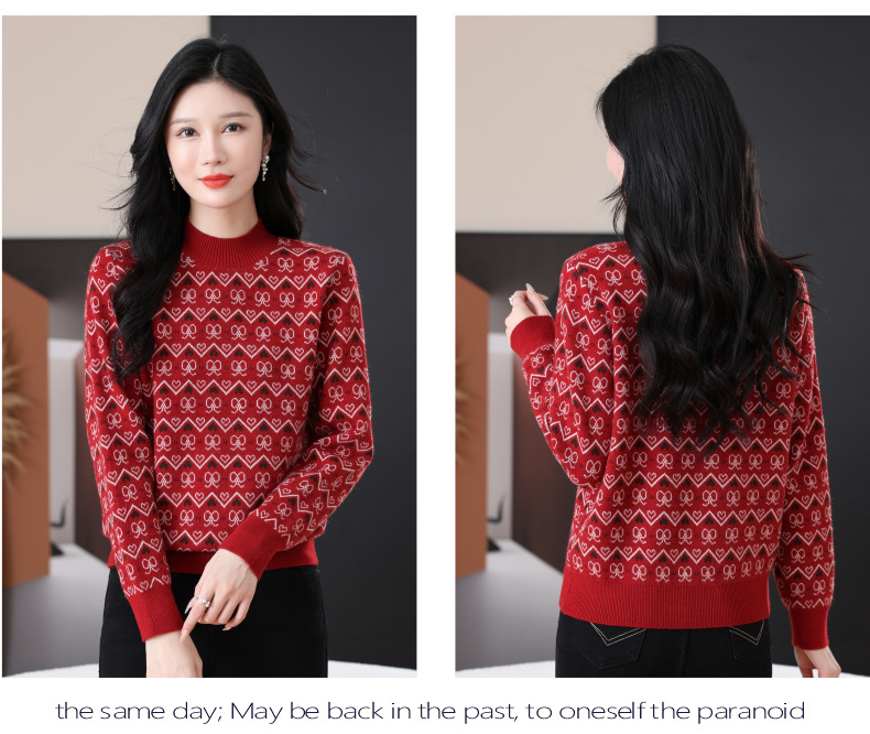 CC-103-8212秋冬季半高领针织毛衣保暖宽松女士洋气内搭提花厚款打底衫