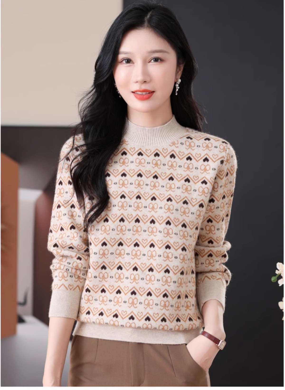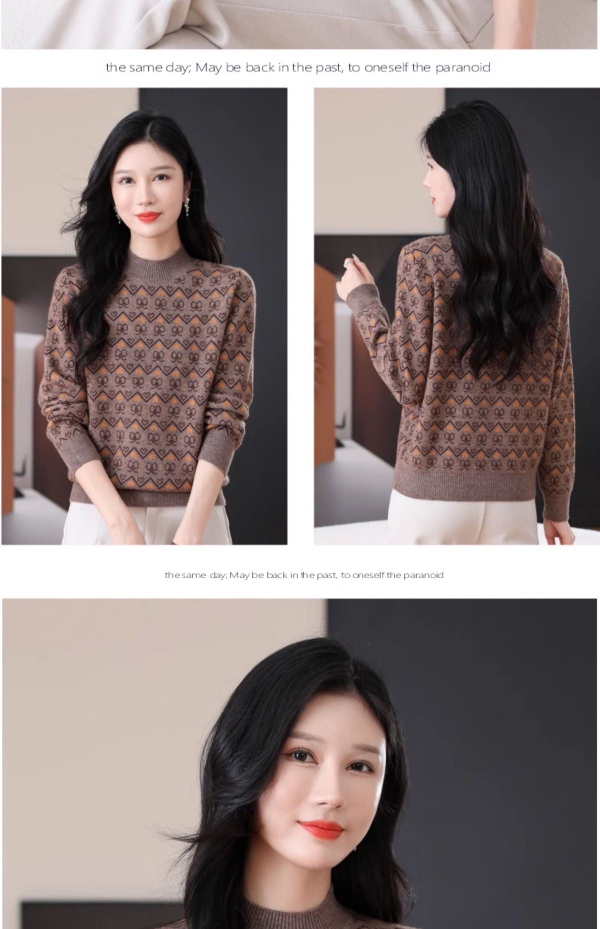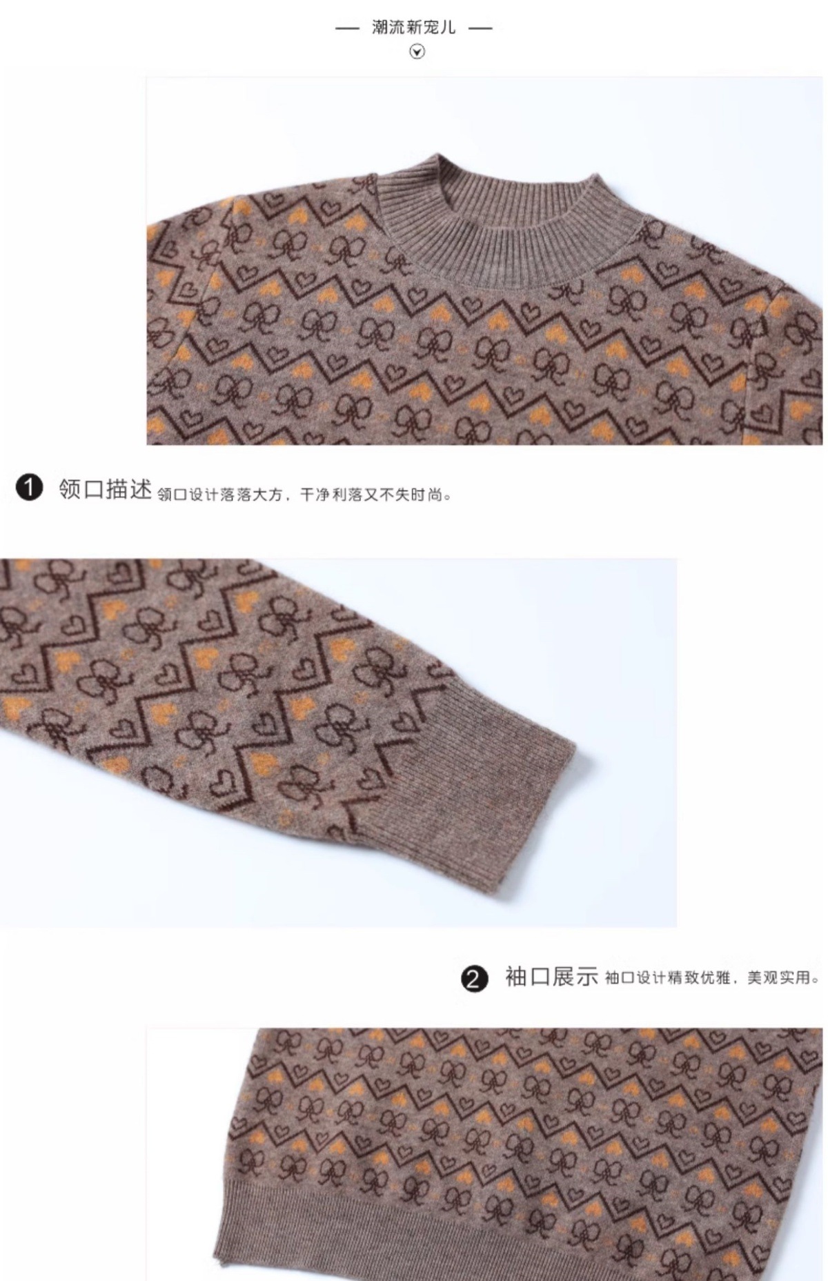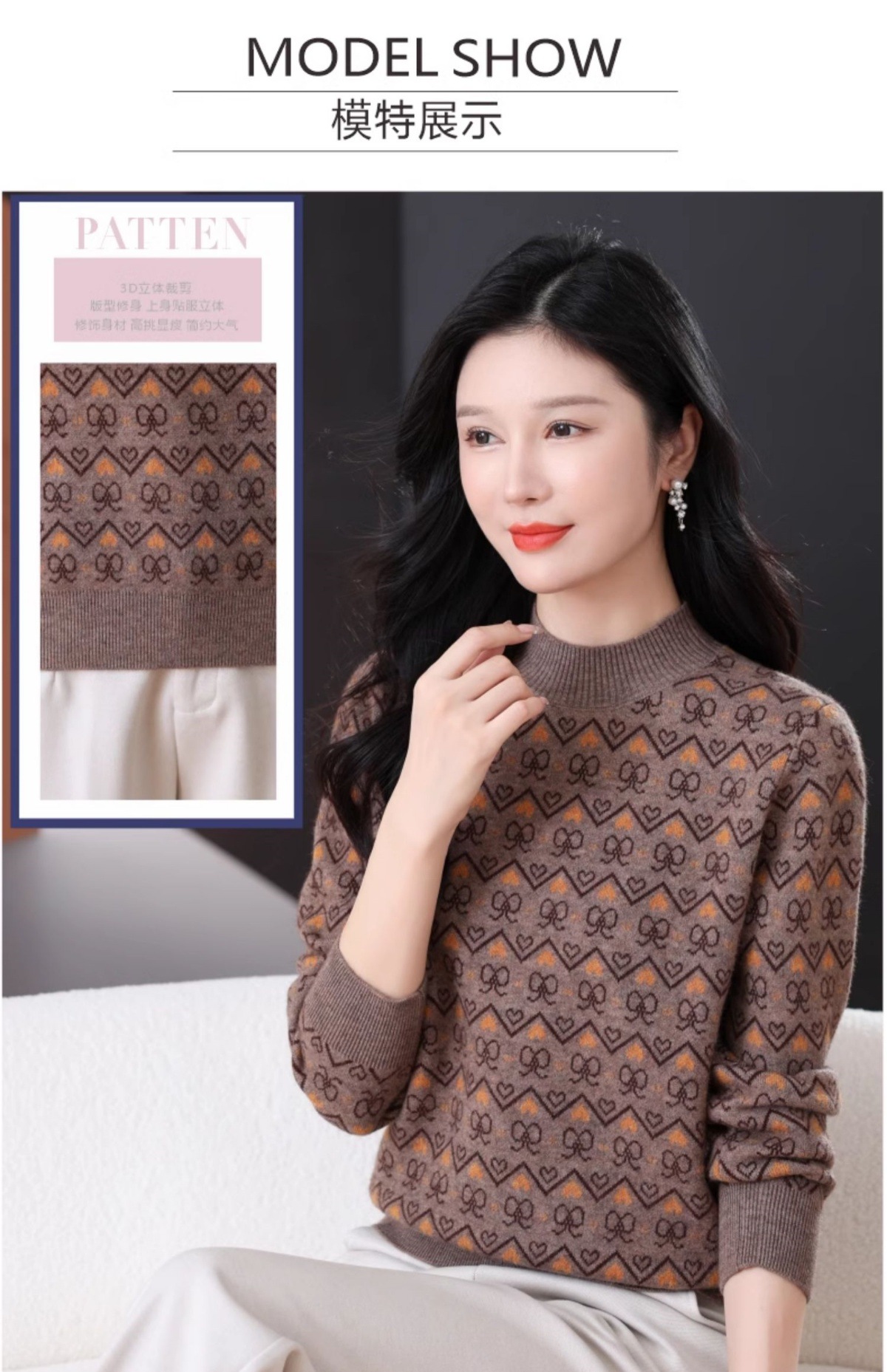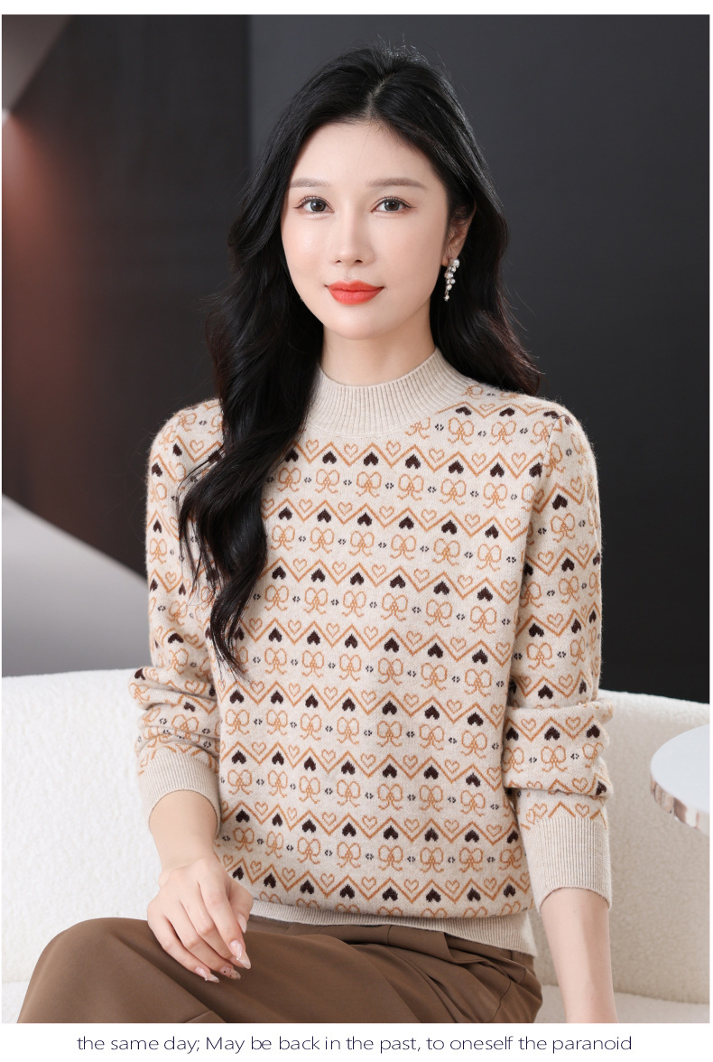 CC-103-8212秋冬季半高领针织毛衣保暖宽松女士洋气内搭提花厚款打底衫