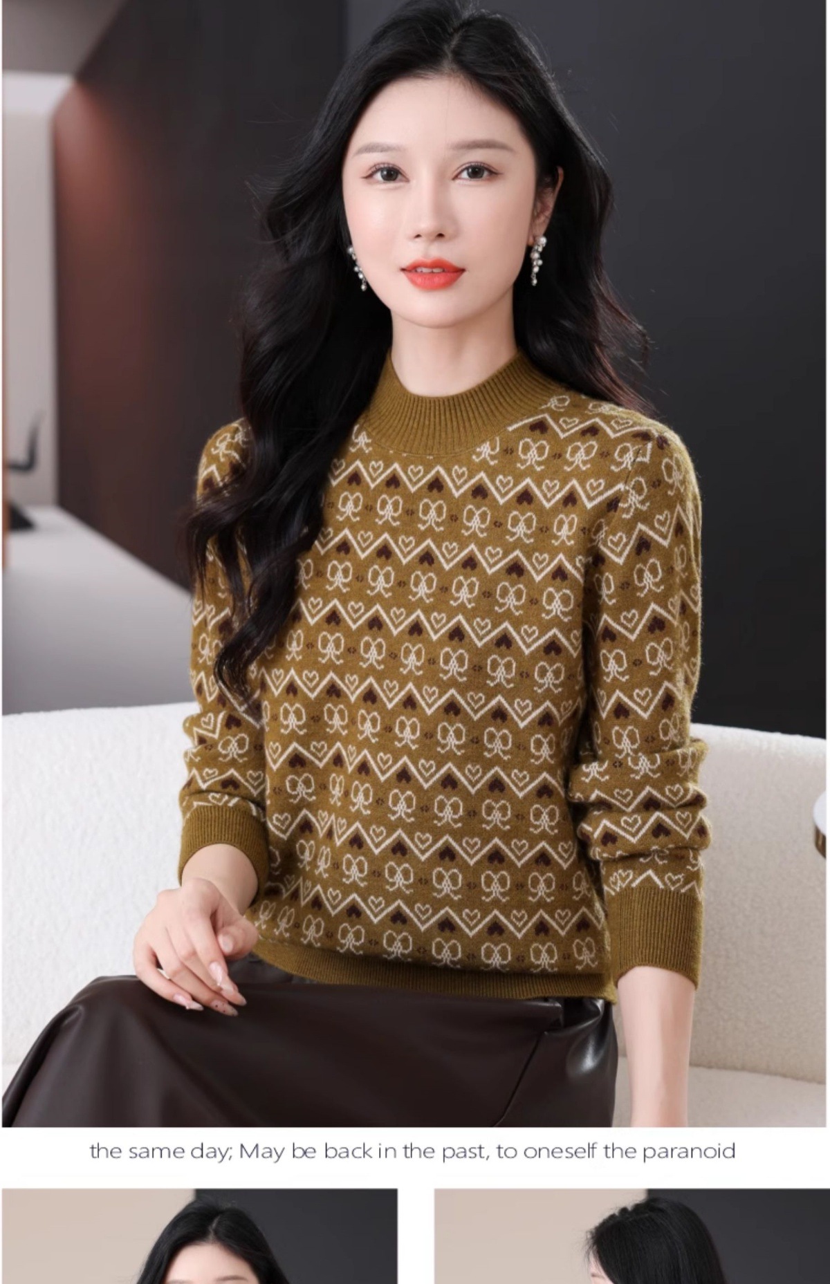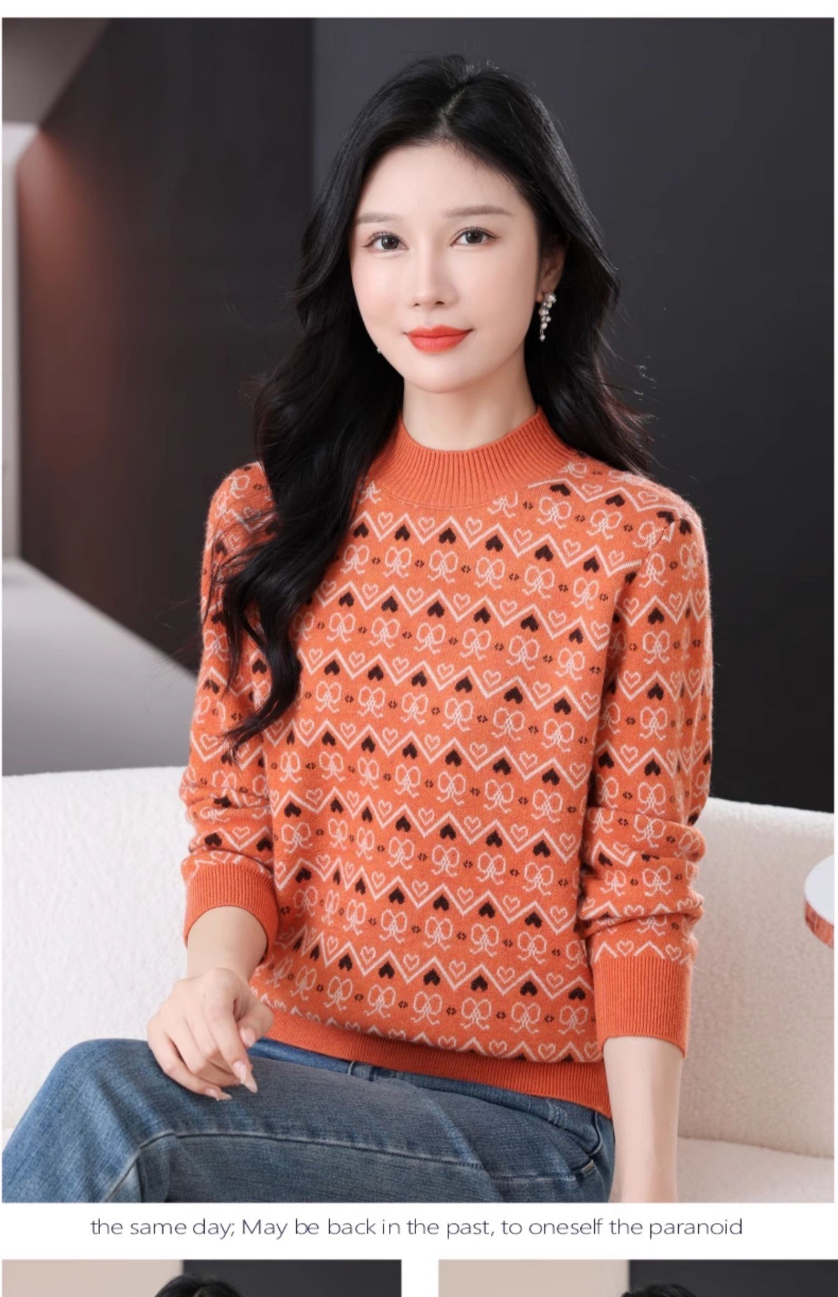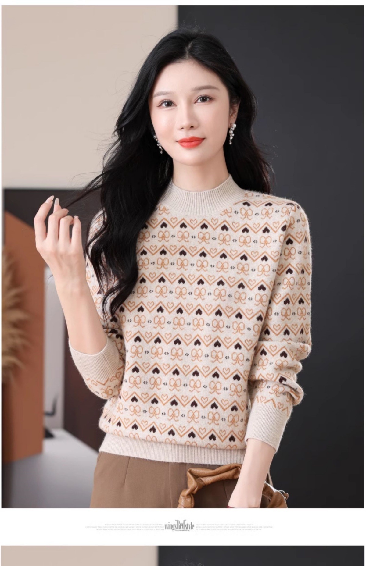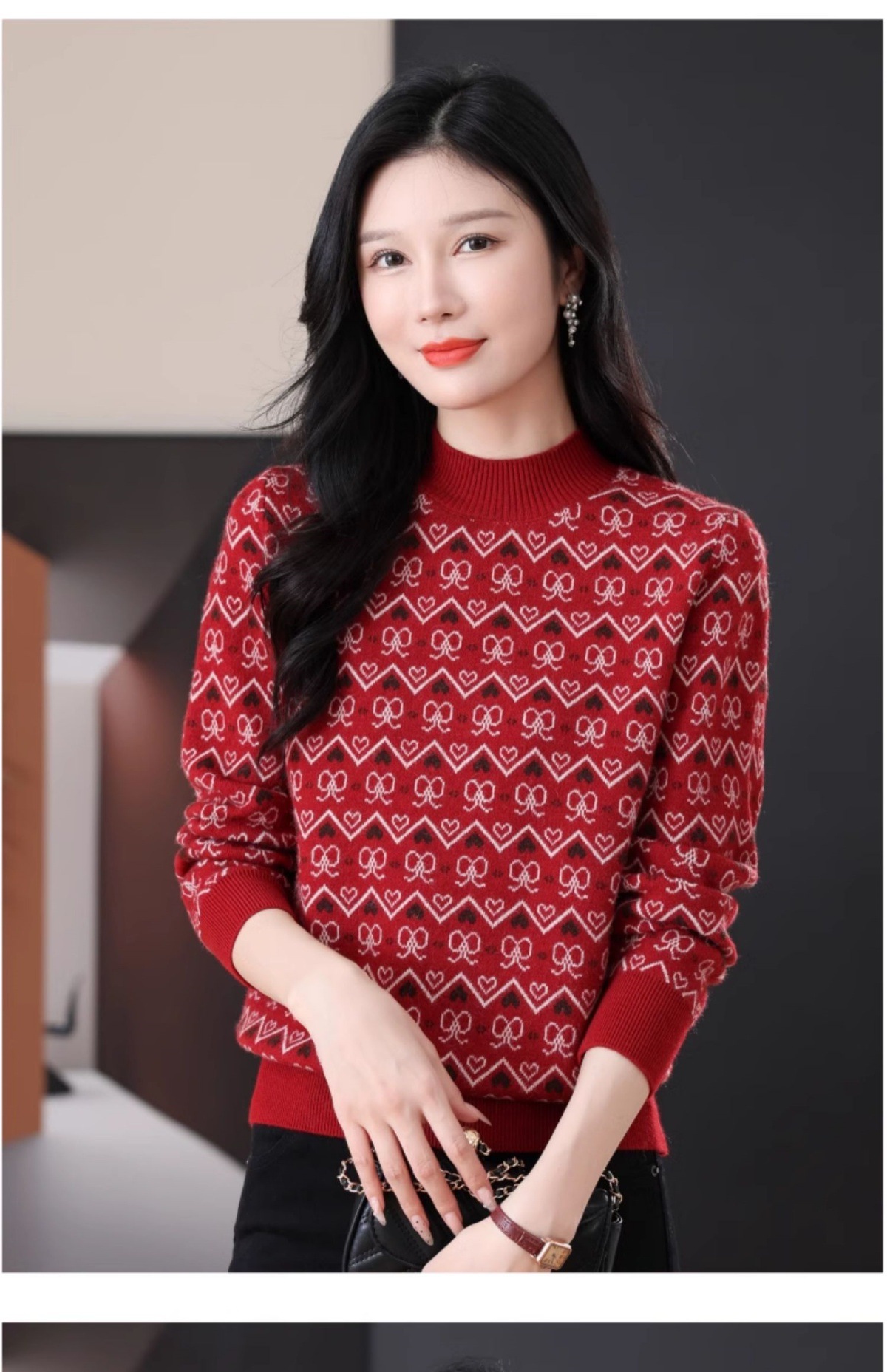CC-103-8212秋冬季半高领针织毛衣保暖宽松女士洋气内搭提花厚款打底衫