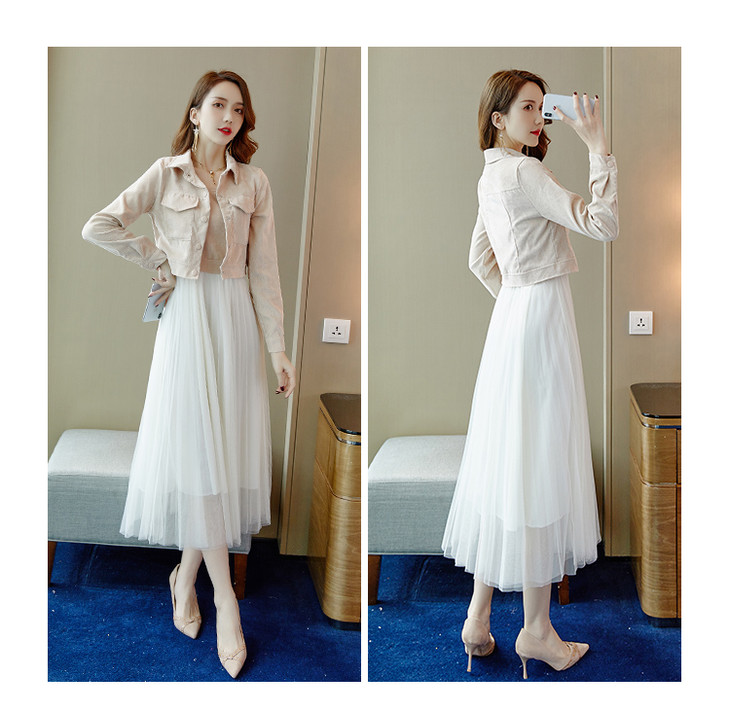 DSD2019新款女装春秋网纱连衣裙很仙的外套配吊带长裙子套装两件套HT6961
