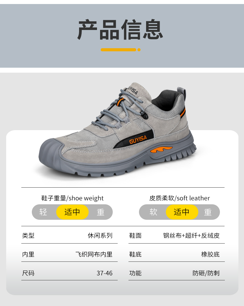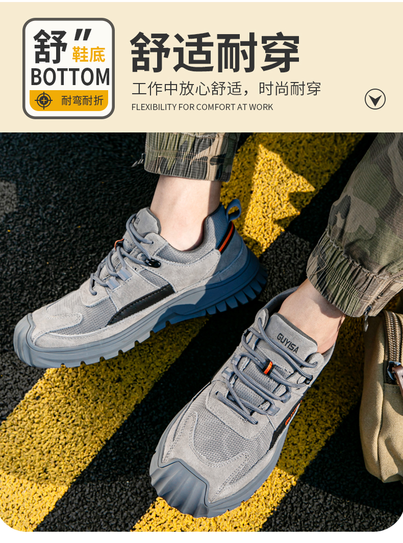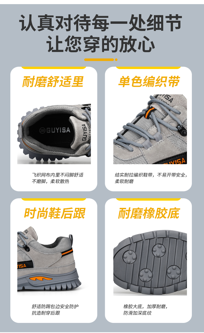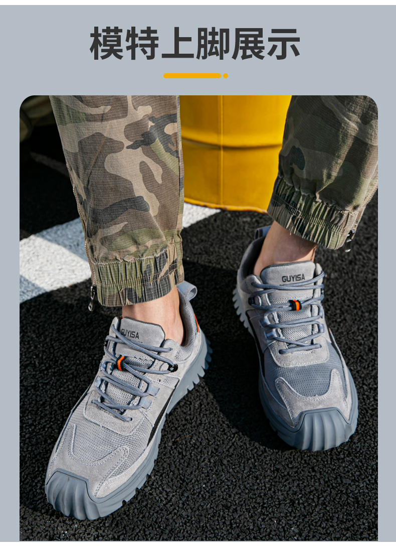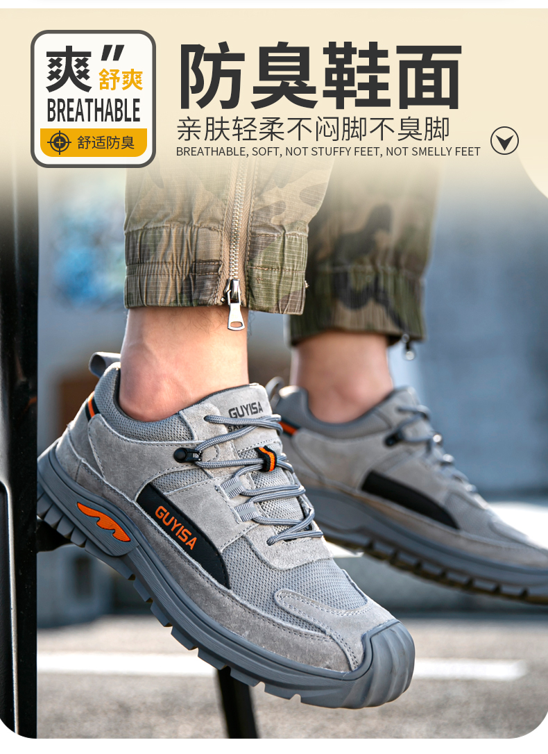 新款灰色劳保鞋男防砸防刺钢包反绒皮四季款耐磨橡胶底舒适透气安全鞋工作鞋