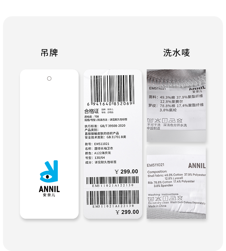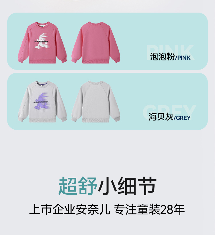 男女童圆领长袖卫衣春季新款安奈儿童装EM511021