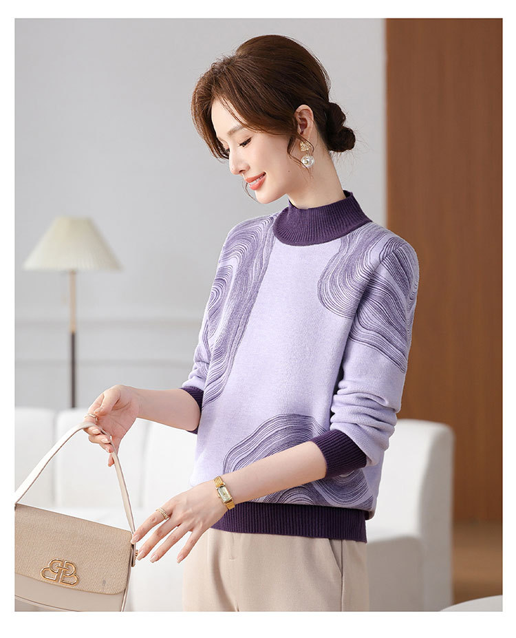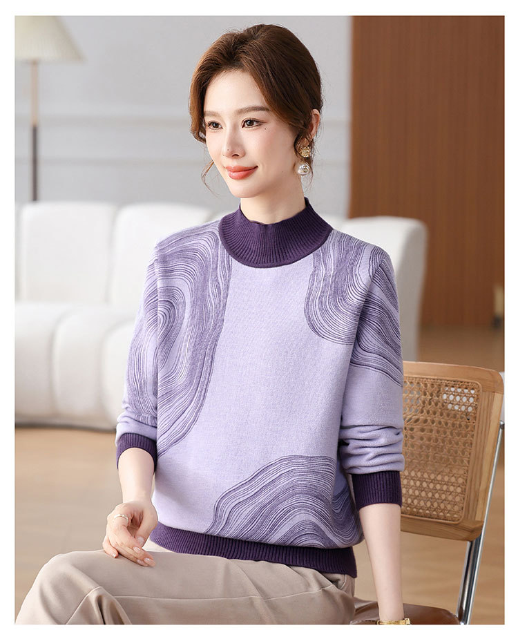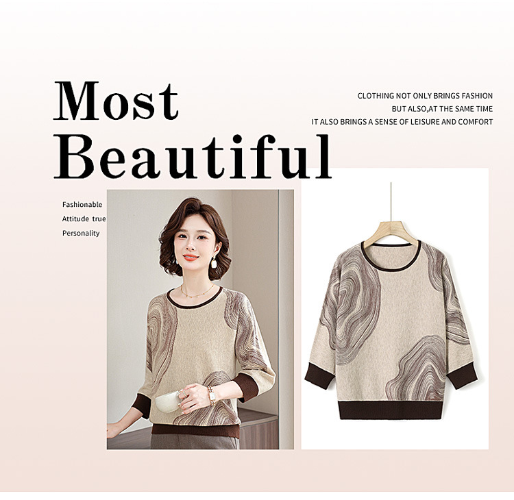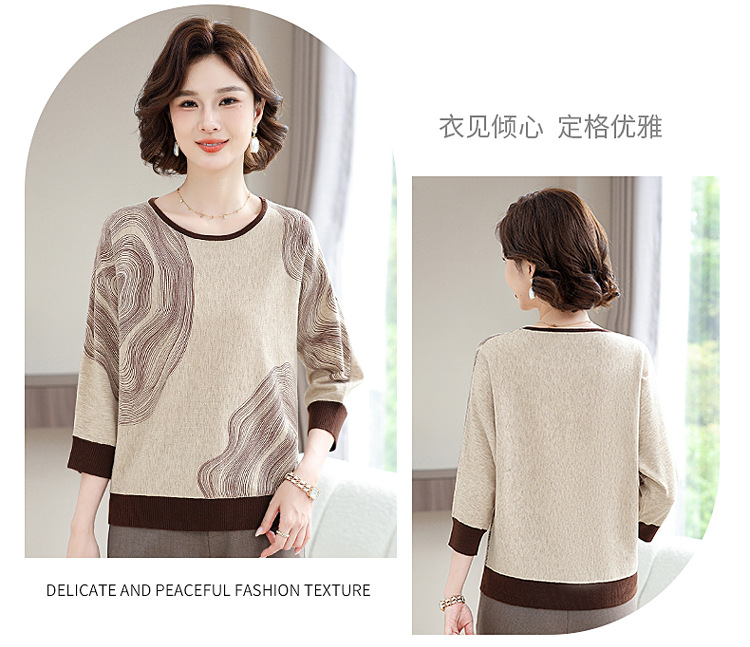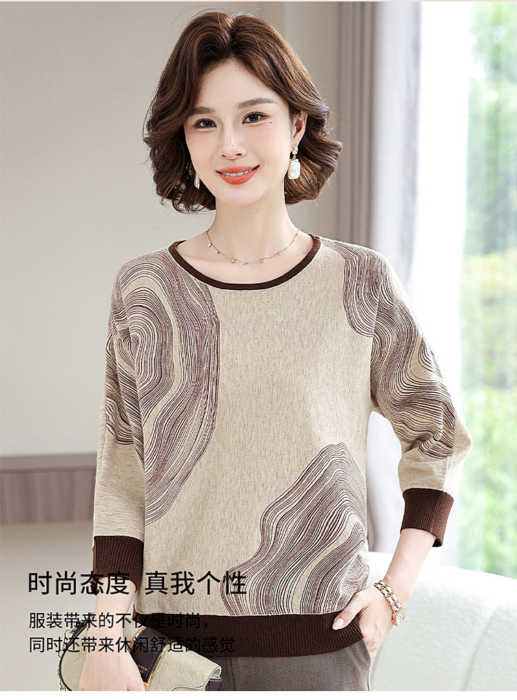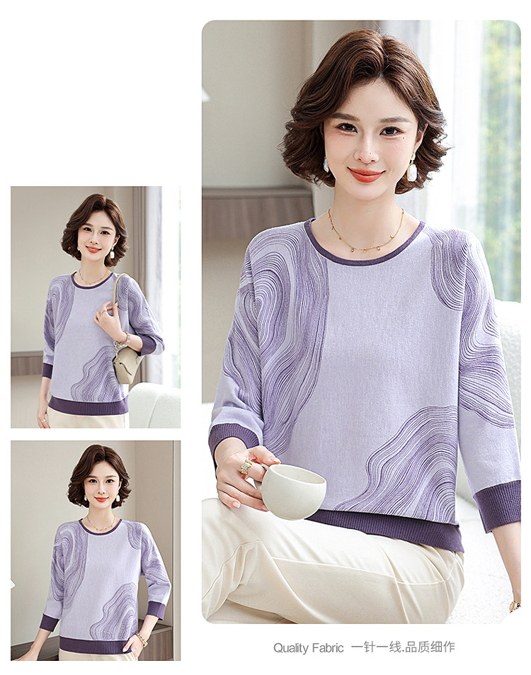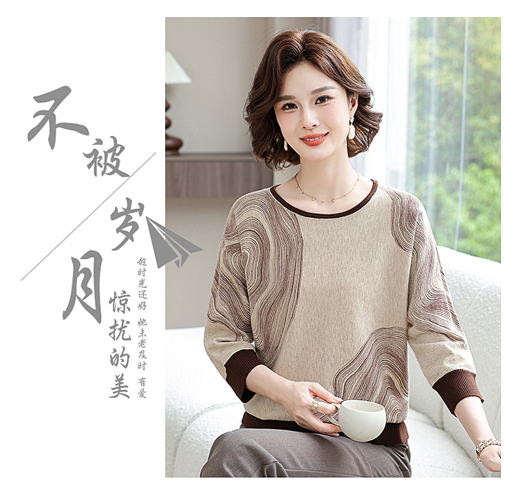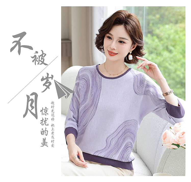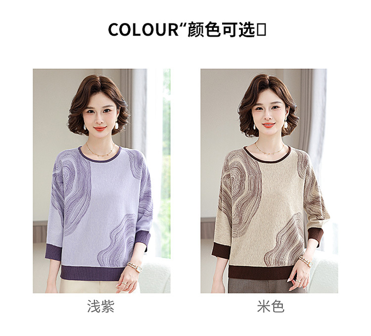 雀说春秋洋气大码打底衫中年女装新款毛衣中老年春装针织上衣 ALWC10-3