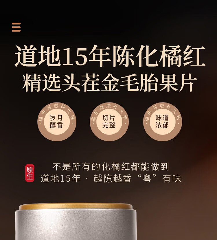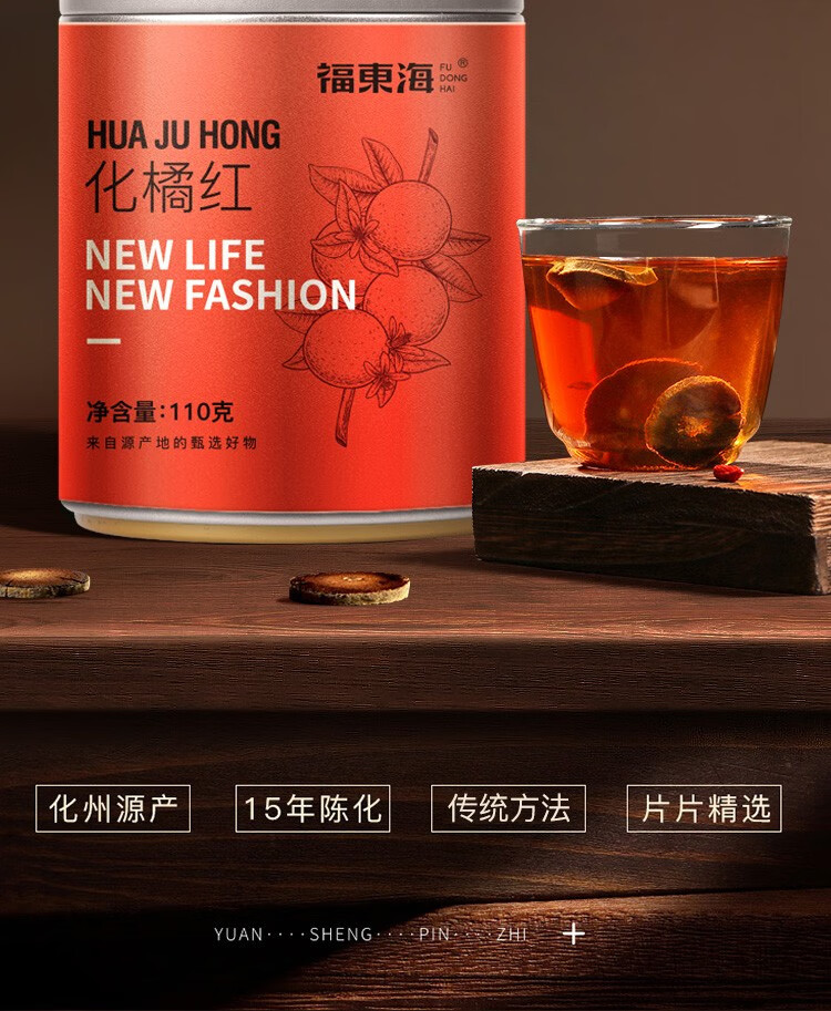【福东海】15年化橘红 产地化州化橘红桔红切片陈年化橘红果切片 养生茶 【送礼佳品】--MD