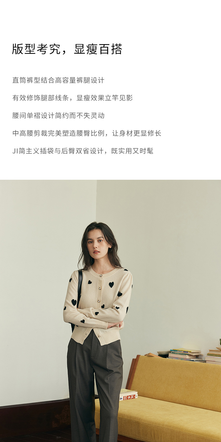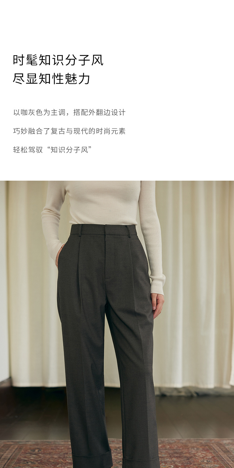 (小眠专属)HeyDress法式休闲直筒裤女秋冬宽松高腰显瘦通勤百搭阔腿西裤裤子