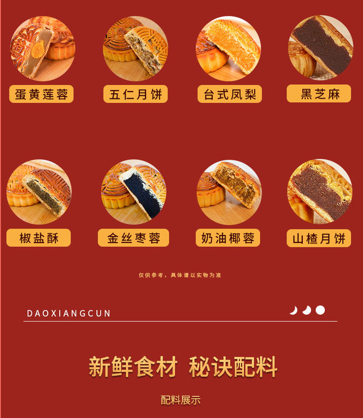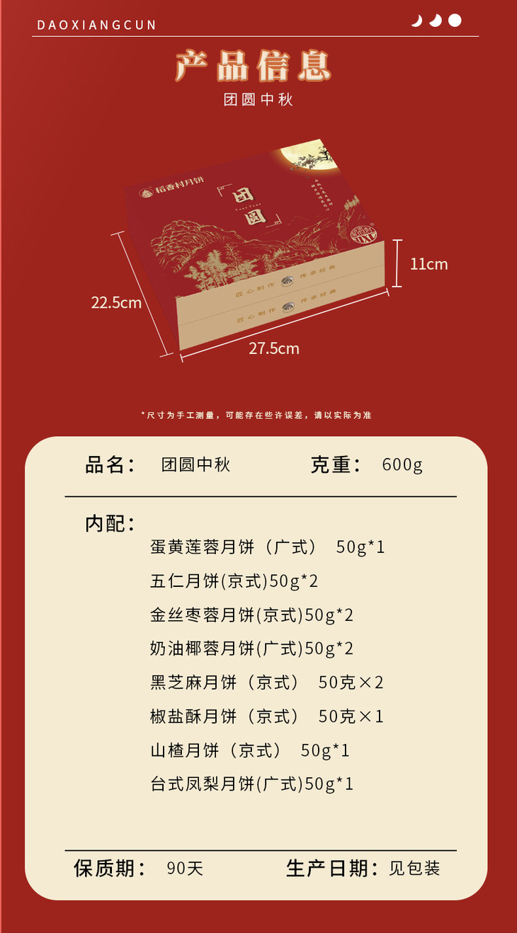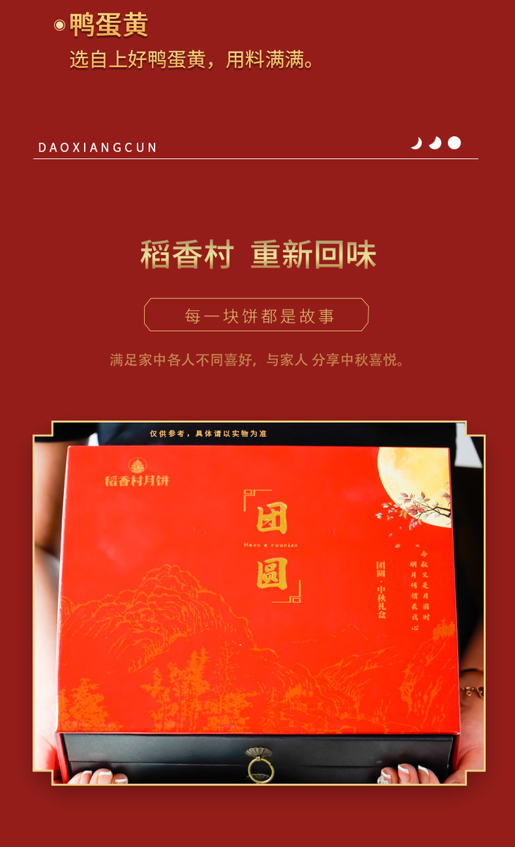 【稻香村】团圆中秋 600g/12饼8味【含精美手提袋】五仁口味糕点蛋黄莲蓉经典味道