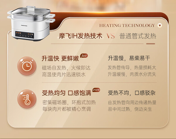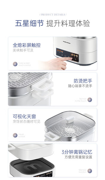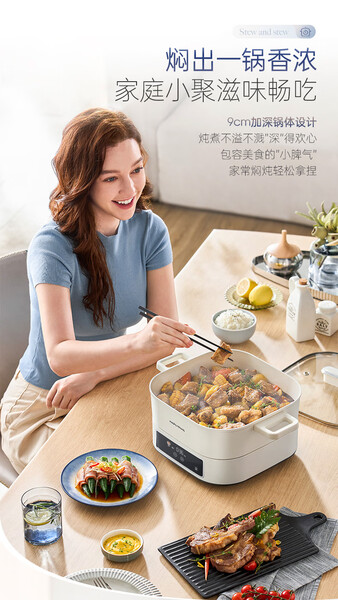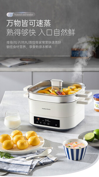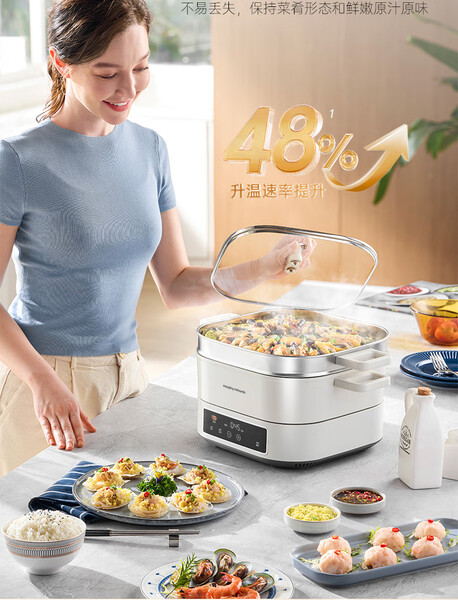 摩飞电蒸锅多功能锅 家用IH桑拿电火锅电煮锅 6L大容量炖蒸煮一体可预约定时不锈钢蒸屉蒸炖锅MR8901