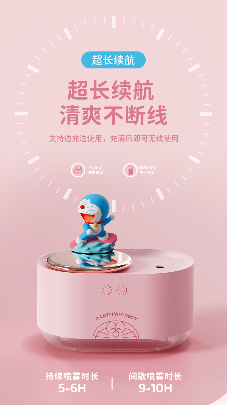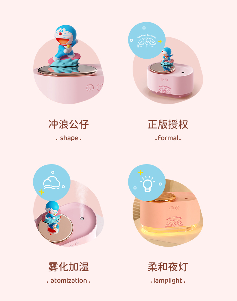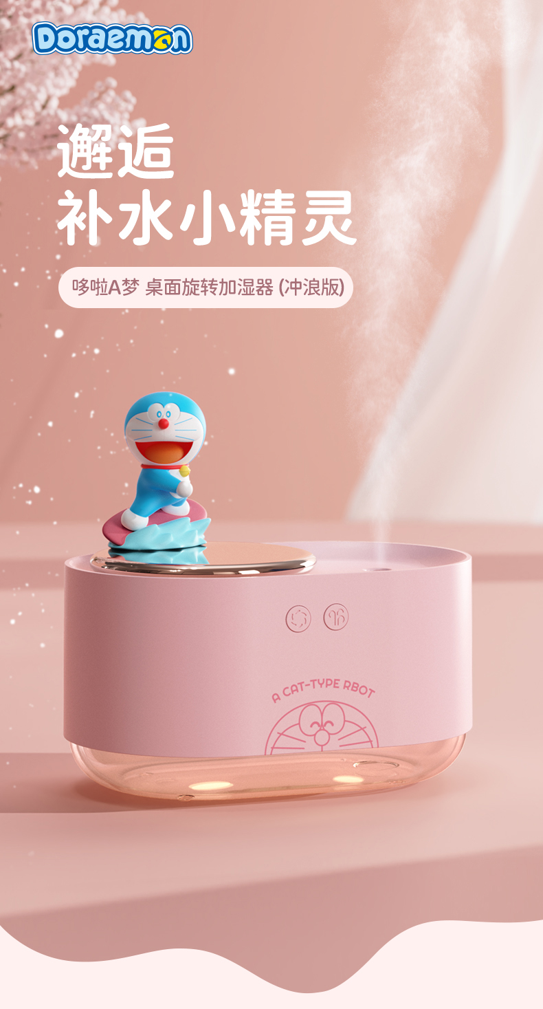 ROCK-哆啦A梦生活系列-哆啦A梦旋转冲浪夜灯喷雾加湿器