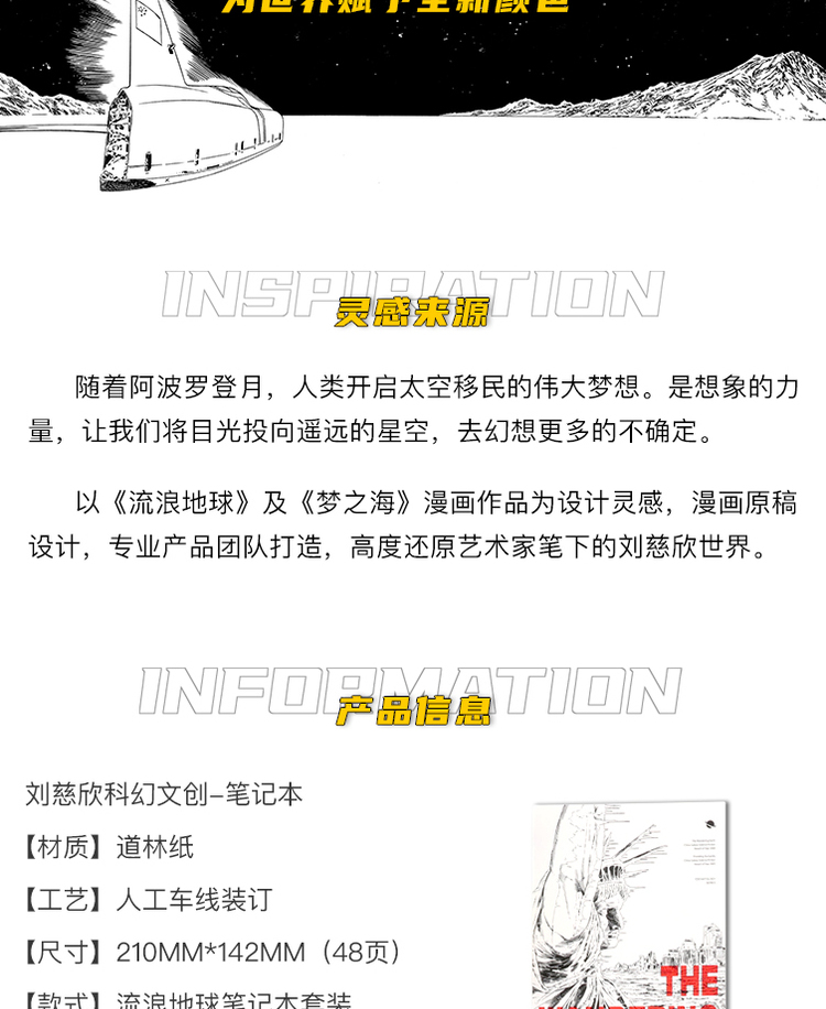 刘慈欣笔记本 梦之海 流浪地球两套科幻小说人工车线原画封面厚 礼物文具文创