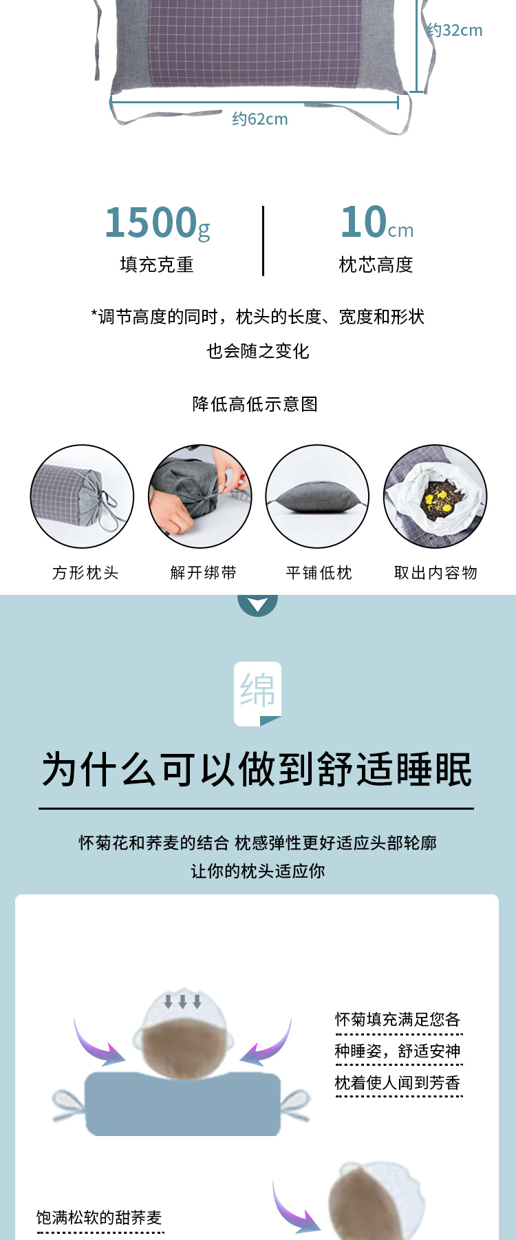 怀菊花荞麦枕,枕头可调高低,满足颈椎支撑力,闻着菊花香味陪伴睡眠,很好用的枕头(正牌力荐)