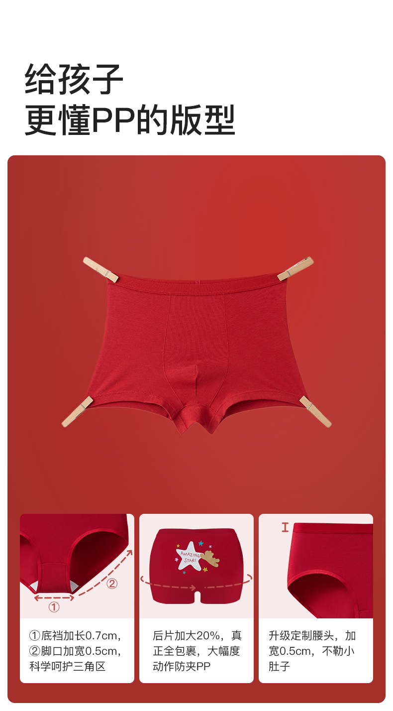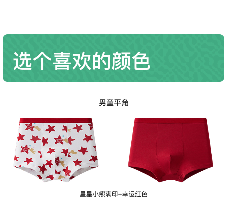 【E】likeuu儿童内裤纯棉女童礼盒红色本命年三角平角发育期学生男女童礼物(2条装)