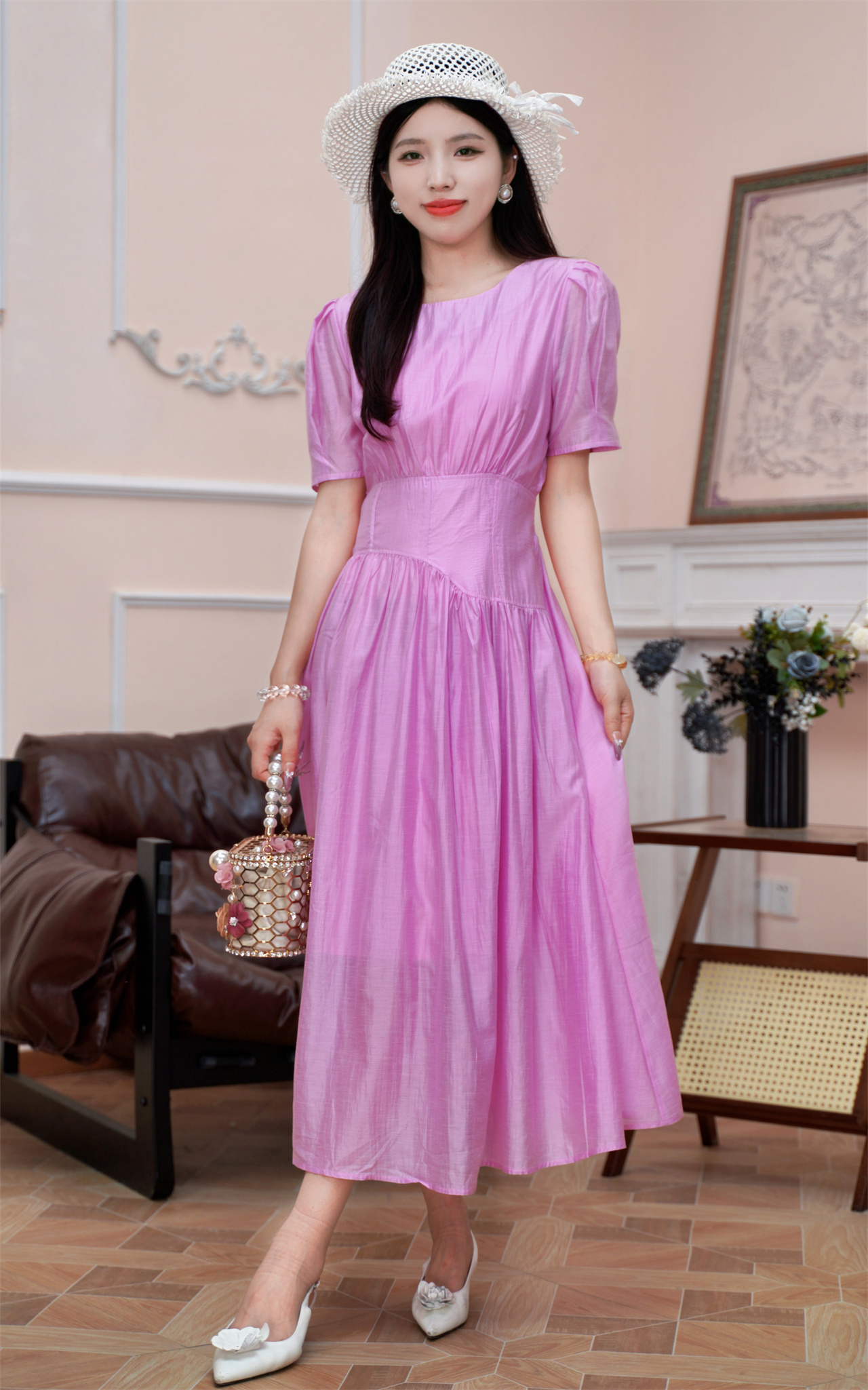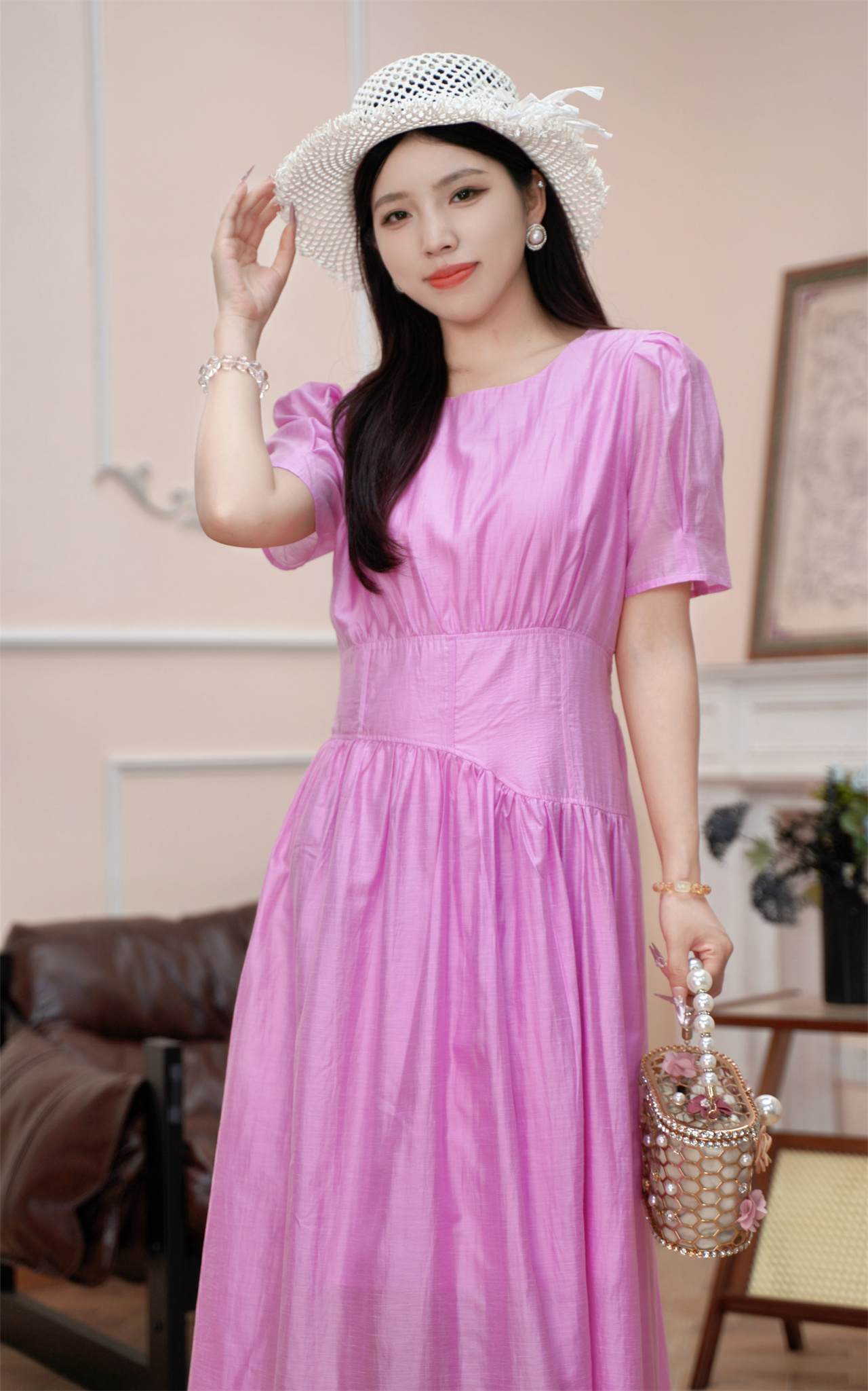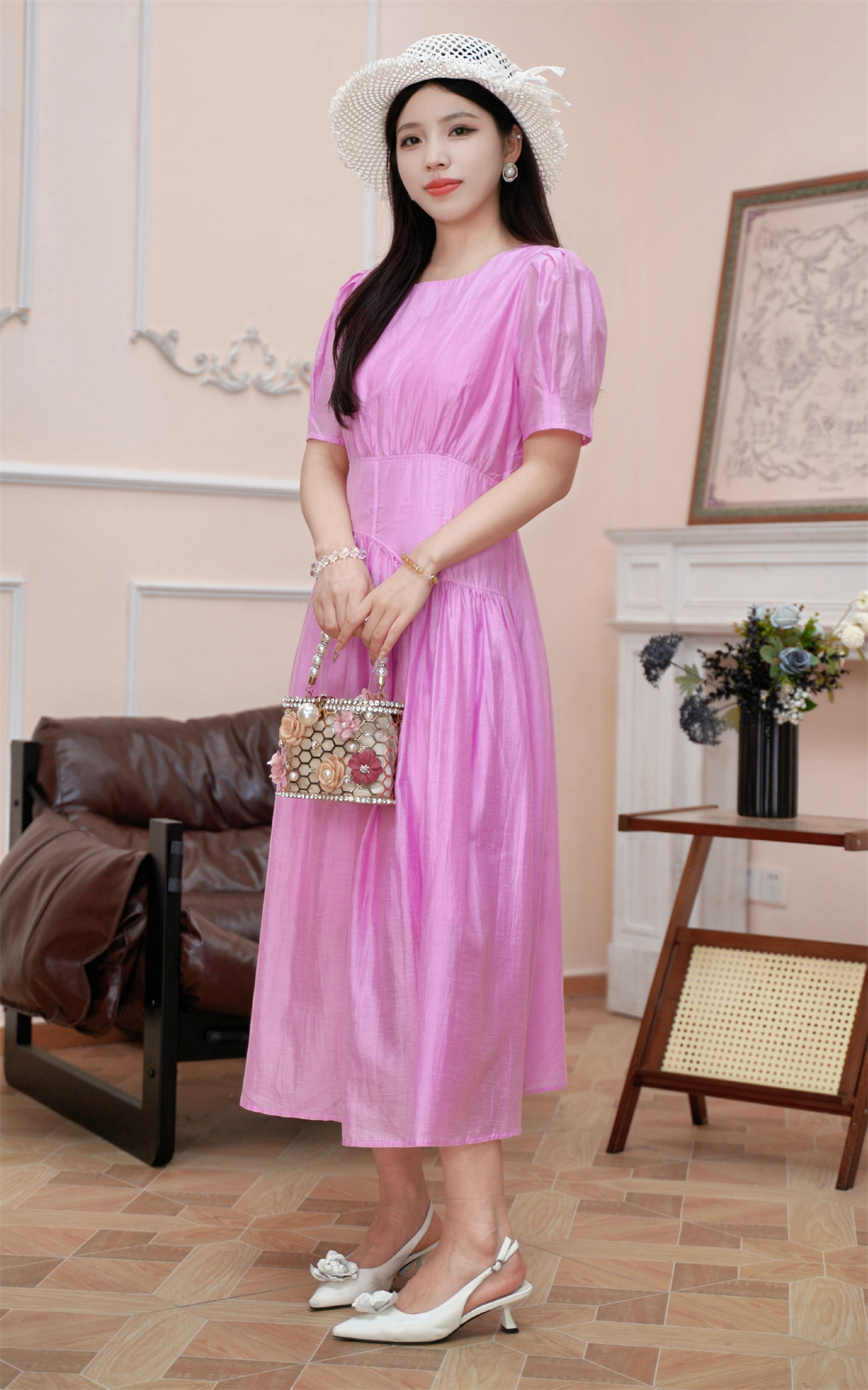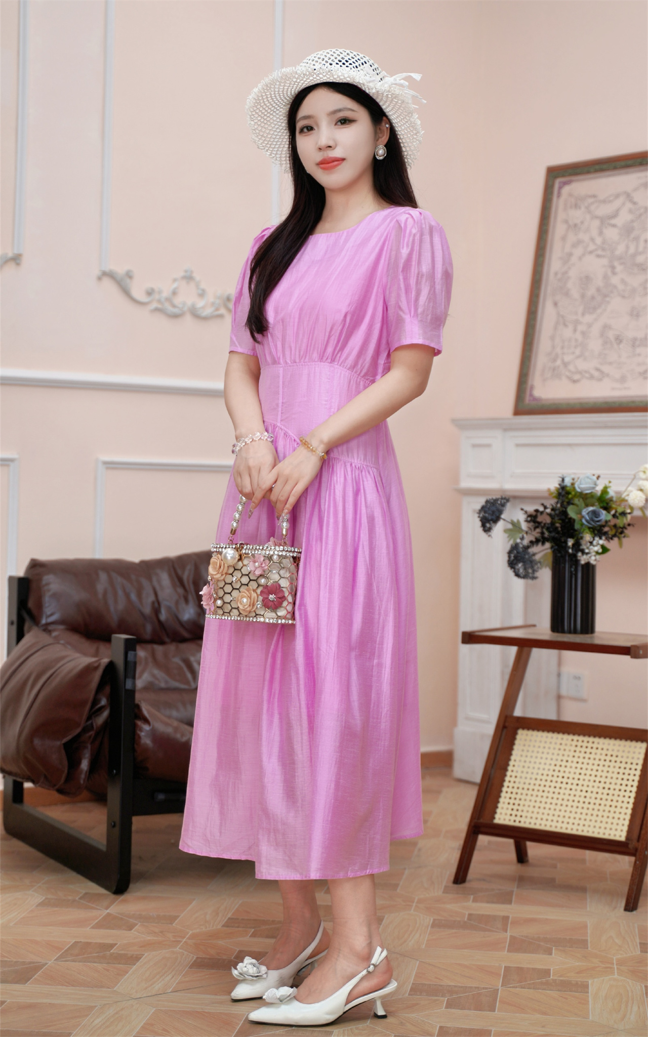 泡泡袖撑起直角肩,中长裙摆走起路摇曳生姿~