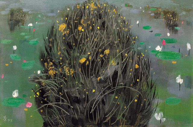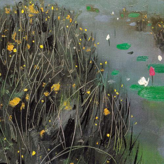 吴冠中|《莲与草》——综合版(油画)