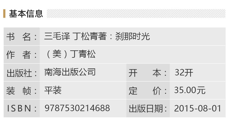 《刹那时光》记述了丁松青一九八二年回美国学画以及墨西哥之旅中的点滴故事,借由一趟实相的历程道出自己由迷惘到坚定的心路历程。增收十一封三毛致丁松青书信,深入呈现了三毛与丁松青的相识相知,以及心灵上的深层交流,20年友谊可窥一隅。
