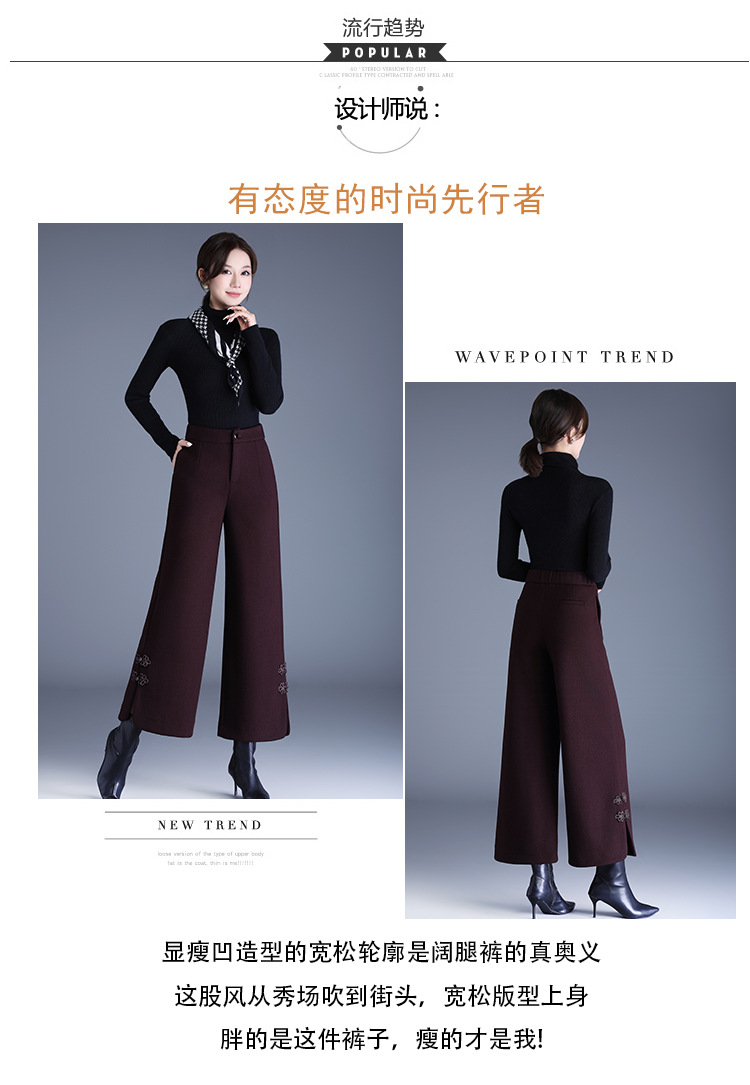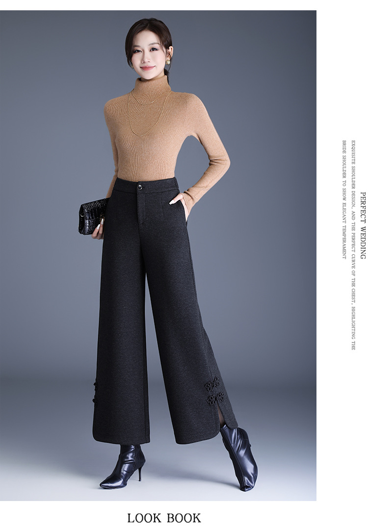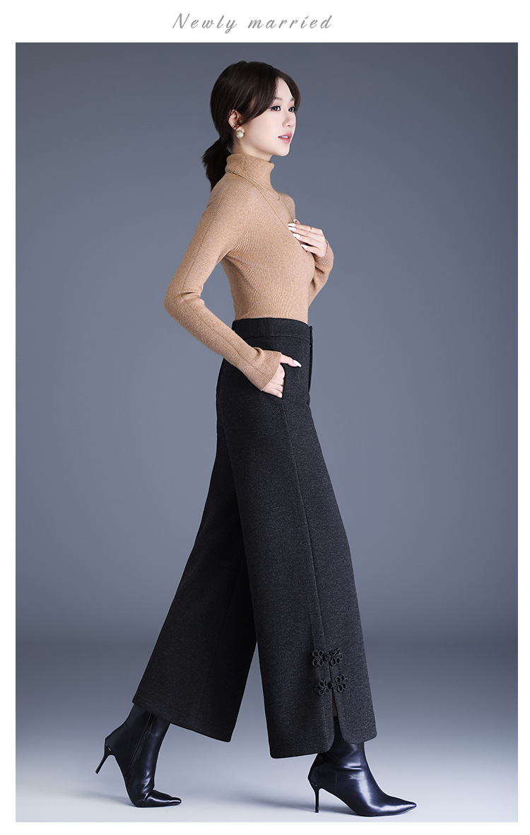 CY-6602-Y中式盘扣毛呢阔腿裤厚款保暖直筒裤秋冬季新款女装长裤 商品图4