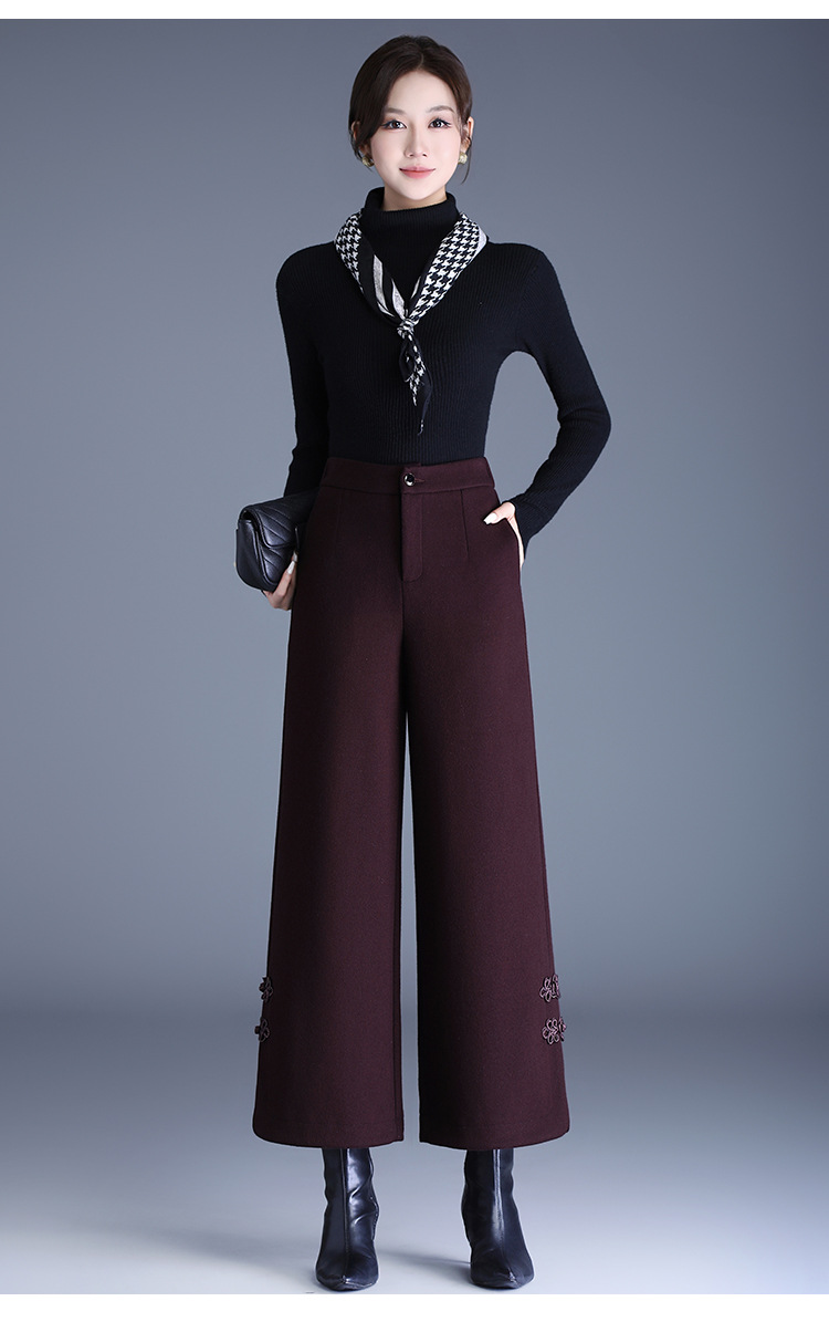 CY-6602-Y中式盘扣毛呢阔腿裤厚款保暖直筒裤秋冬季新款女装长裤 商品图1