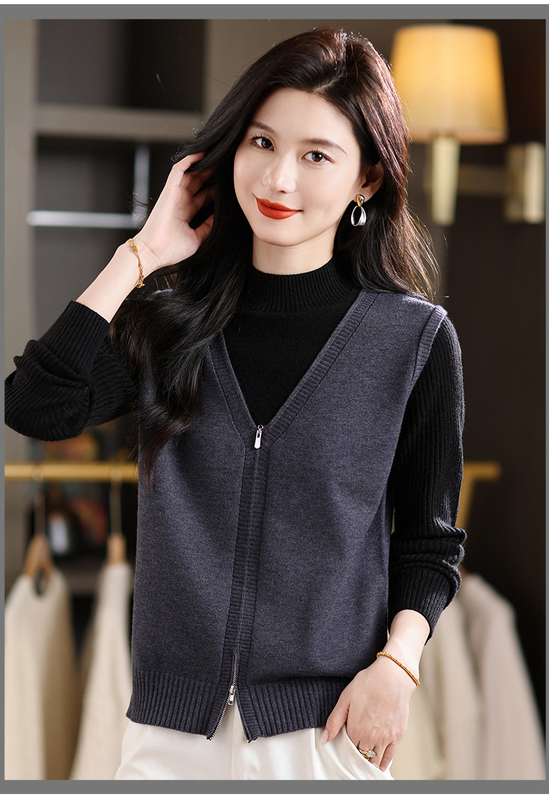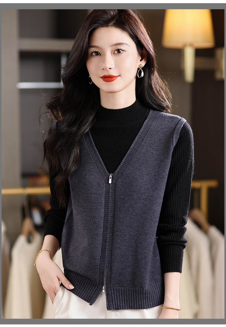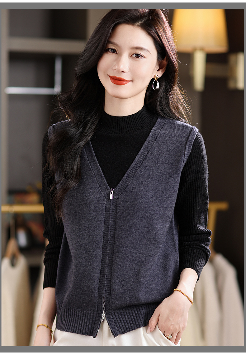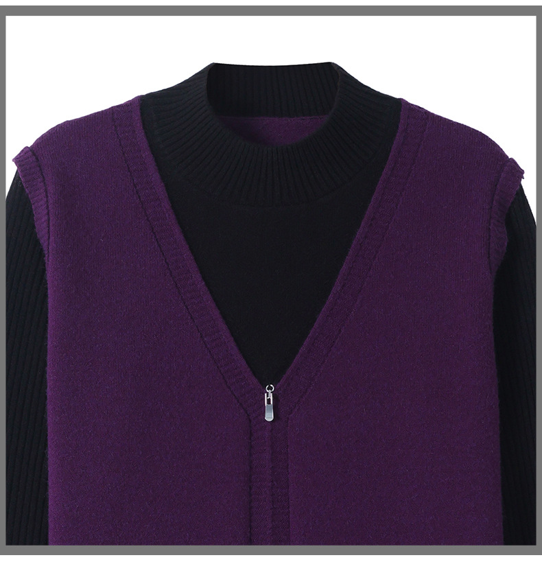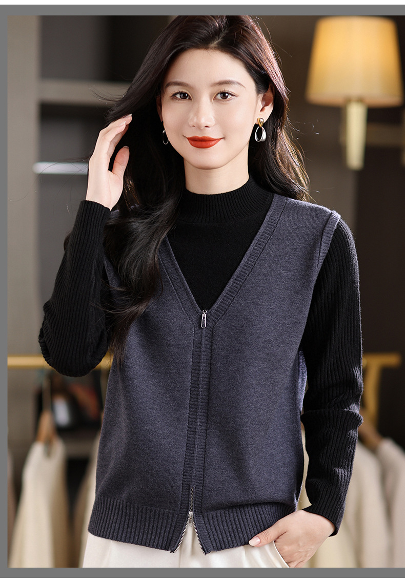 CC漂亮假两件毛衣女2025秋冬时尚洋气时髦上衣内搭可外穿打底衫大码