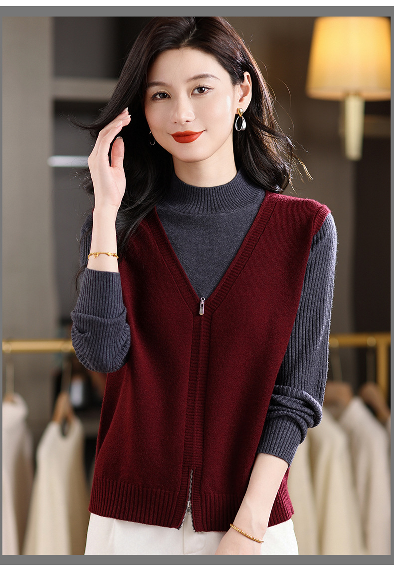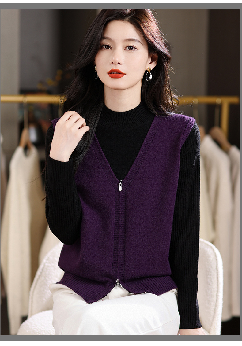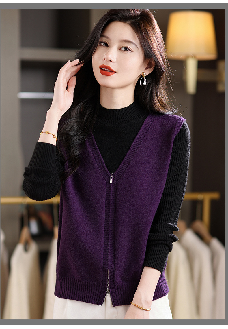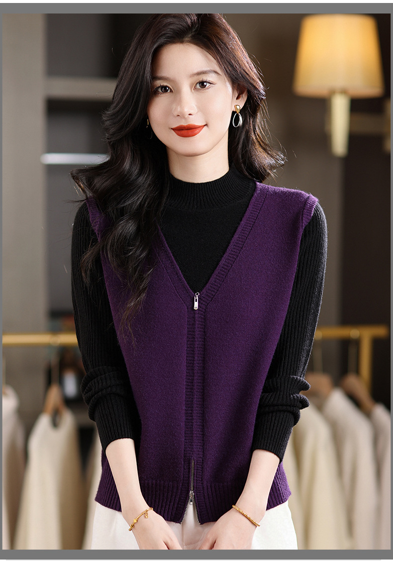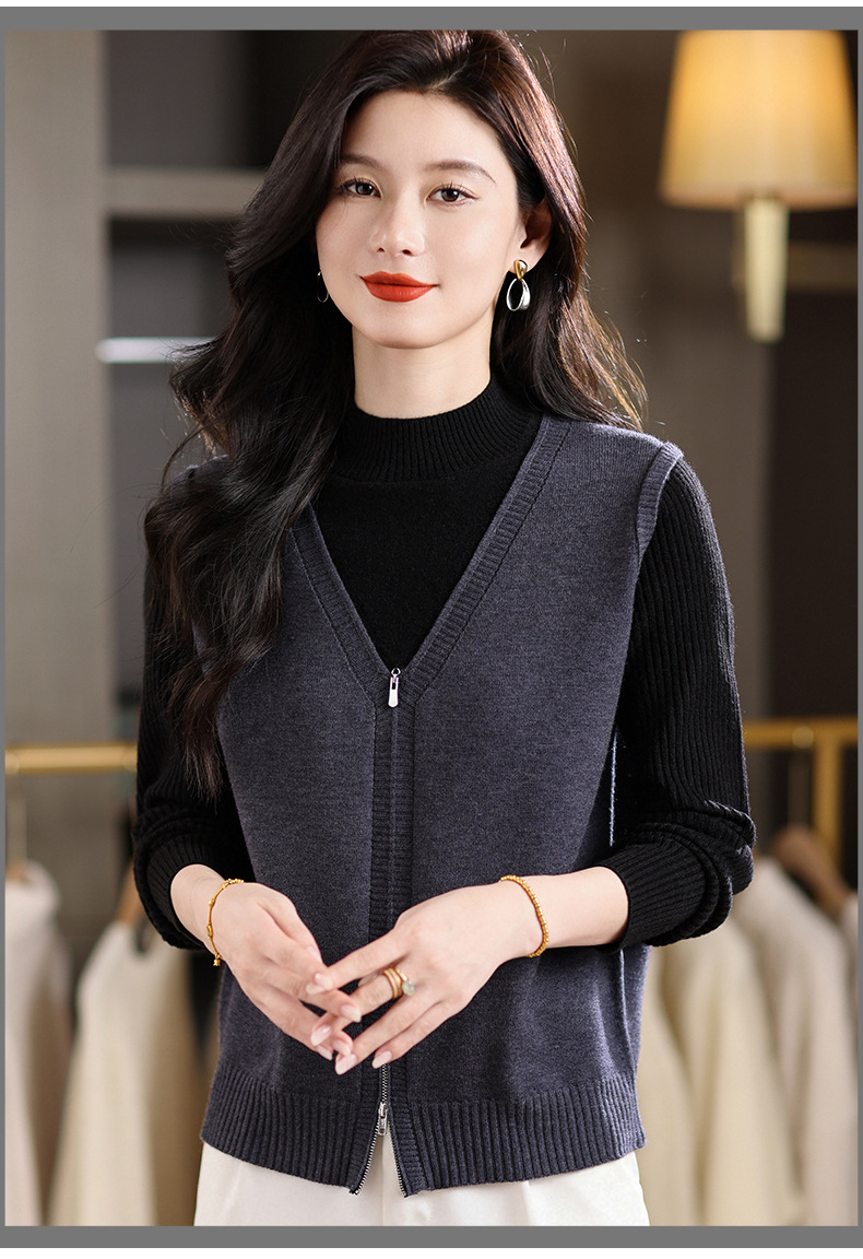 CC漂亮假两件毛衣女2025秋冬时尚洋气时髦上衣内搭可外穿打底衫大码