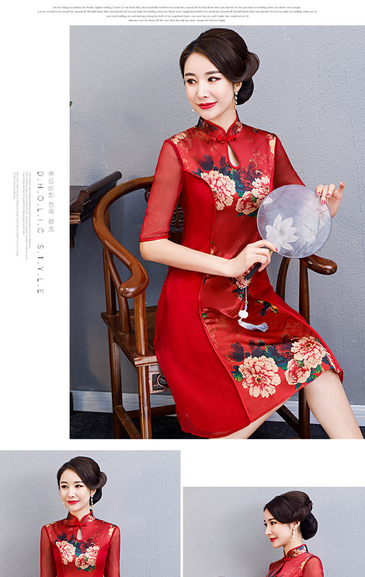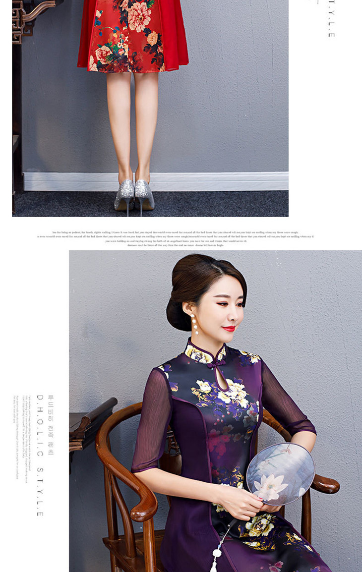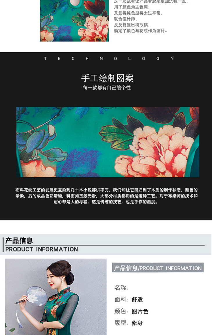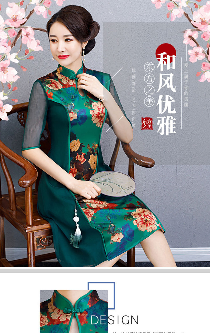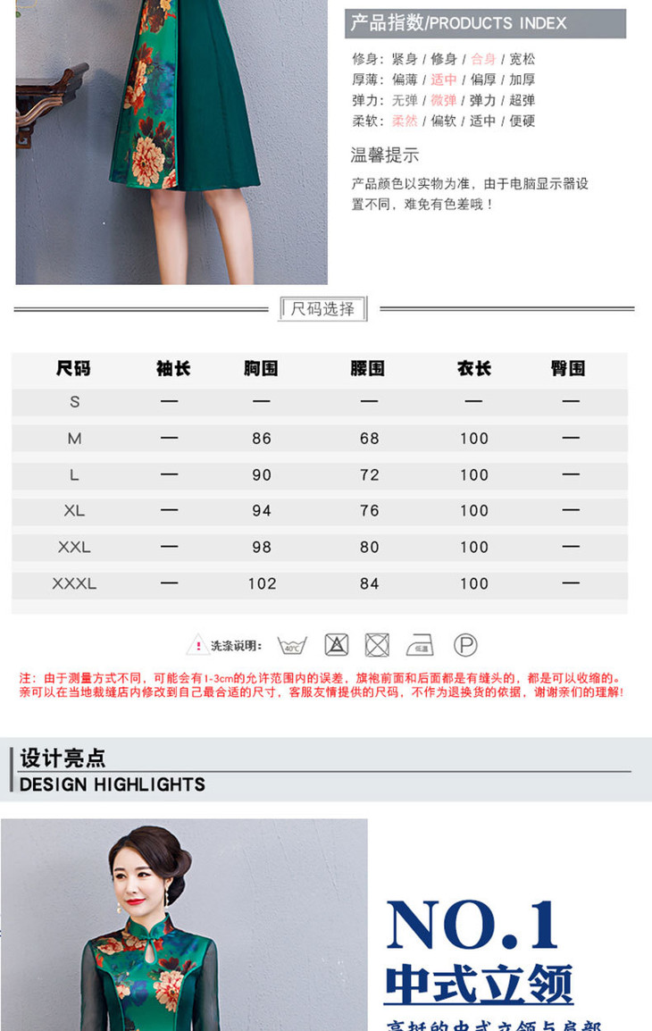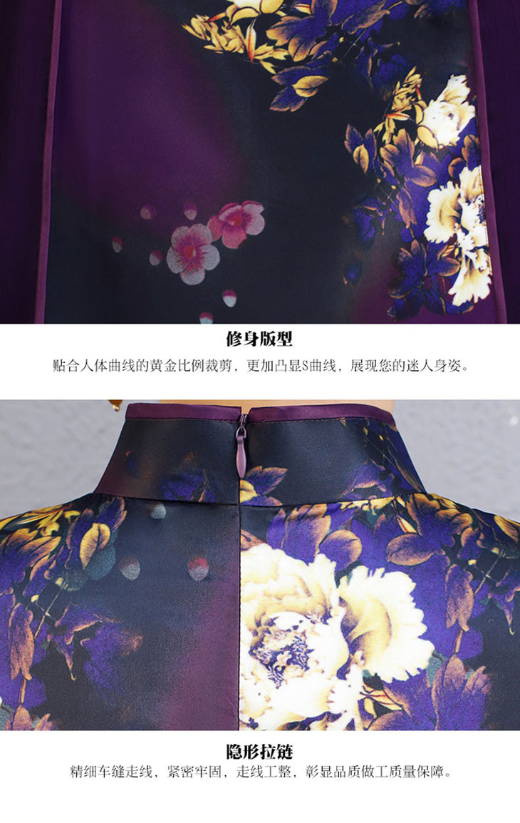 TX04256新款优雅气质修身立领雪纺拼接印花中长款连衣裙