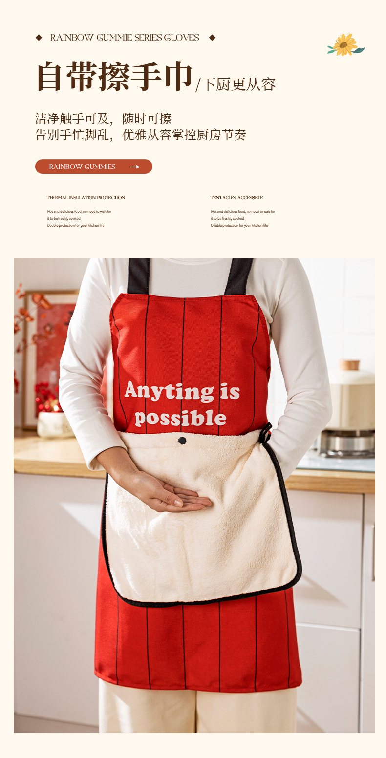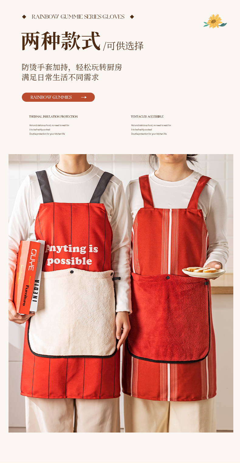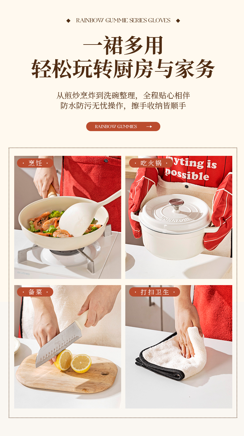 摩登主妇新年围裙厨房家用新款可拆卸擦手防水防油做饭外穿年轻款