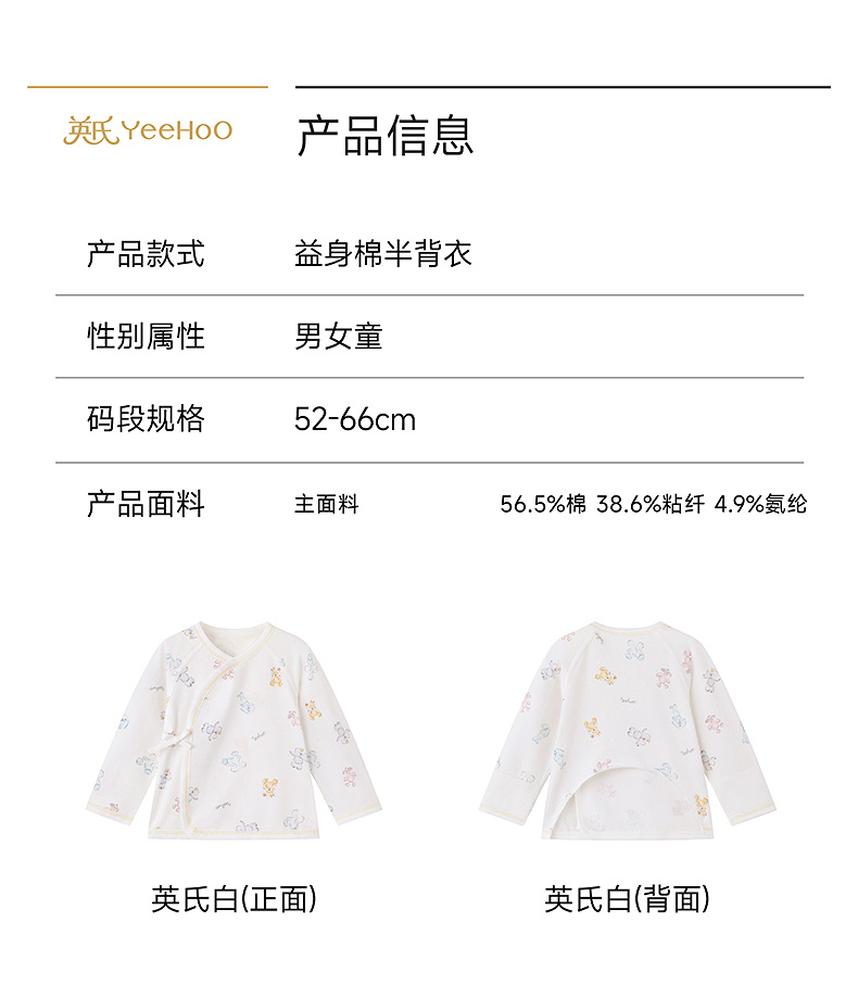 【商场同款】英氏半背衣初生婴儿四季可穿长袖和袍抗菌防螨上衣
