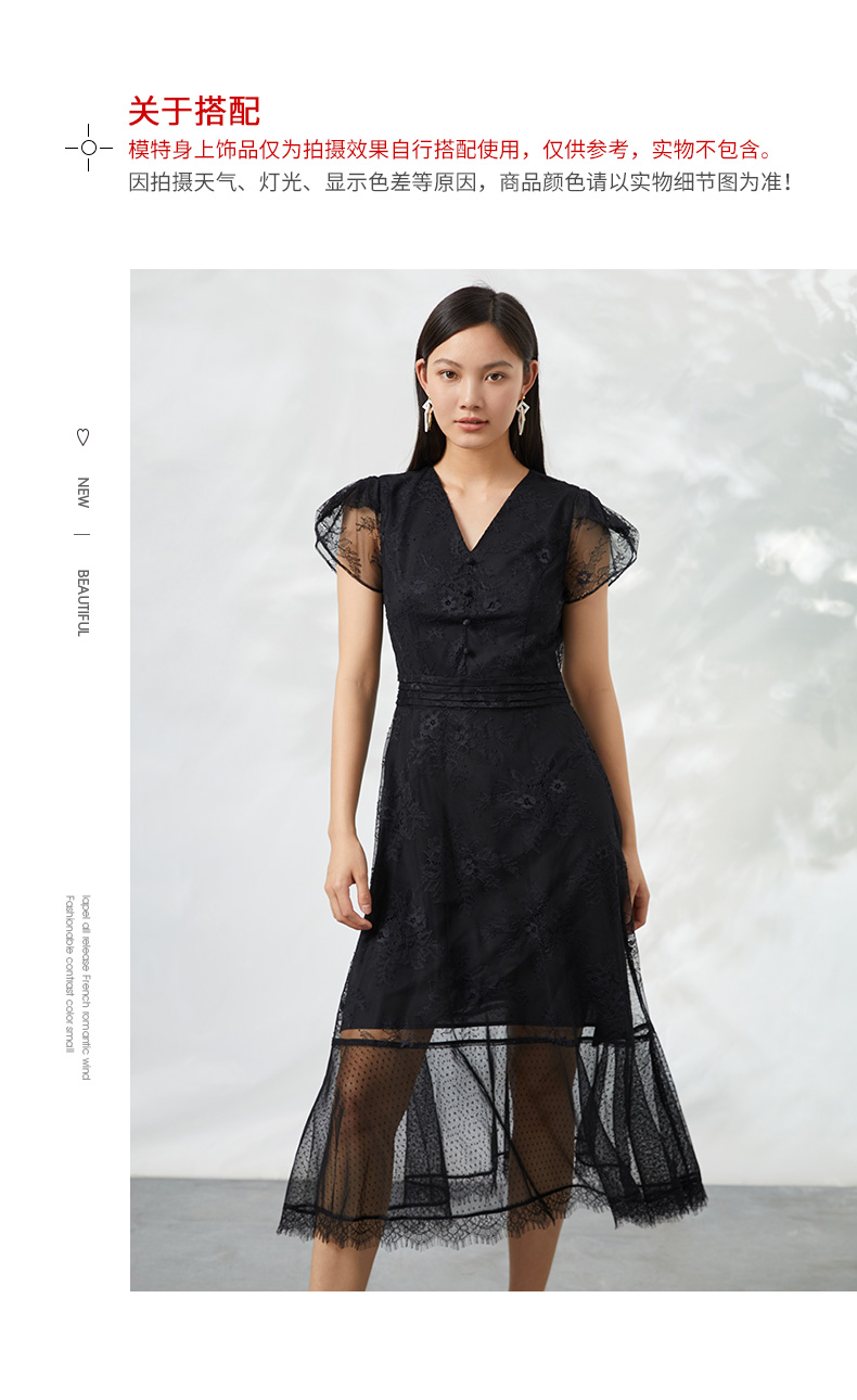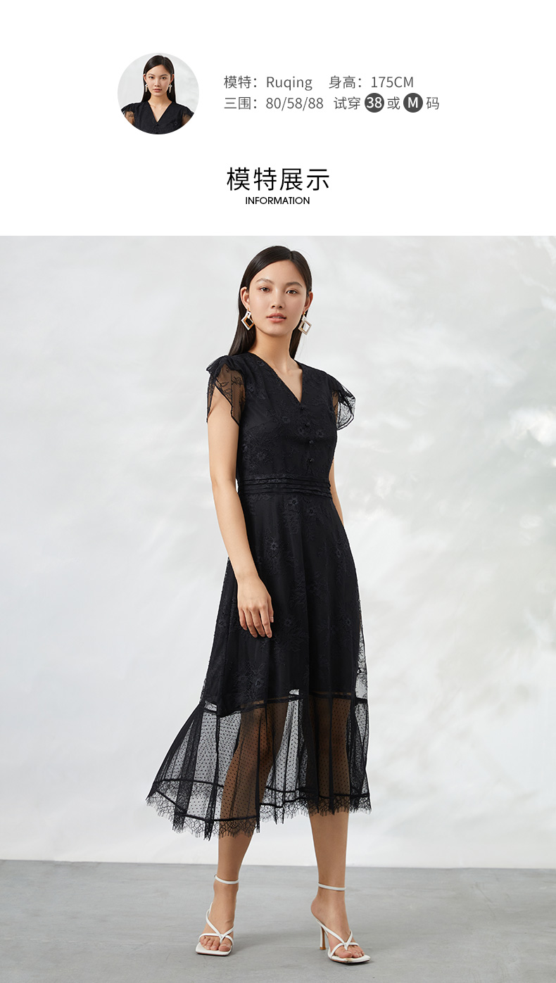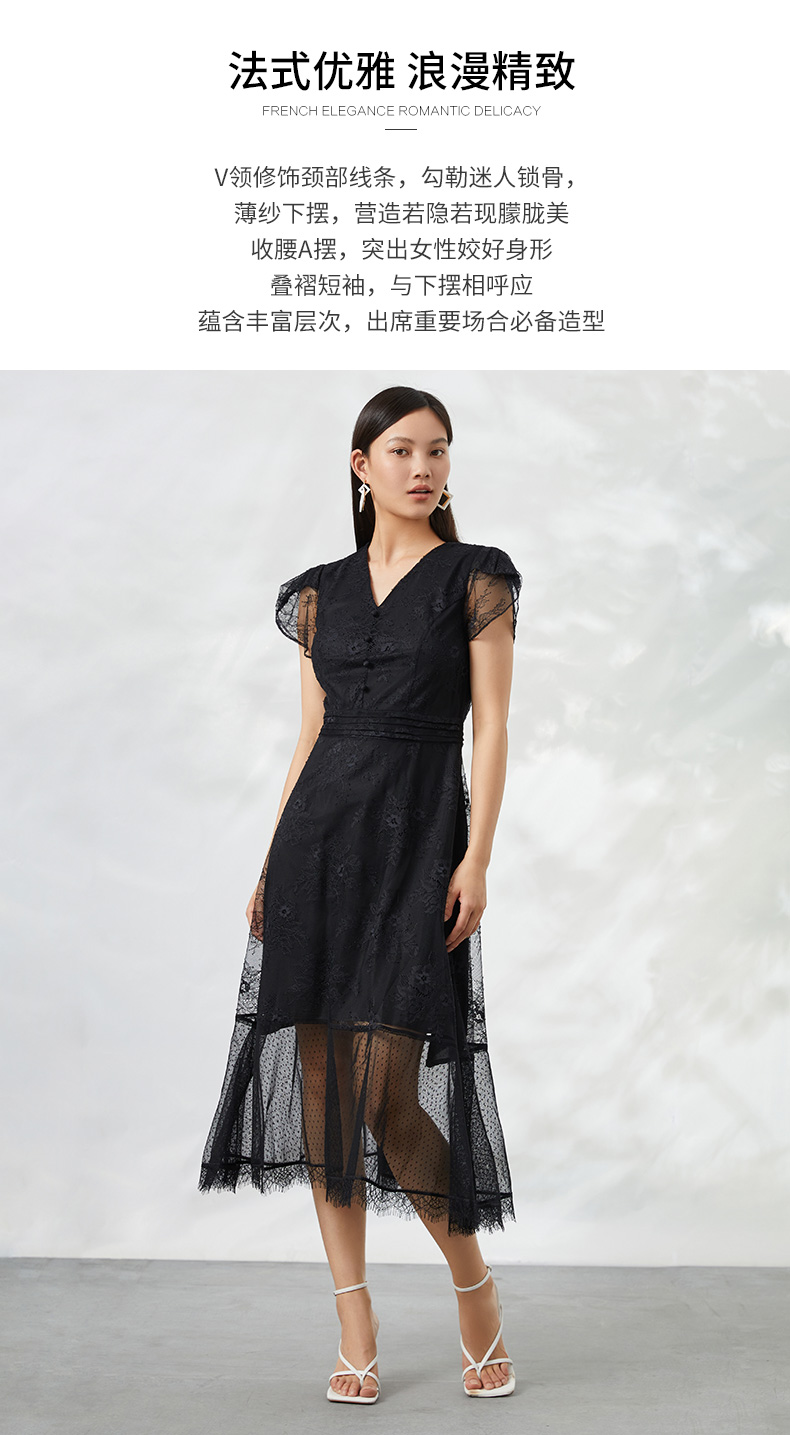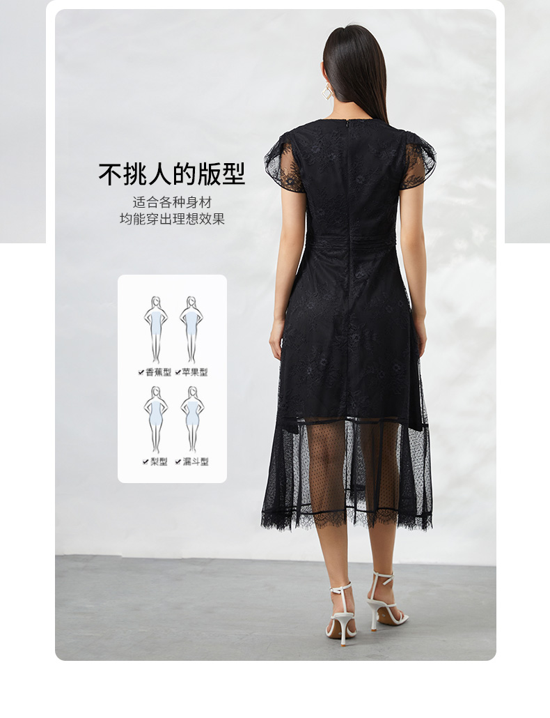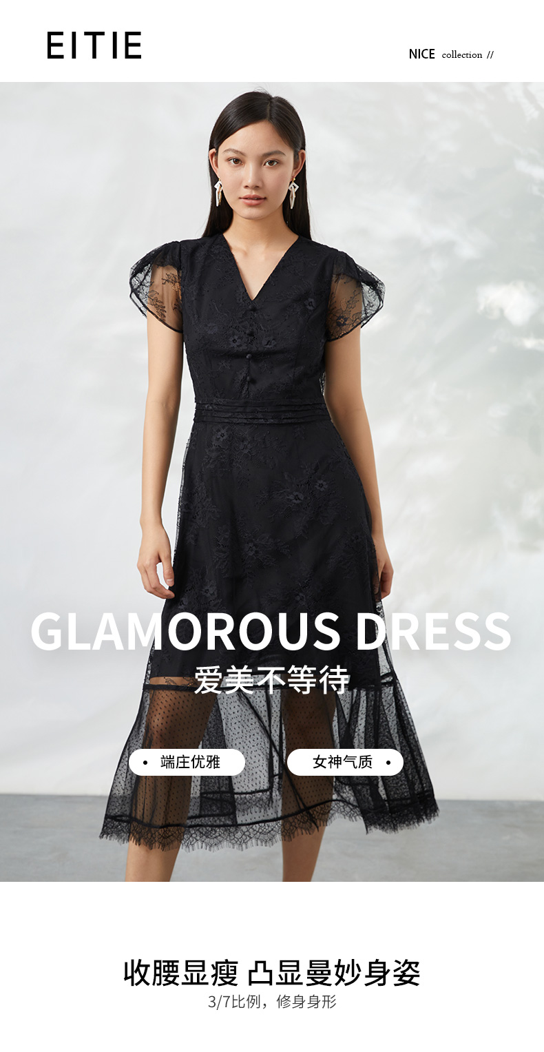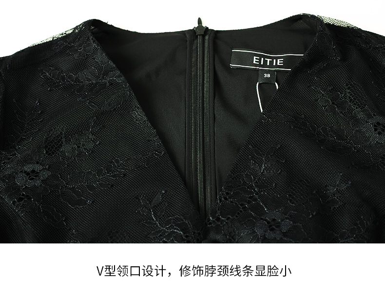 EITIE爱特爱夏季新款优雅修身显瘦蕾丝拼接连衣裙女6607336