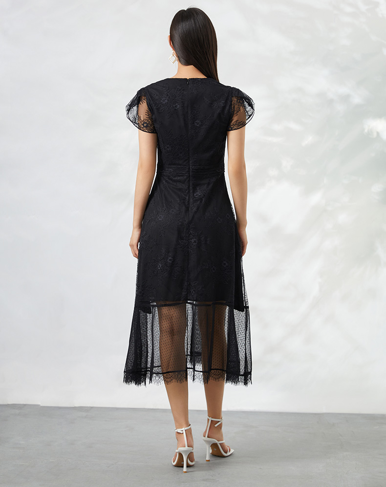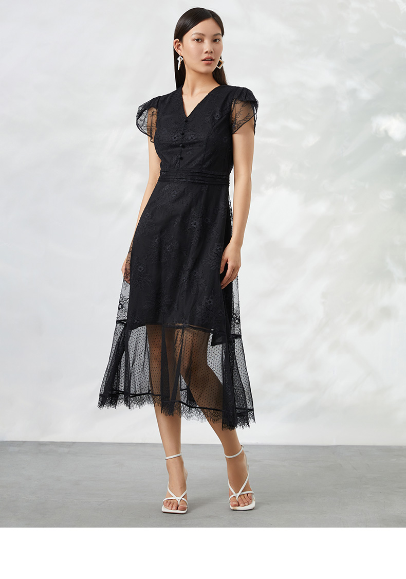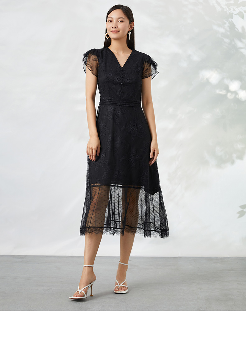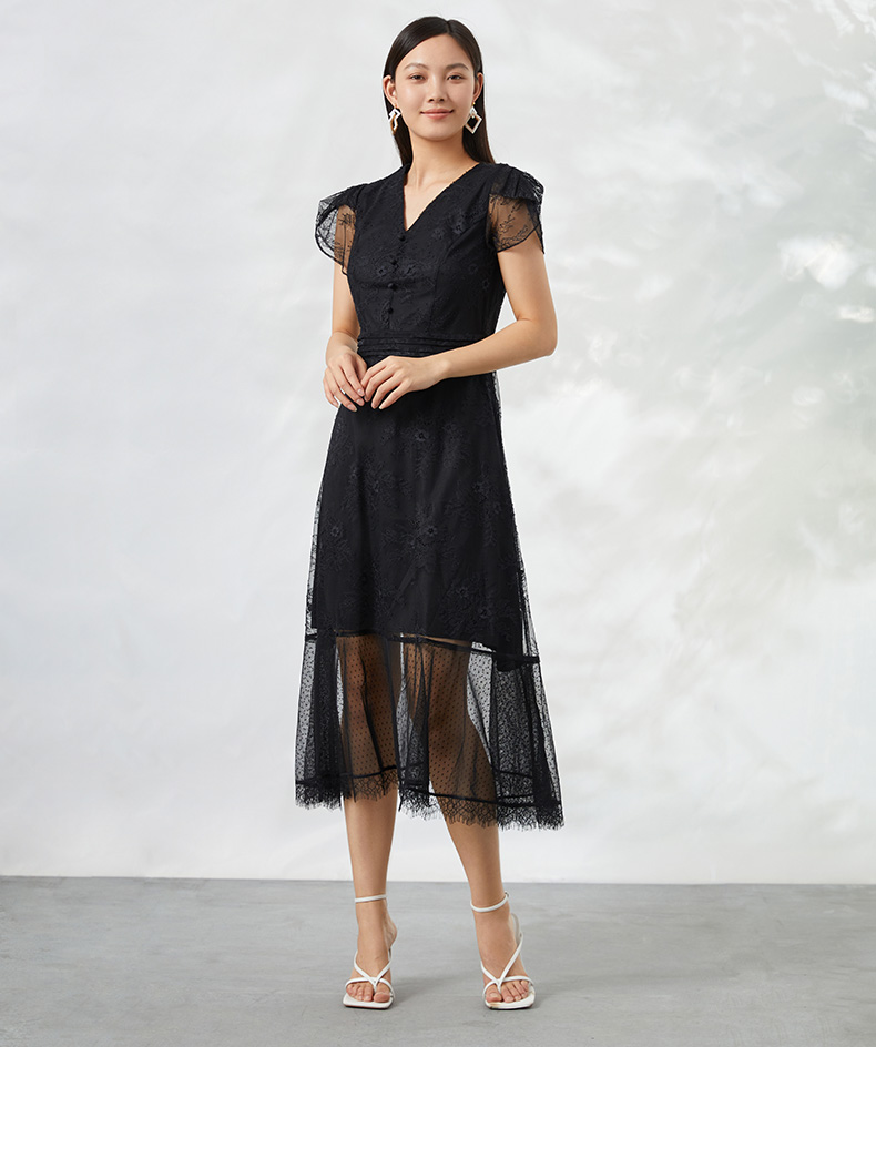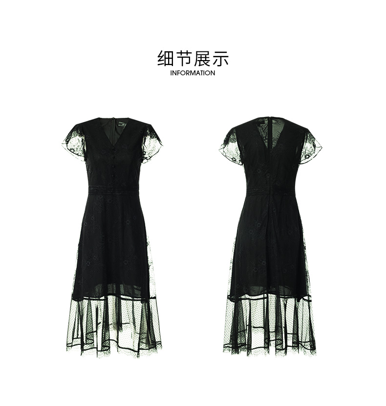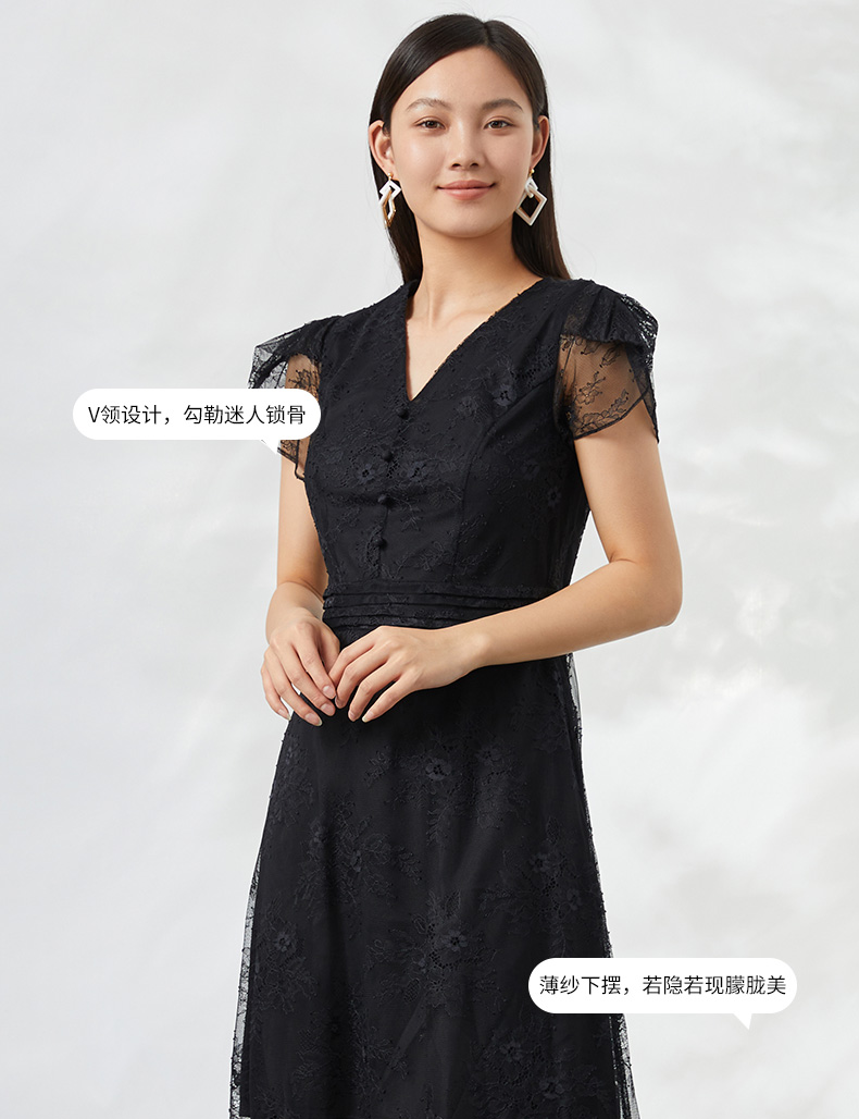 EITIE爱特爱夏季新款优雅修身显瘦蕾丝拼接连衣裙女6607336