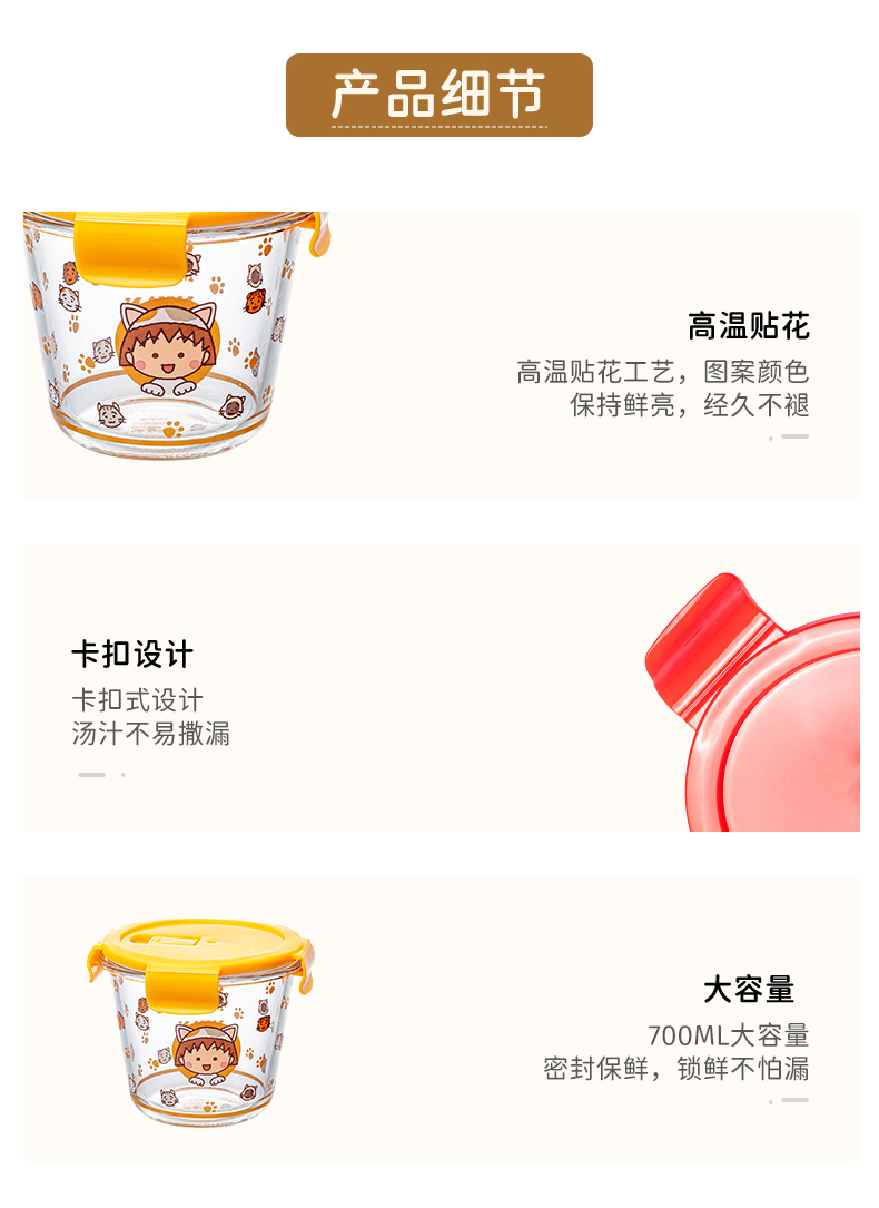 【摩登主妇&樱桃小丸子联名】水果便当盒微波炉密封保鲜玻璃汤碗
