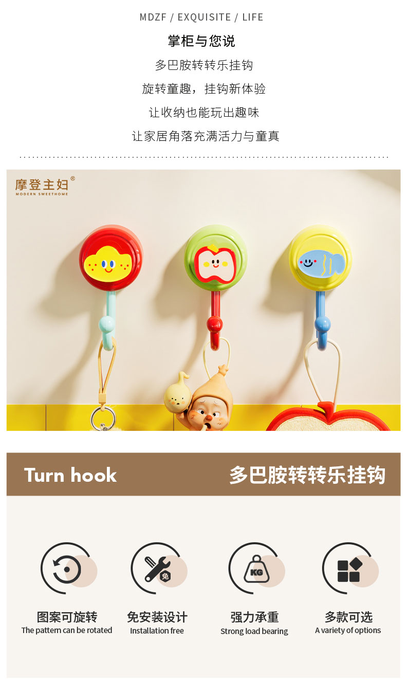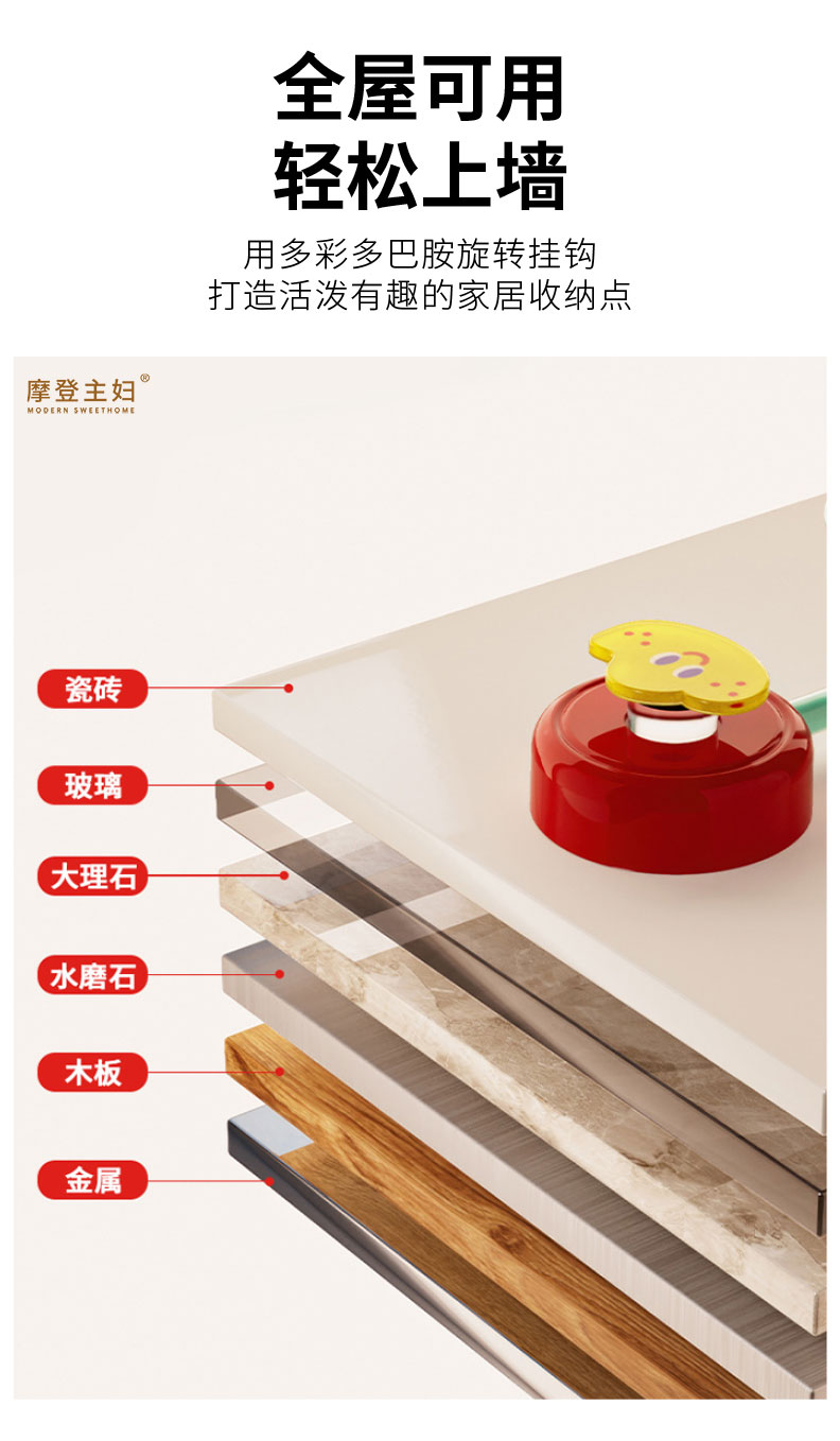 摩登主妇挂钩帽子衣服厨房浴室墙壁门后挂衣架免打孔强力承重粘钩