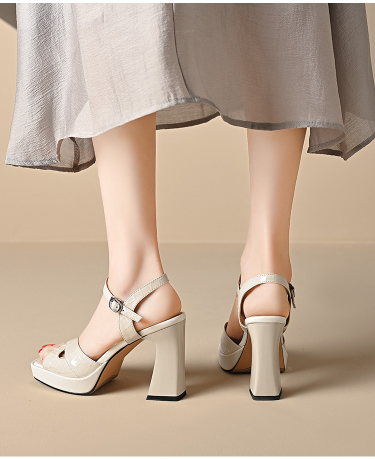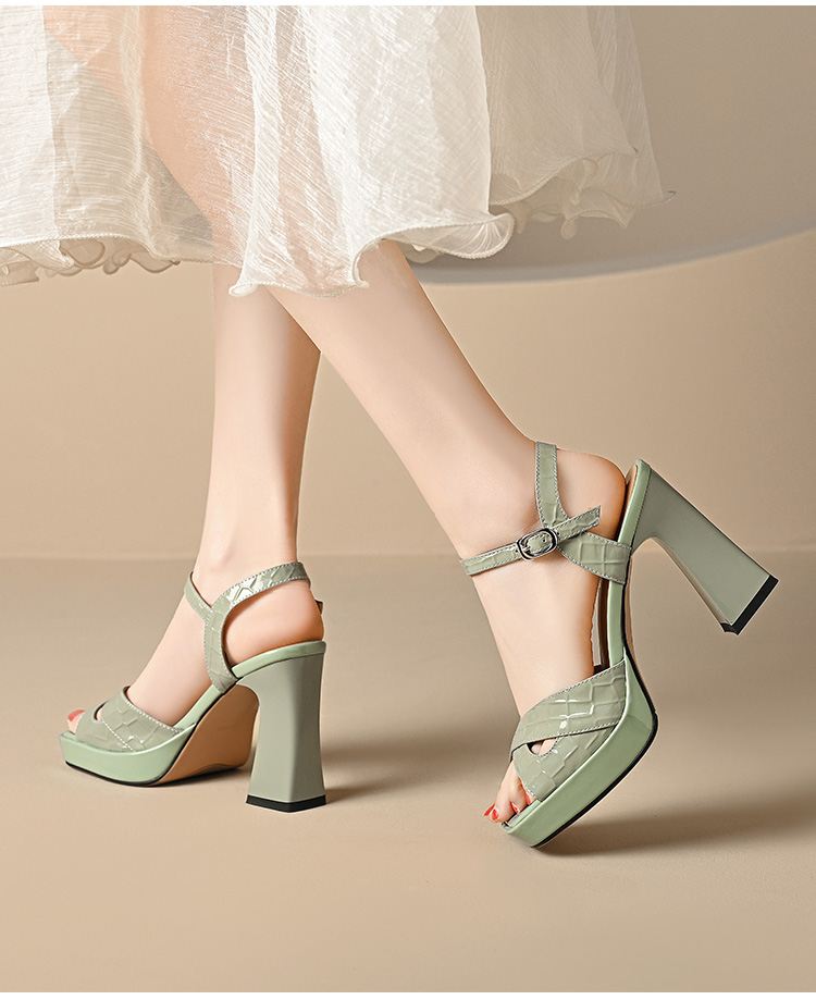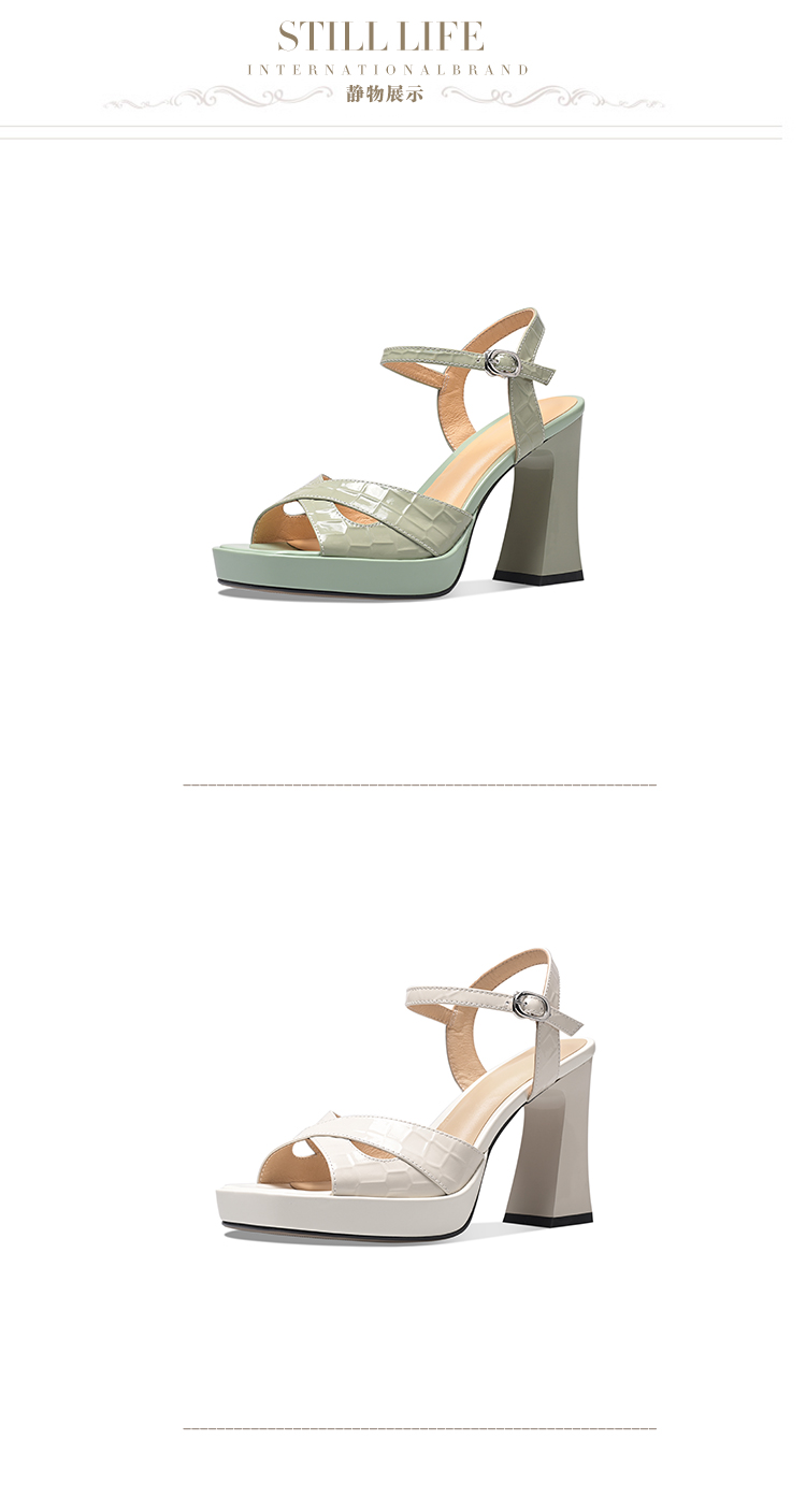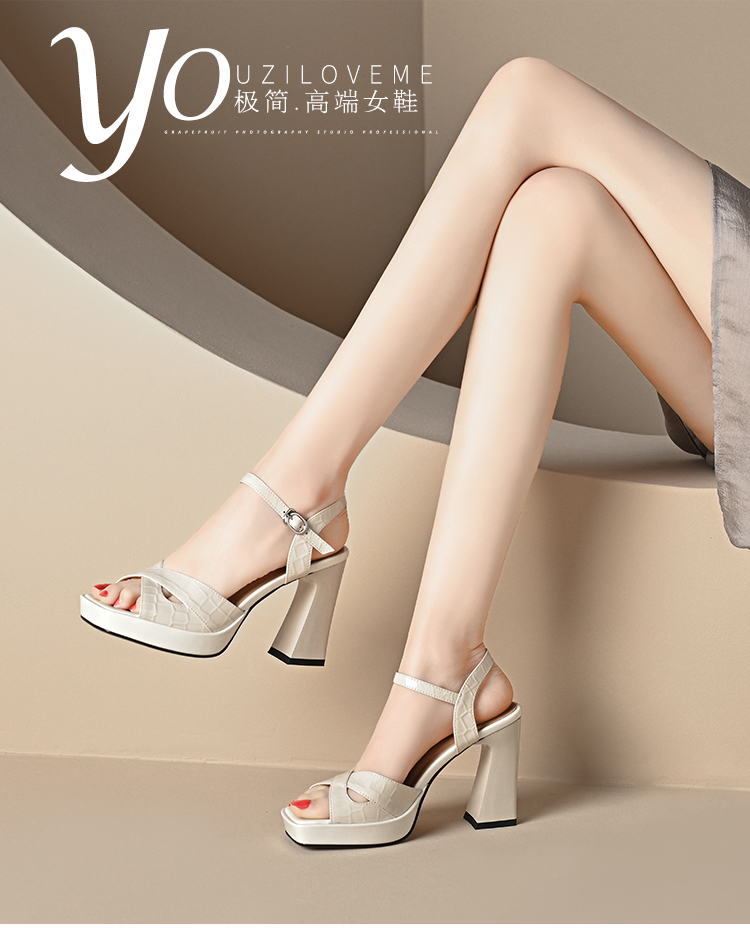 时尚粗跟防水台,头层牛皮高跟凉鞋SSL-S6007