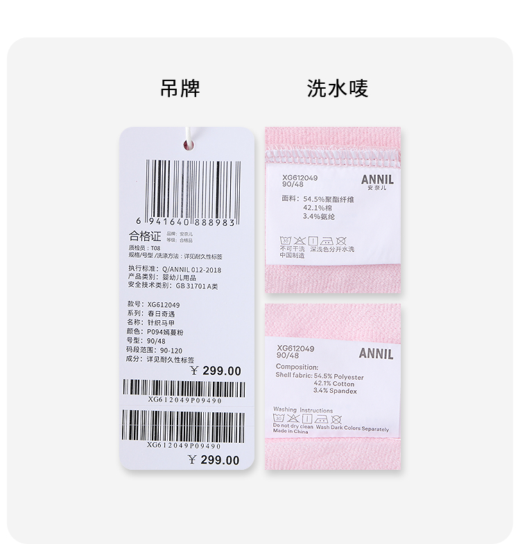 【实体店同款】女童针织马甲春季新款安奈儿童装XG612049