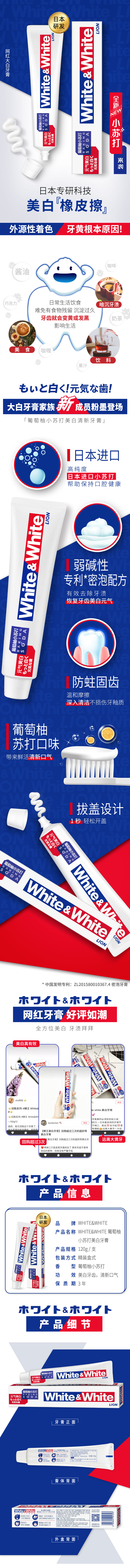 【秒杀】日本狮王LionWHITE&WHITE葡萄柚小苏打元气美白牙膏120g