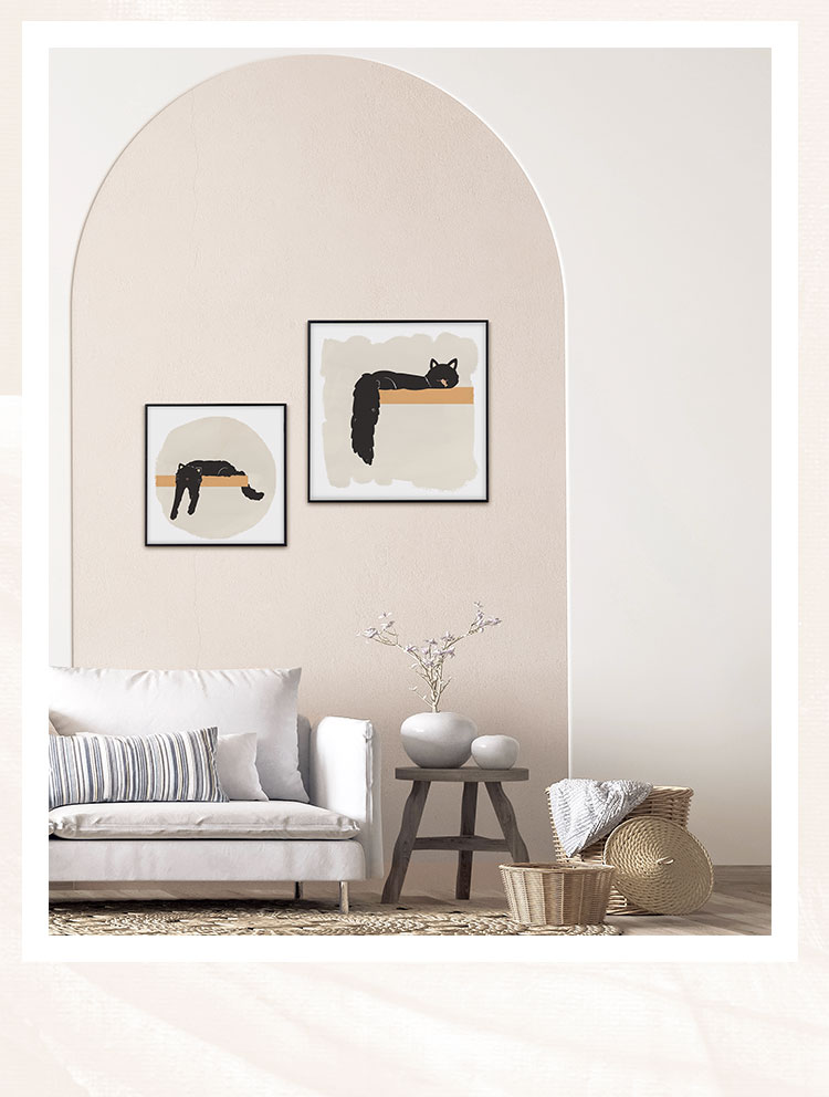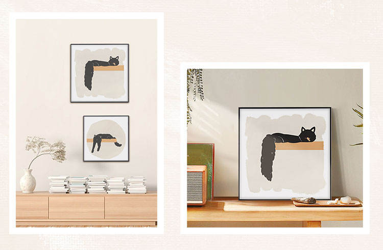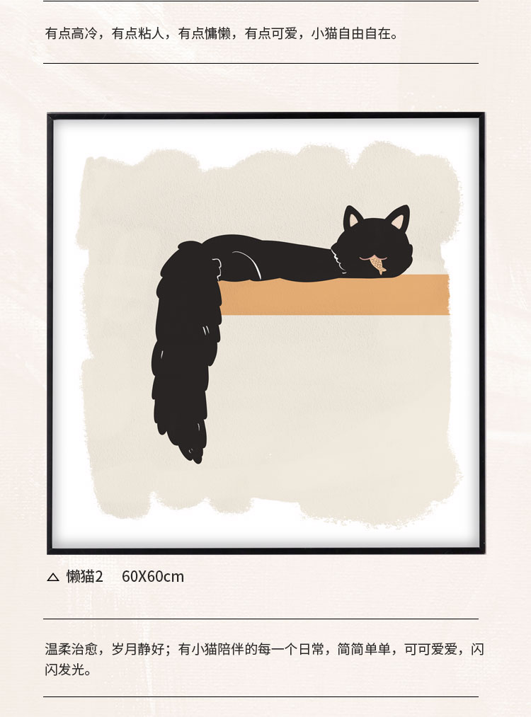 多喜爱布艺装饰 法式奶油风慵懒猫咪系列挂画cs
