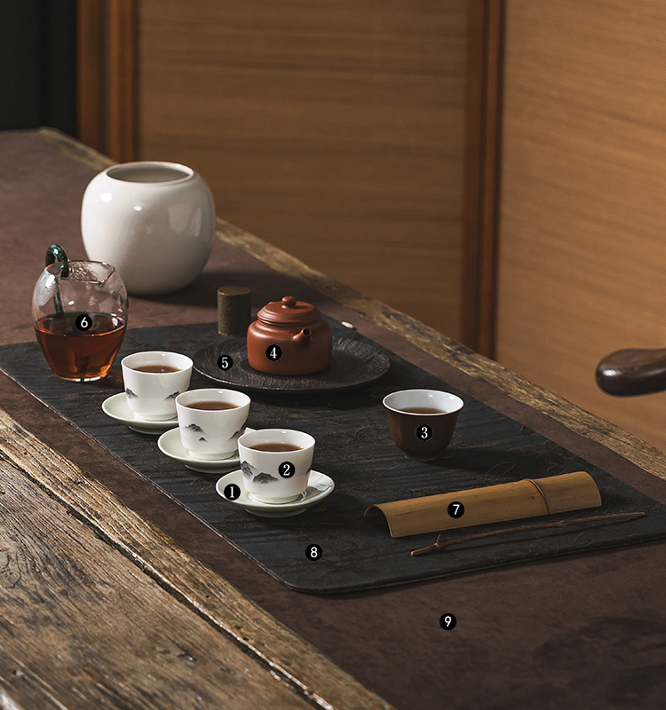 茶香记浅元手作半刀泥刻花牡丹小杯托杯垫雅致复古茶道零配茶具