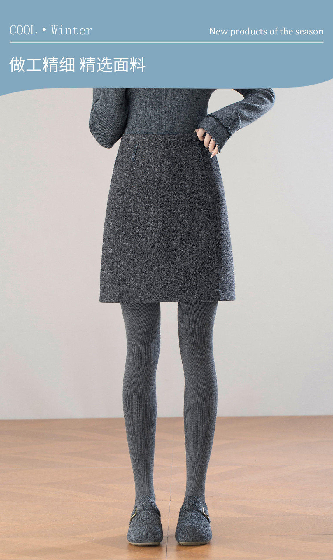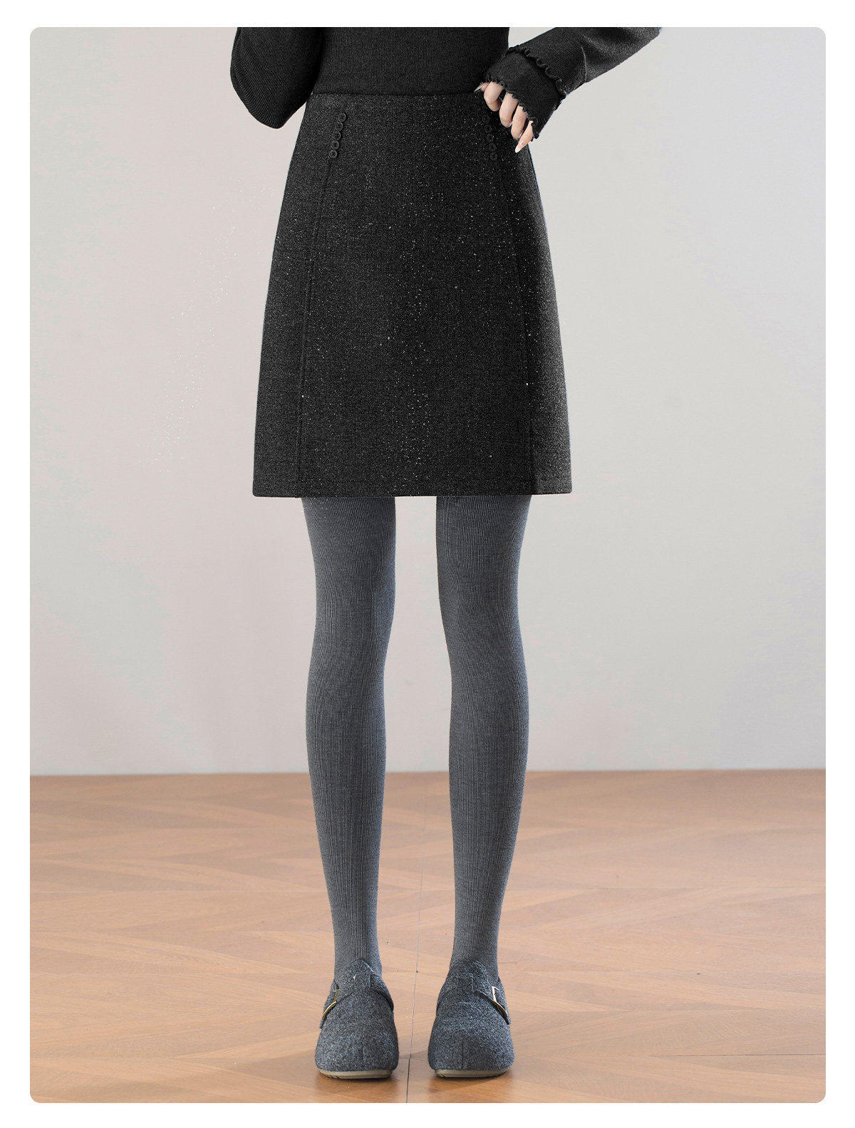 「自」全新升级【铂金会员146/天猫199/差价53】(13144)洛诗琳高腰显瘦毛呢半身裙2026新款简约气质厚款细闪A字裙
