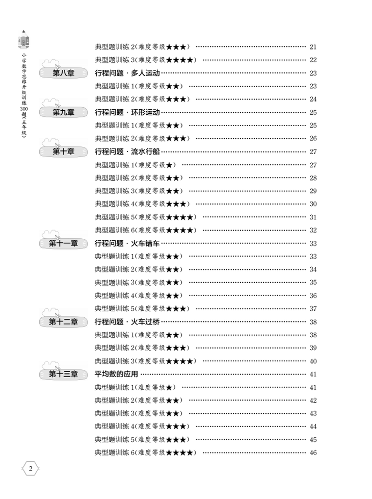 《小学数学思维升级训练300题(五年级)》采用分章专题的编排,以例题+练习的形式,将所有常见小学数学思维题分门别类编入24章。全书不仅题型全面、场景丰富,且编排合理、难度由浅入深,避免了很多教辅书出现头重脚轻、编排混乱的问题,是中等以上学生学习数学思维题的好帮手。