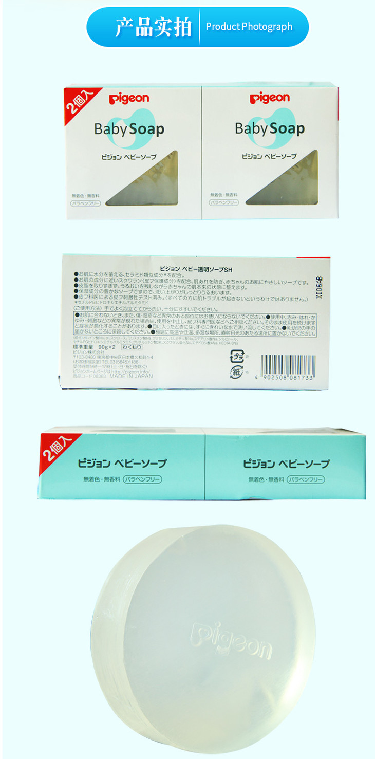 日本贝亲香皂婴儿童透明香皂宝宝洗脸洗手皂洗澡沐浴肥皂90g*2块