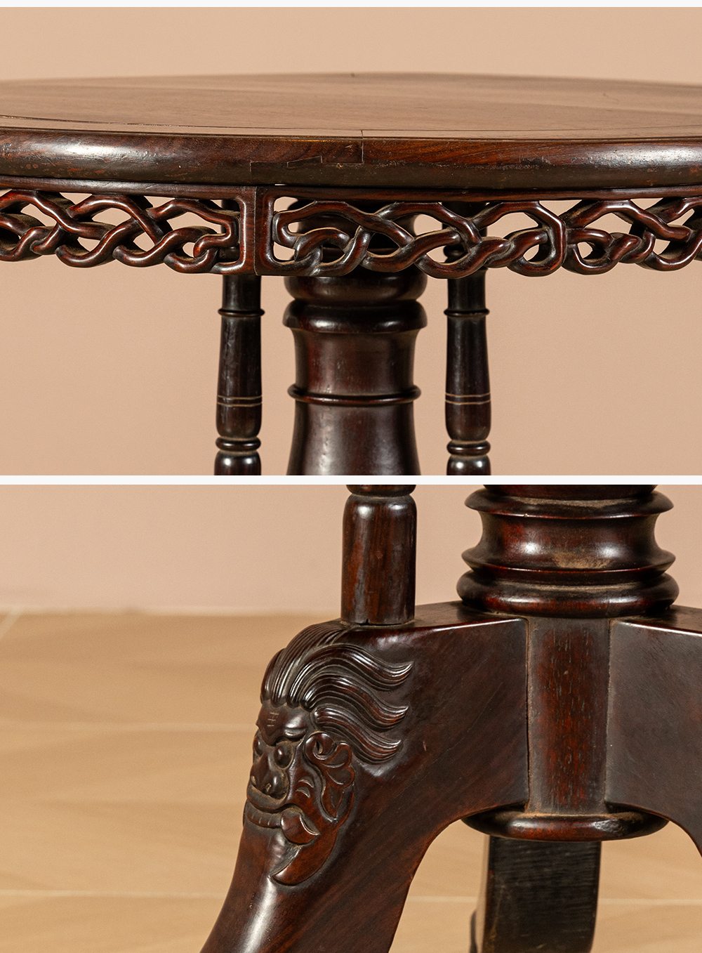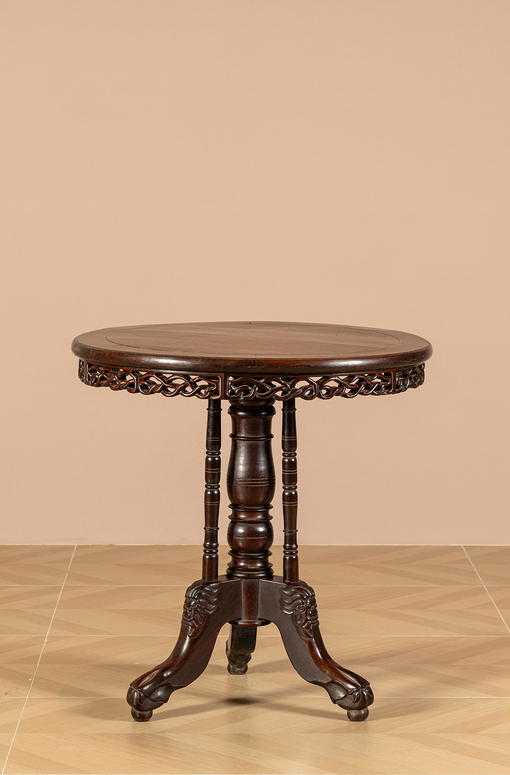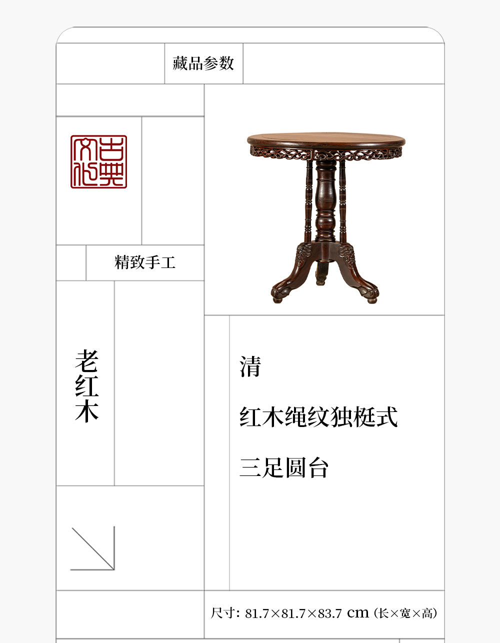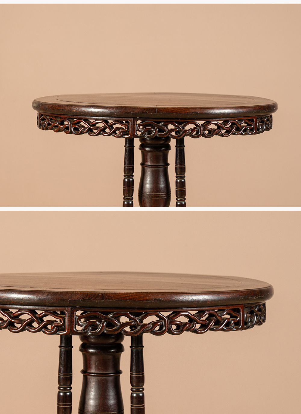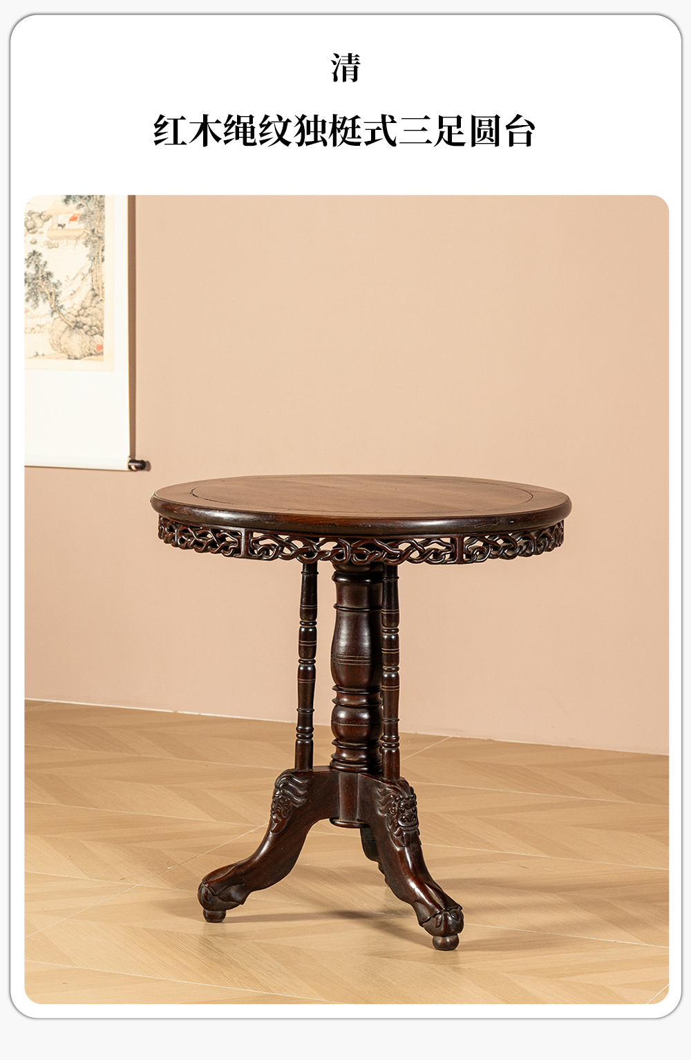清 红木绳纹独梃式三足圆台