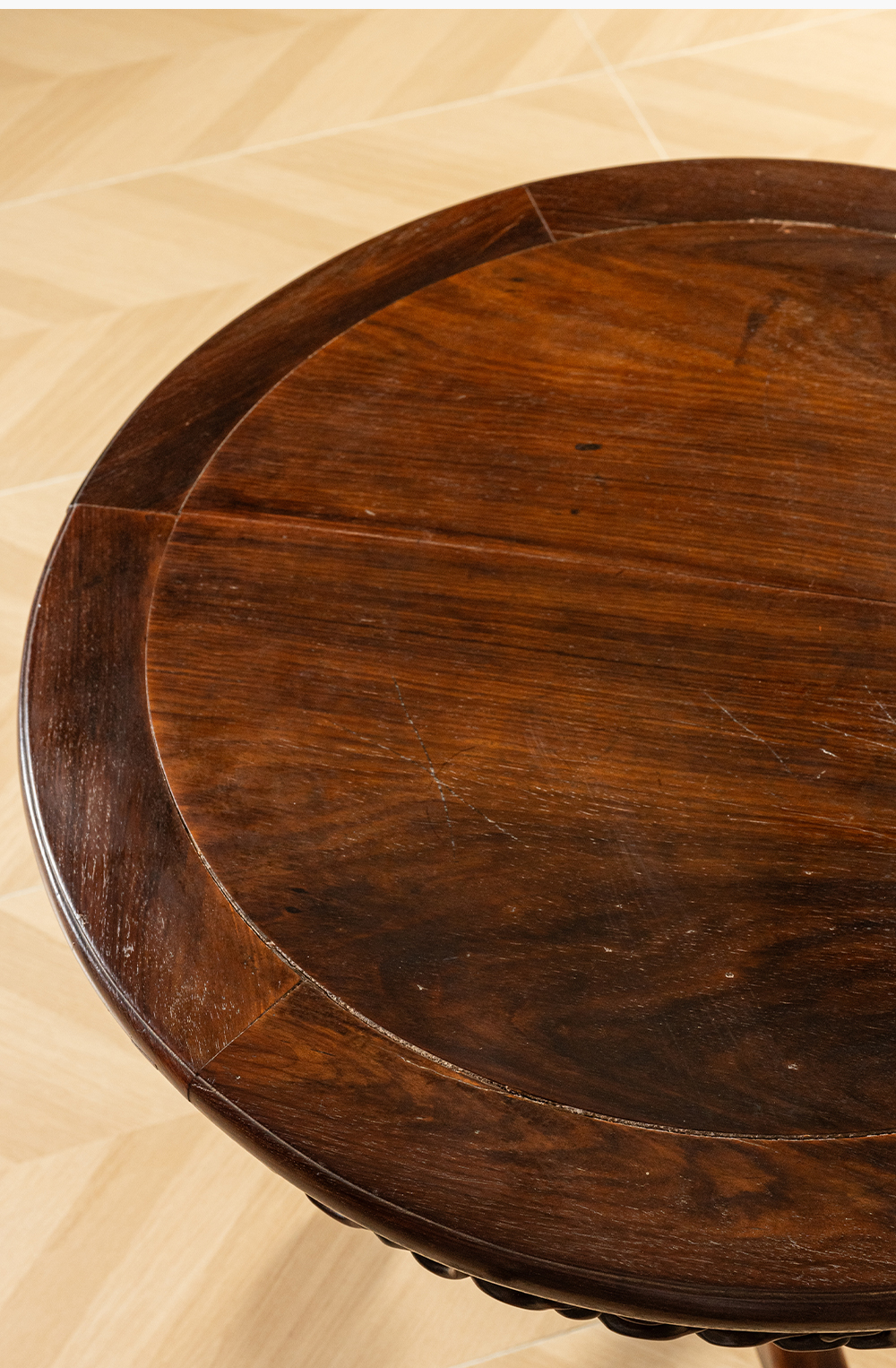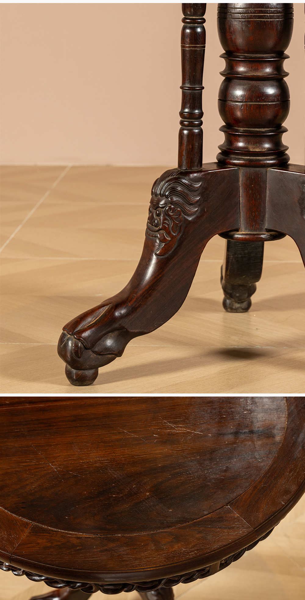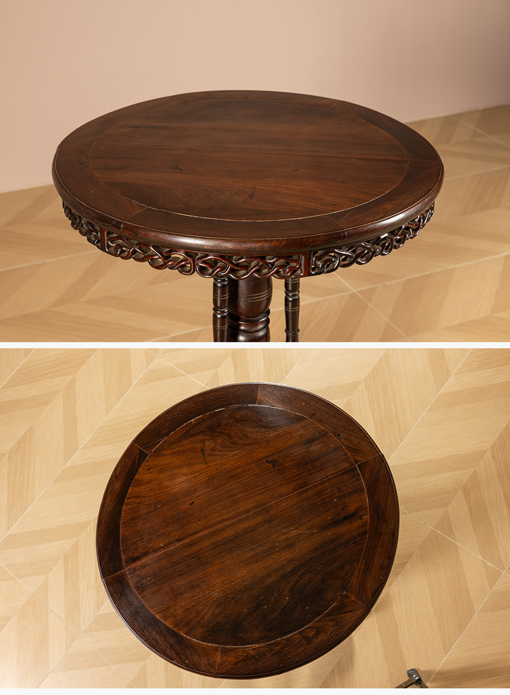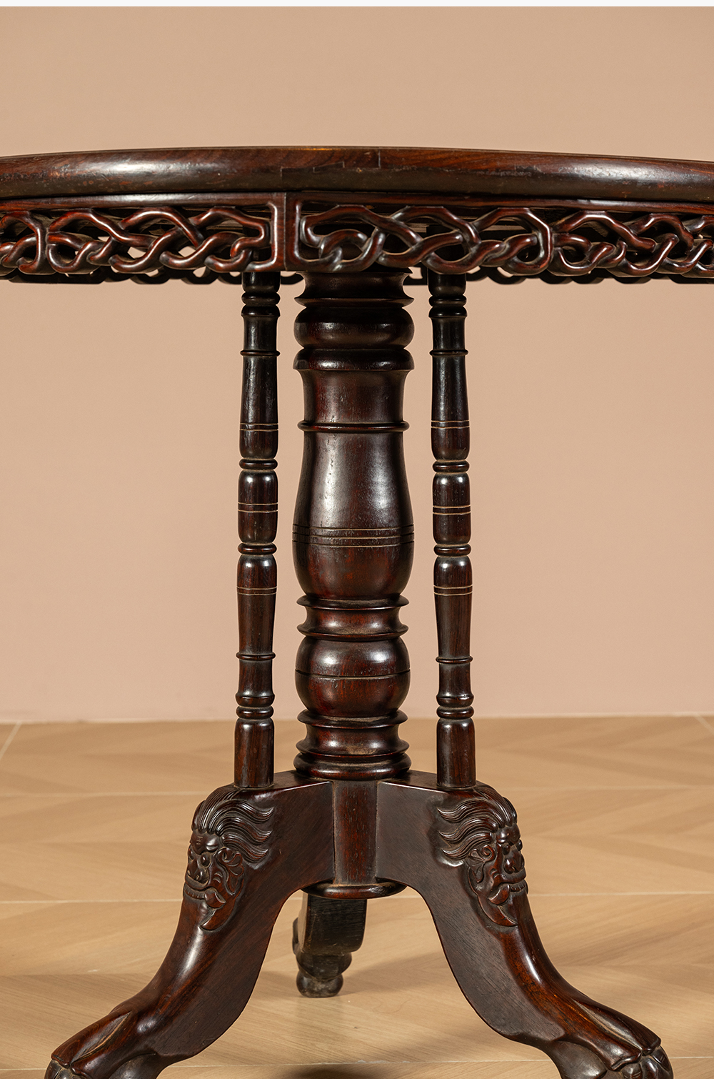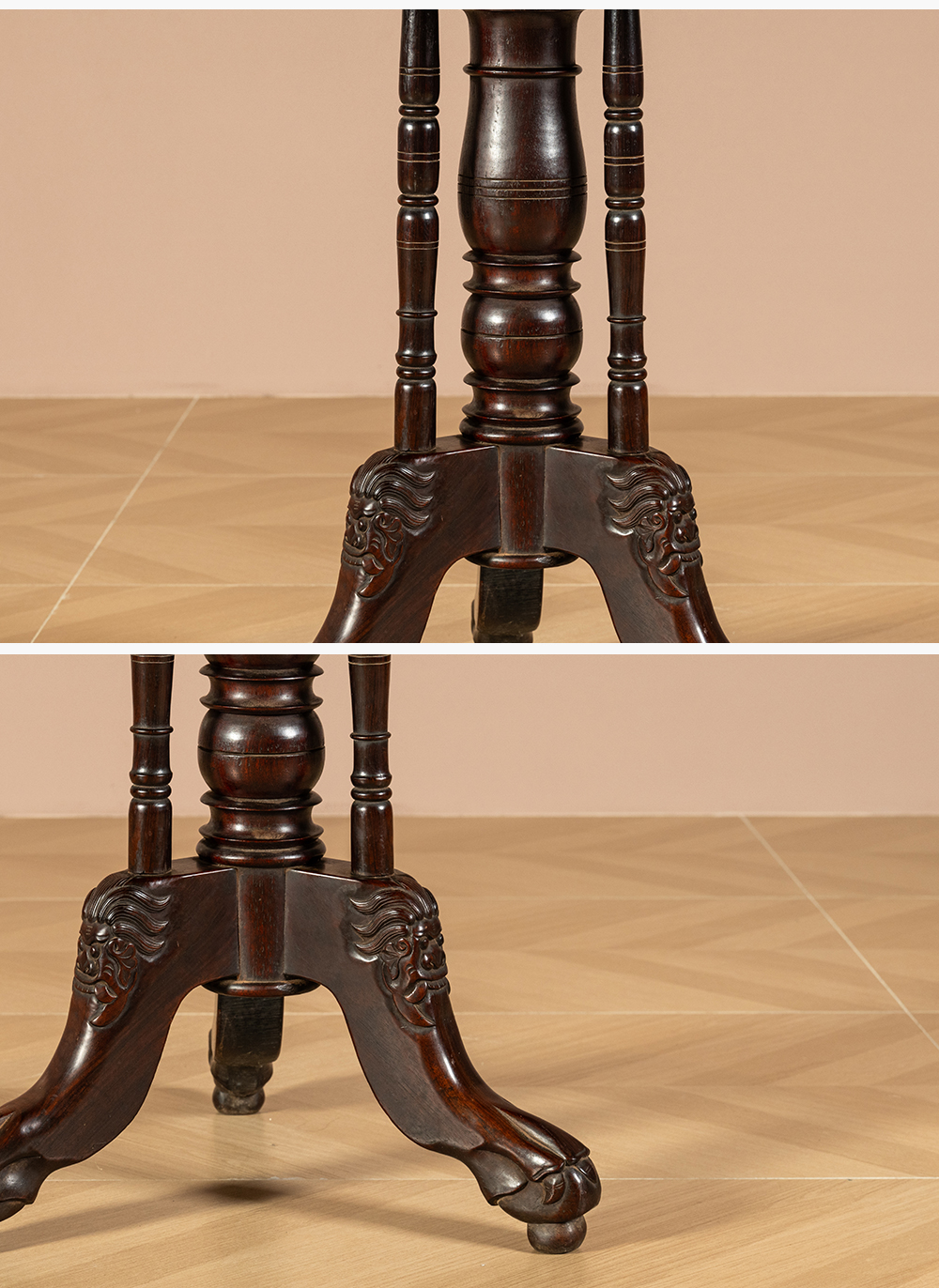 清 红木绳纹独梃式三足圆台