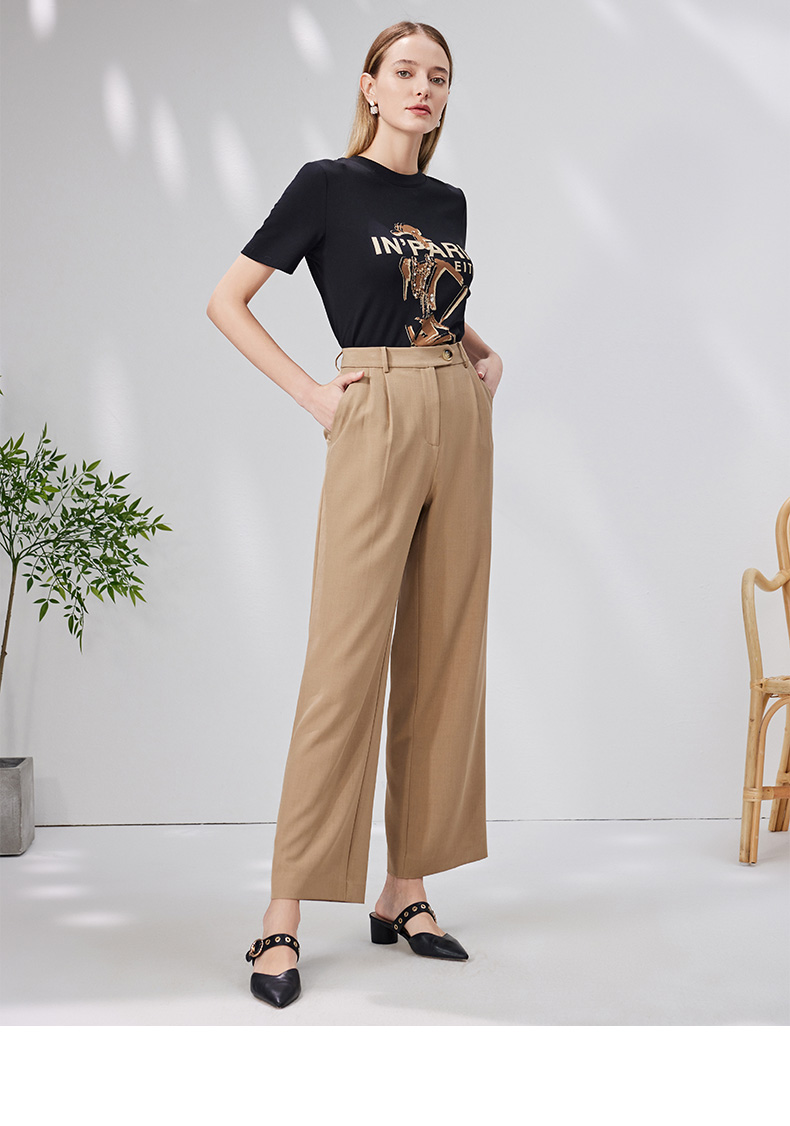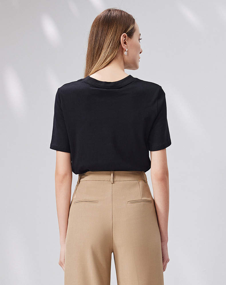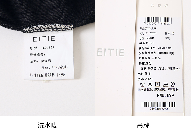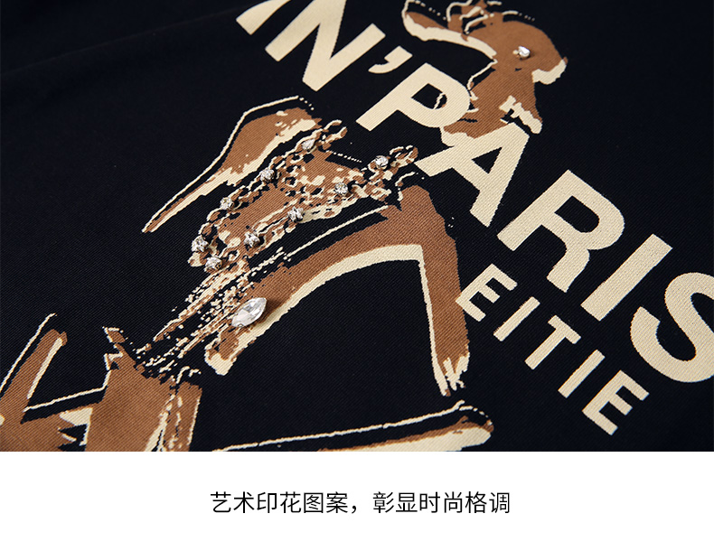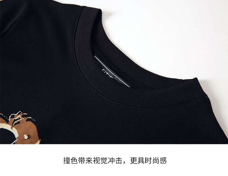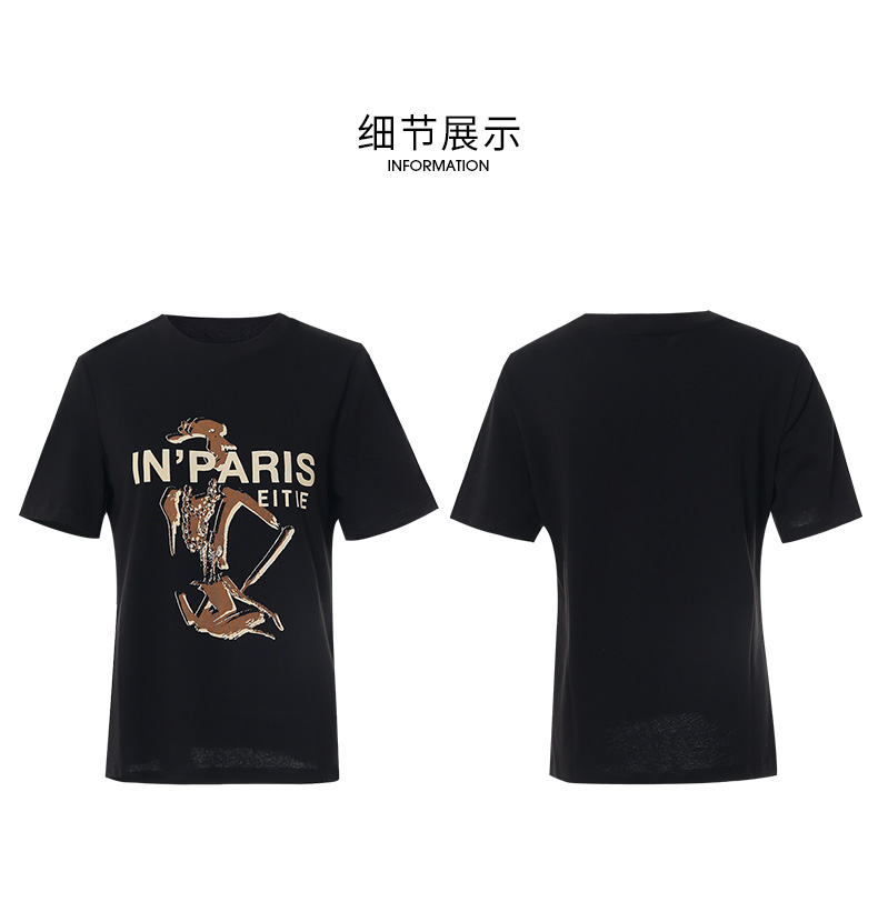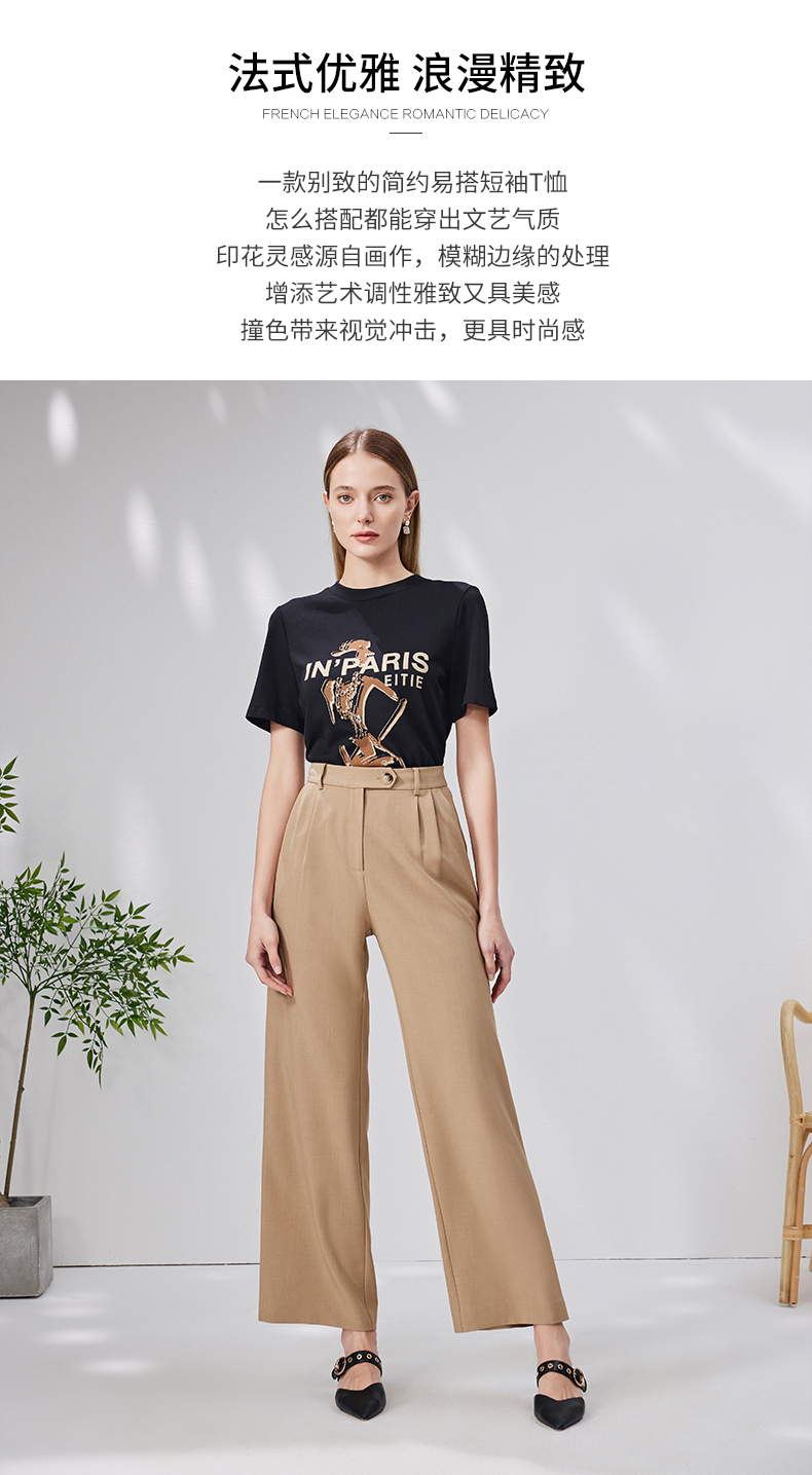 EITIE爱特爱新款100%棉时尚百搭打底舒适弹力圆领印花T恤女7102801