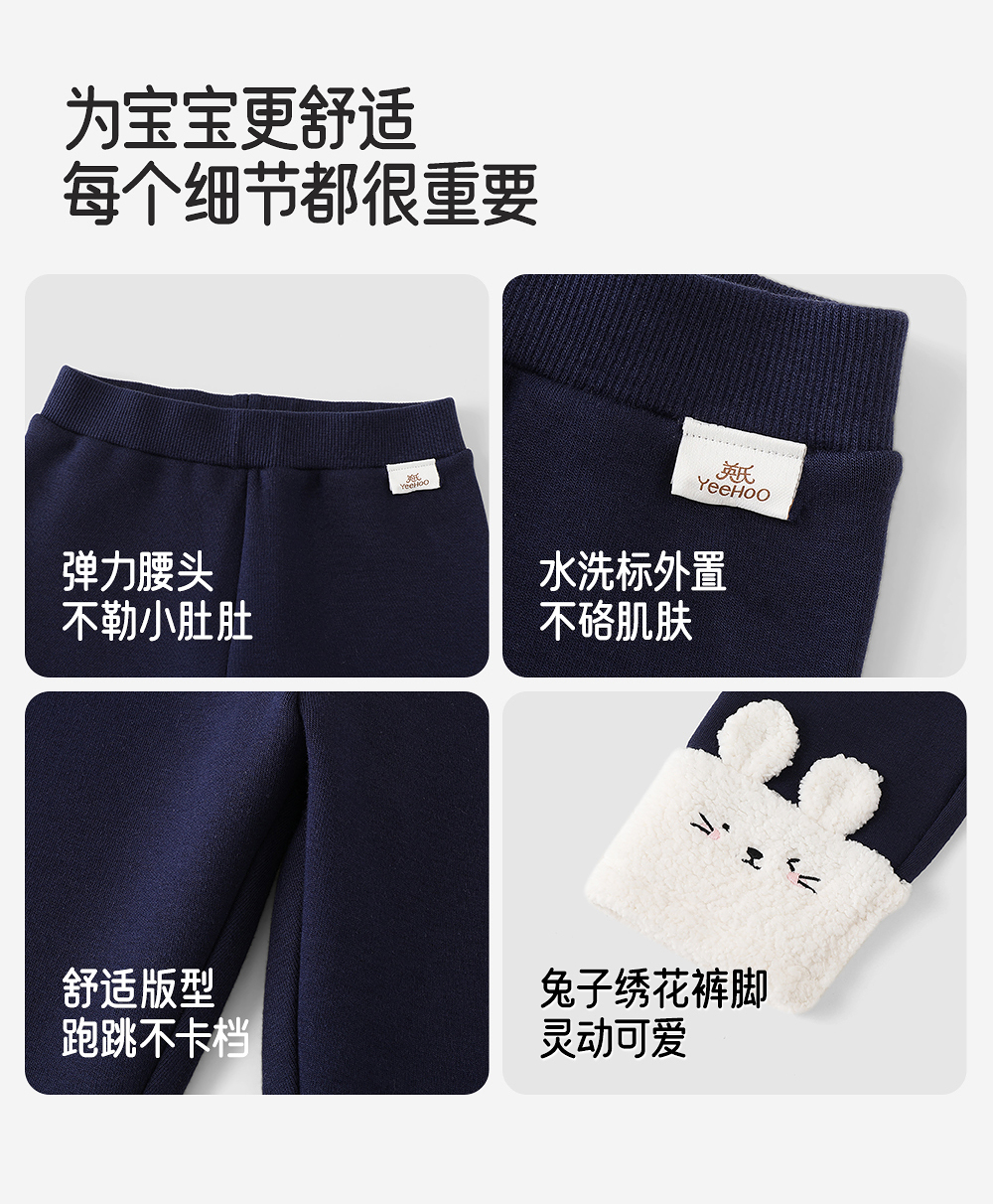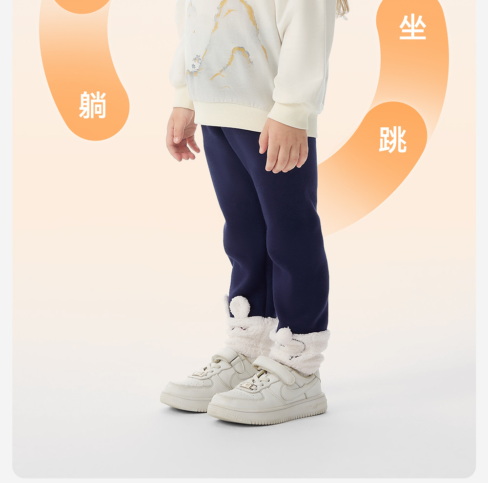 英氏儿童裤子秋冬加绒保暖户外女童打底裤新款长裤百搭女宝宝裤子