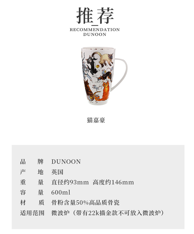 英国丹侬Dunoon骨瓷水杯 Henley杯型 猫嘉豪