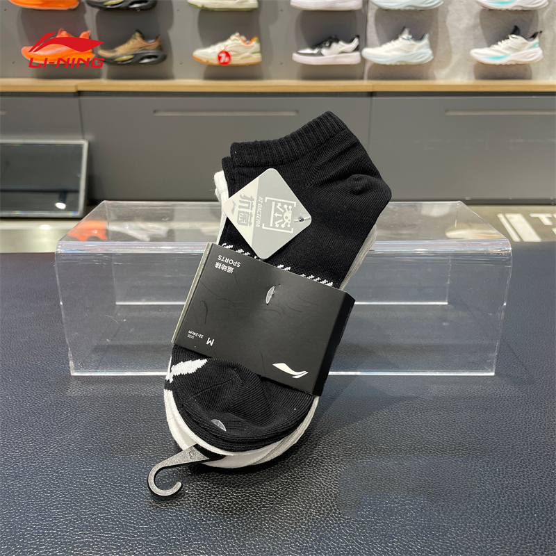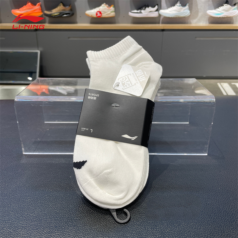李宁2025夏季新品男女同款吸汗舒适休闲低跟袜三双装AWTV043