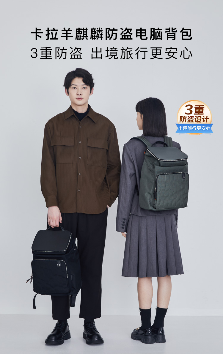 【通勤防盗】卡拉羊麒麟防盗男士通勤15.6英寸电脑双肩包CX5500(TX)