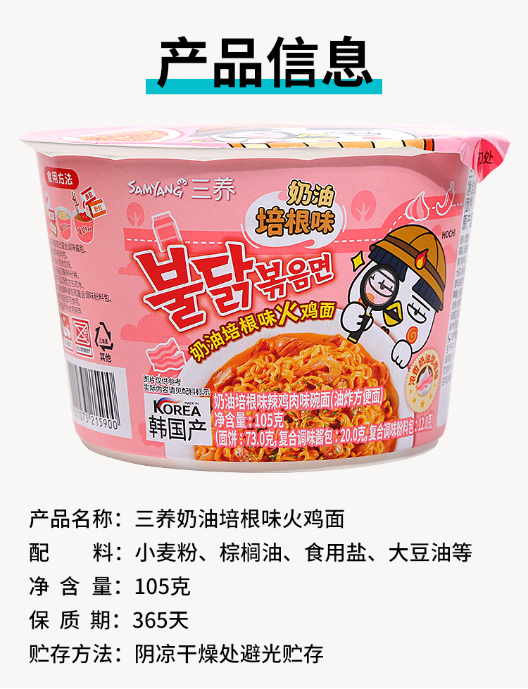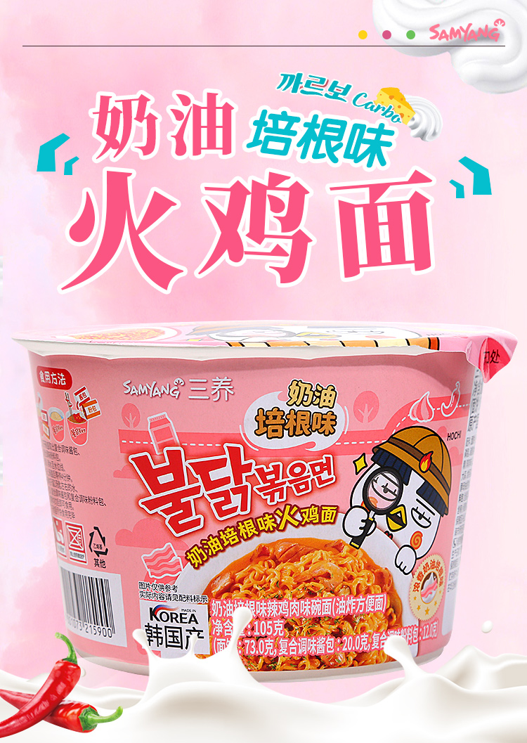 삼양불닭볶음면큰사발면三养奶油培根味火鸡面