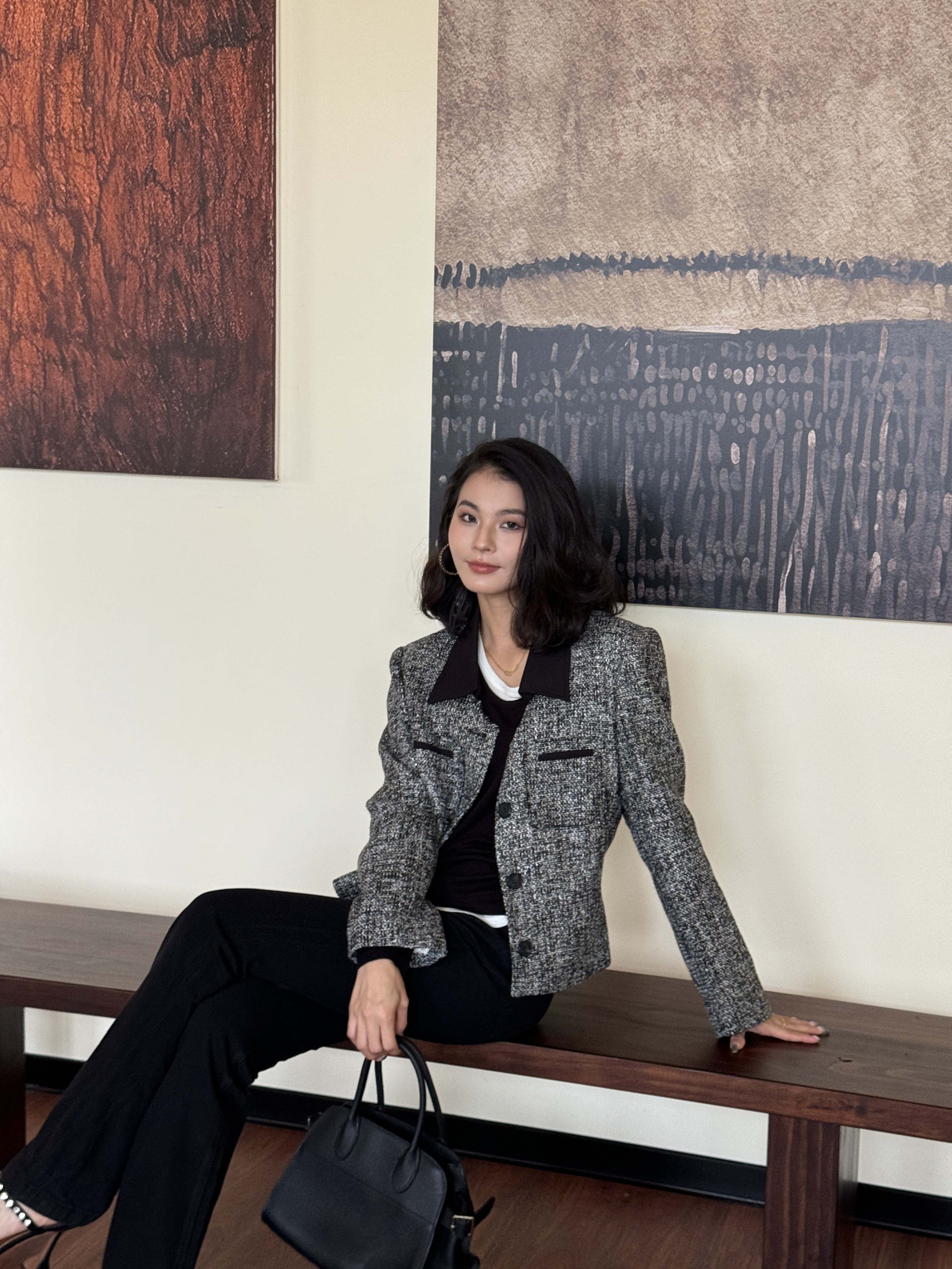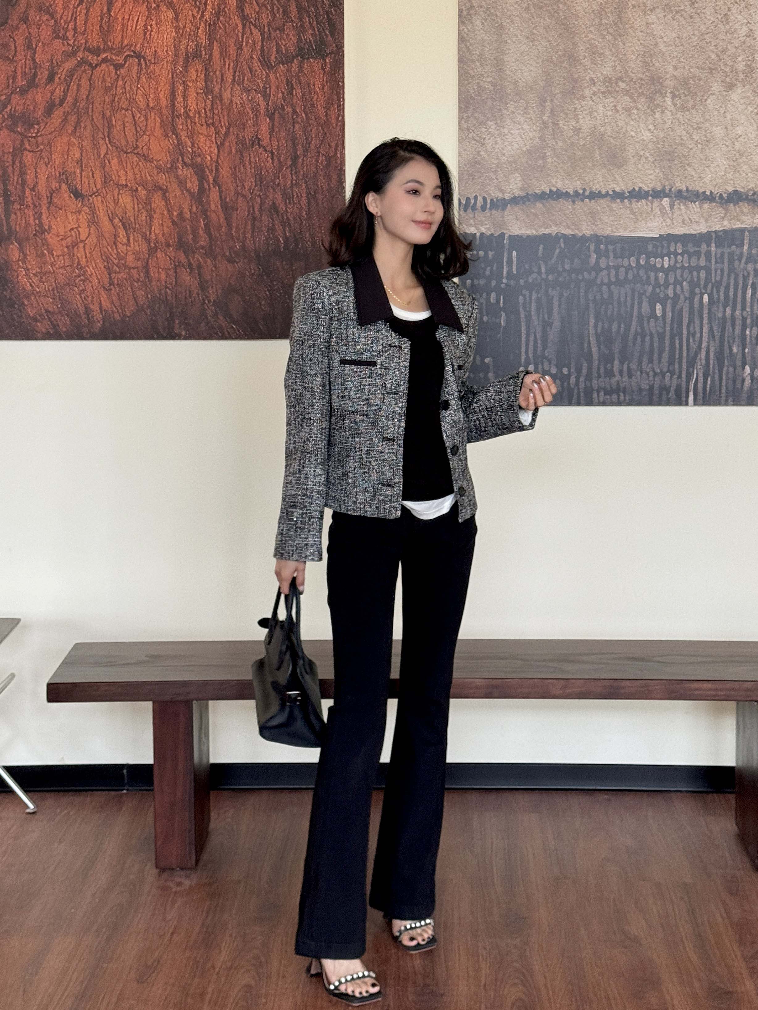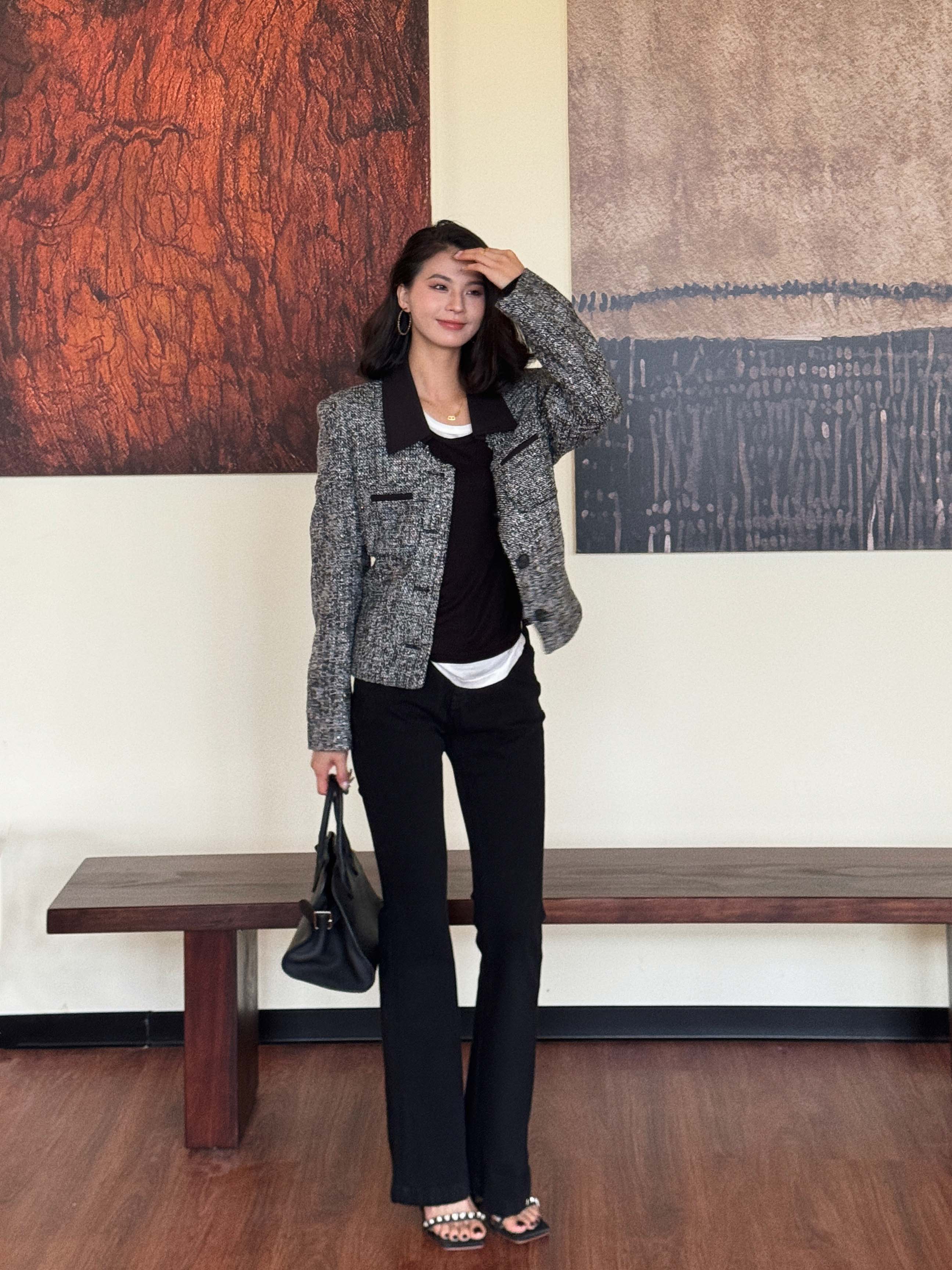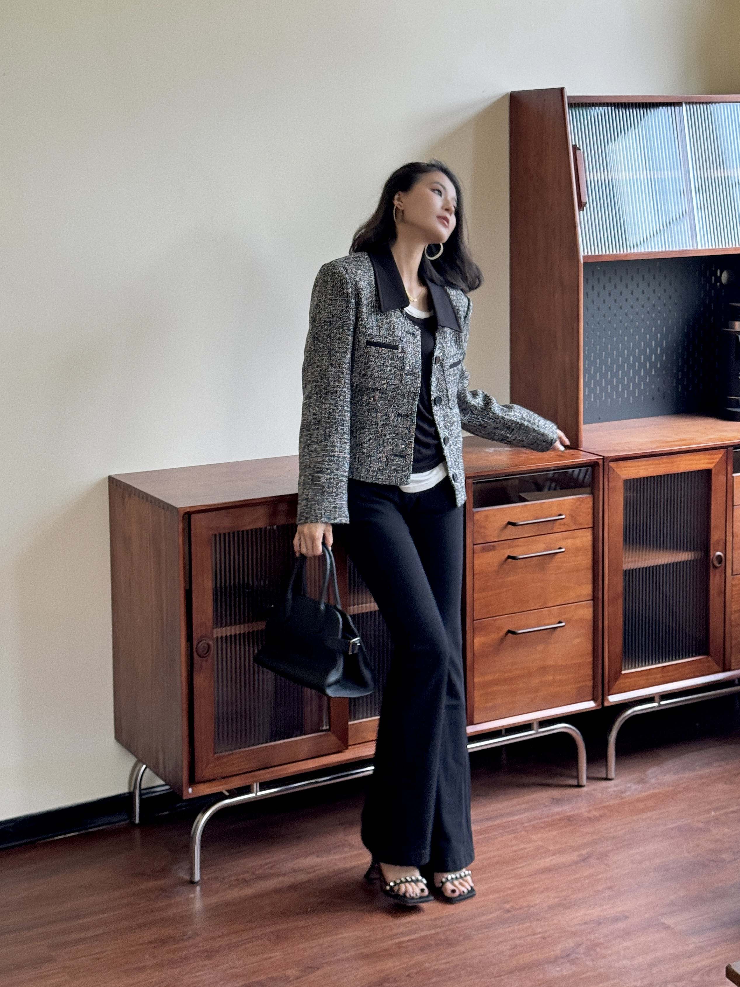 版型是合身短款,搭配紧身长裤,大长腿既视感!