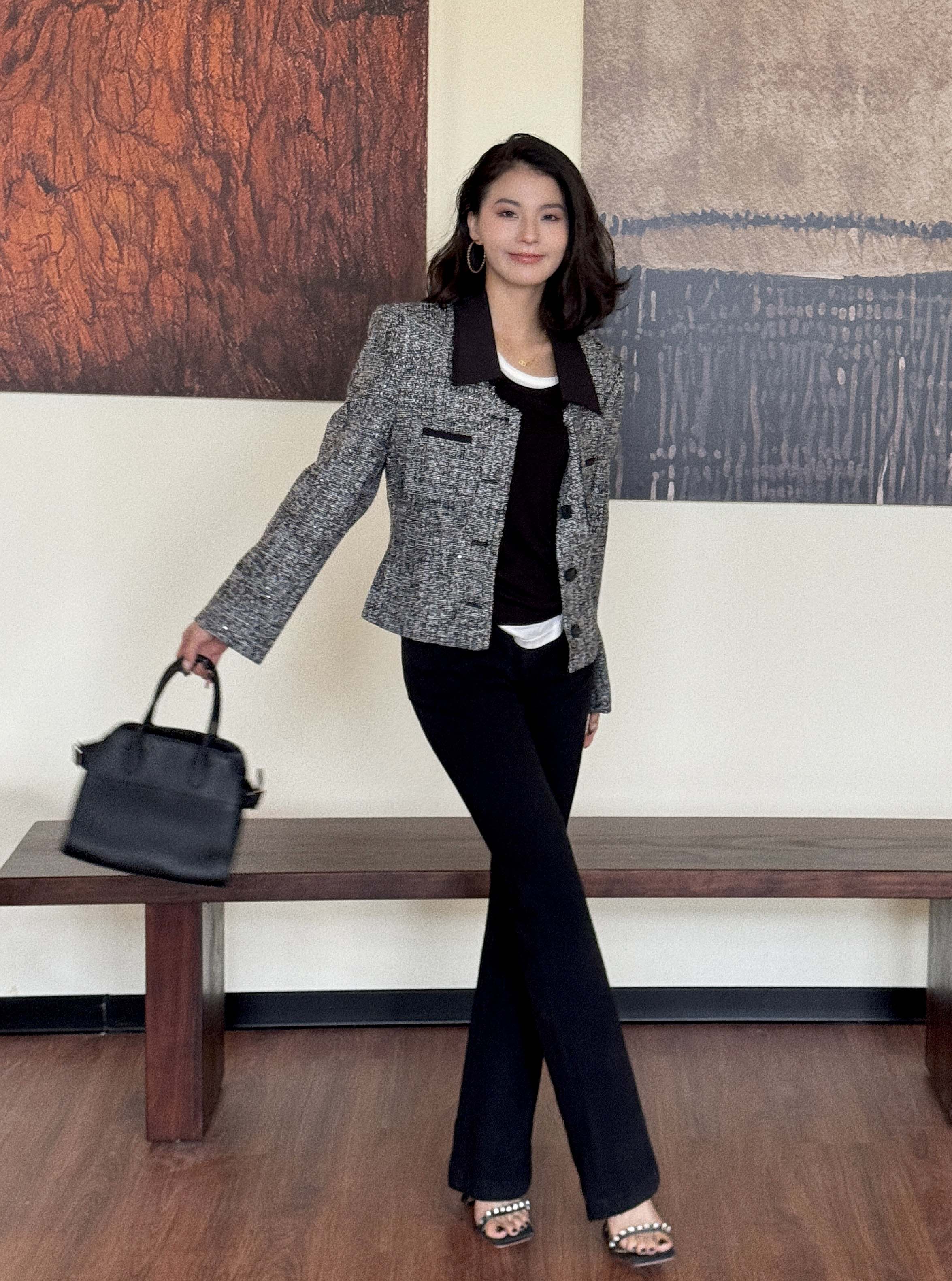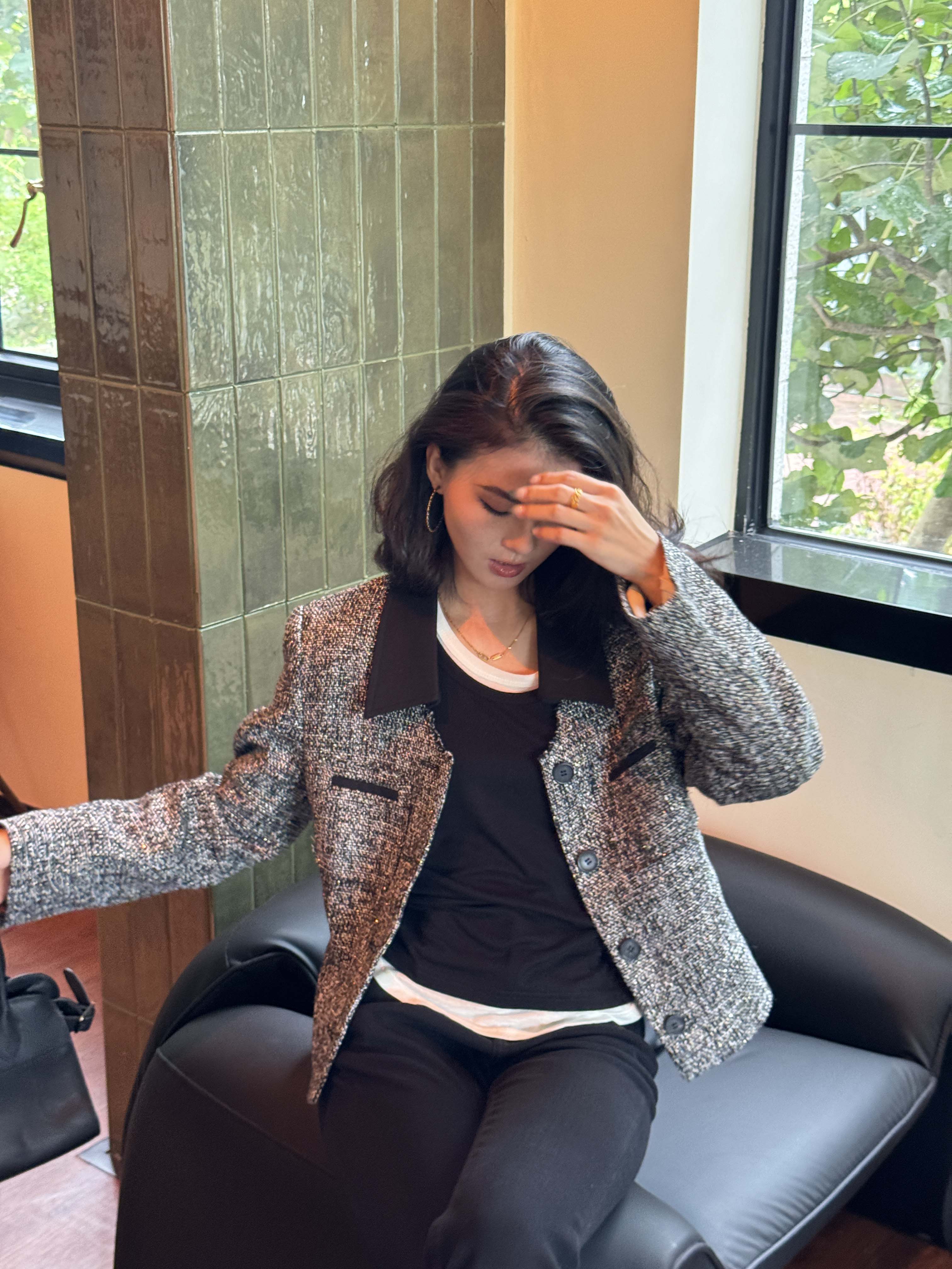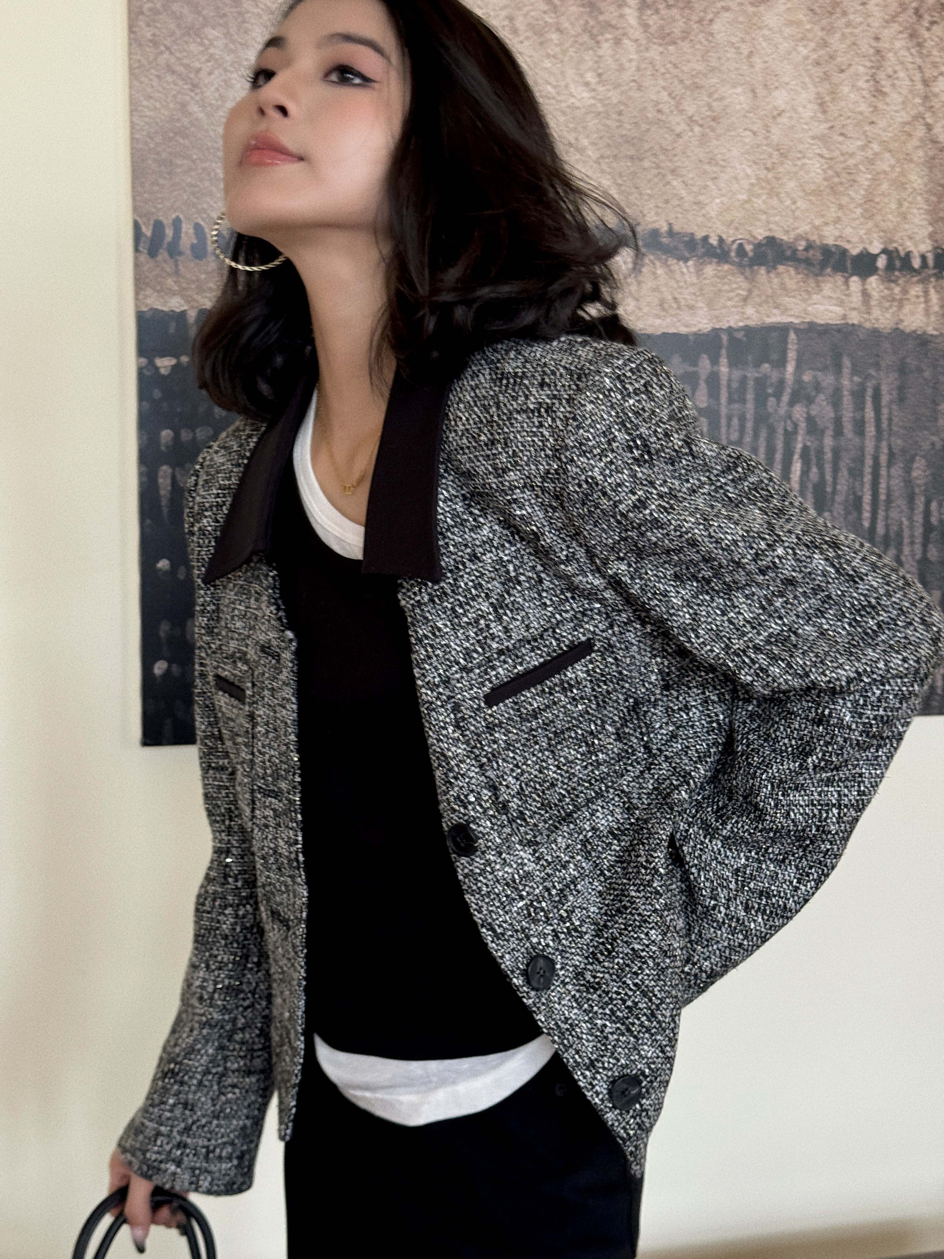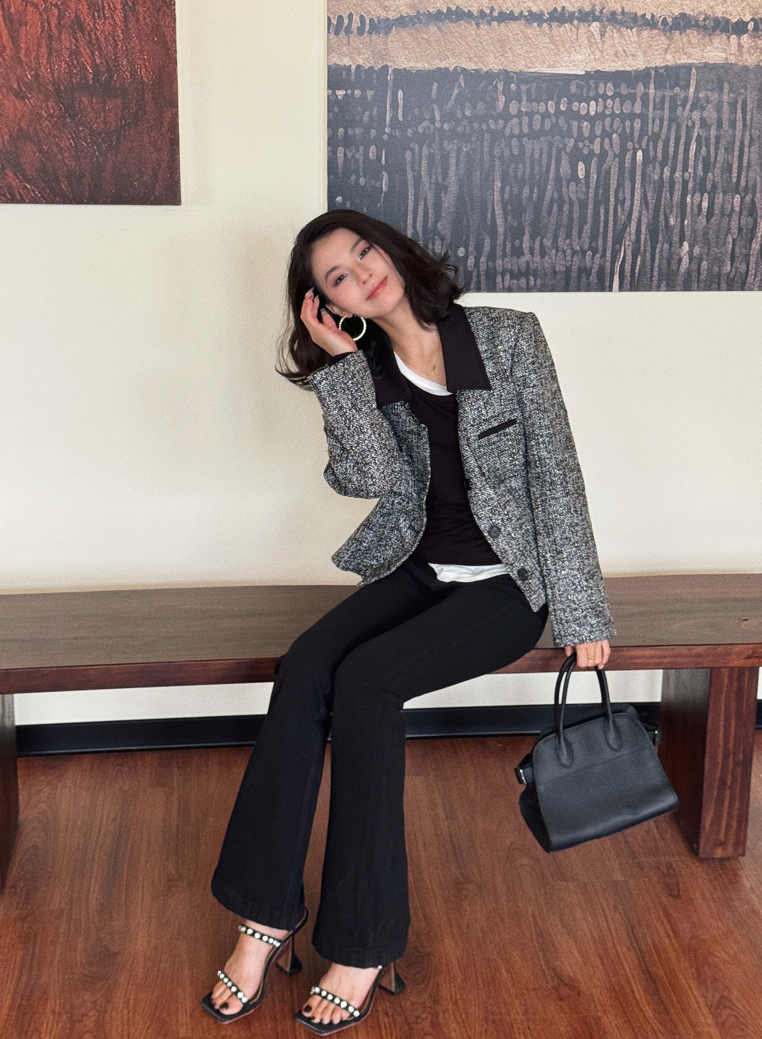 版型是合身短款,搭配紧身长裤,大长腿既视感!