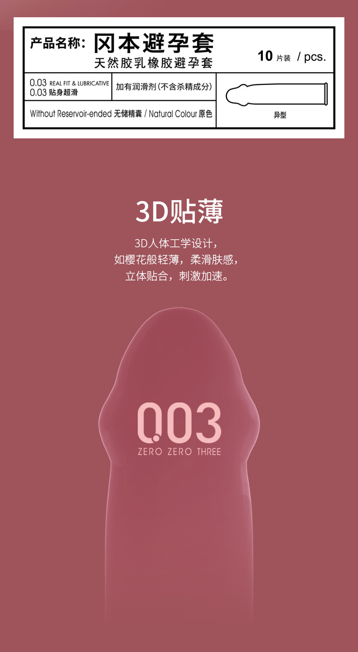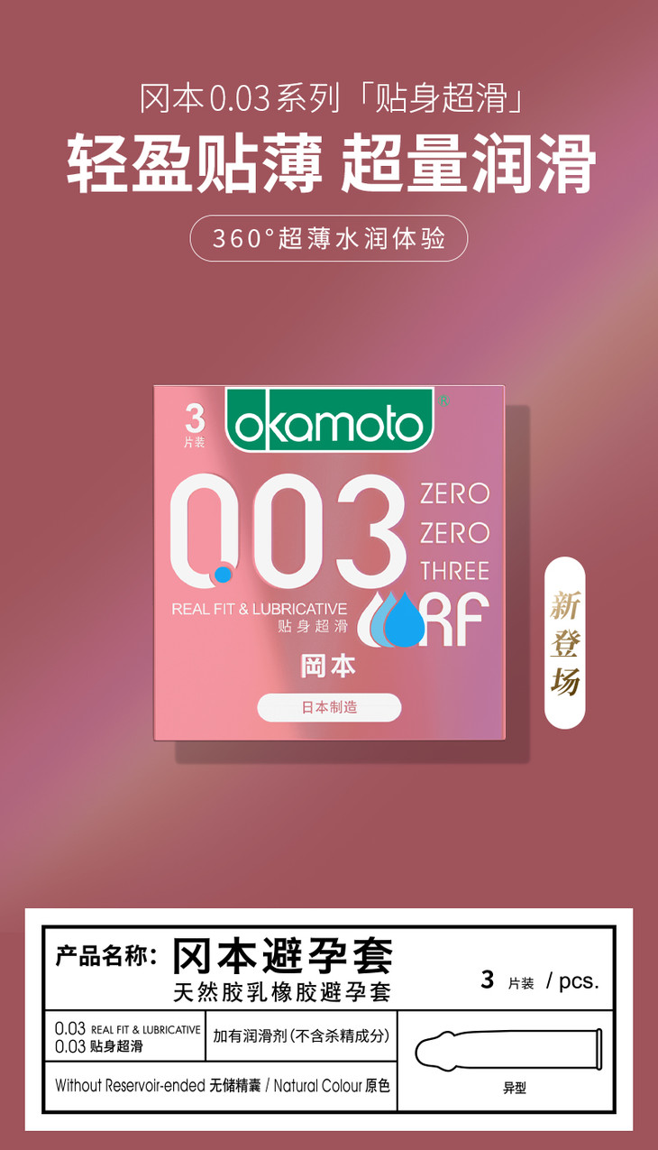 【0.03薄+贴身超滑】003冈本OK避孕套-0.03贴身超滑